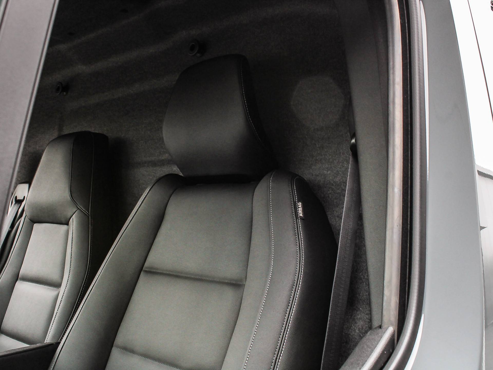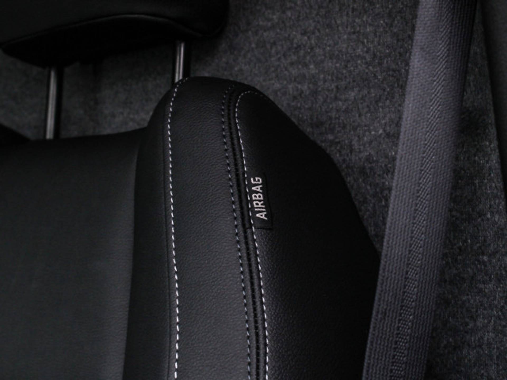 ✓ Stoffen bekleding in gemêleerd grijs met blauwe stiksels en versterkte kunstlederen wangen voor de bestuurdersstoel
