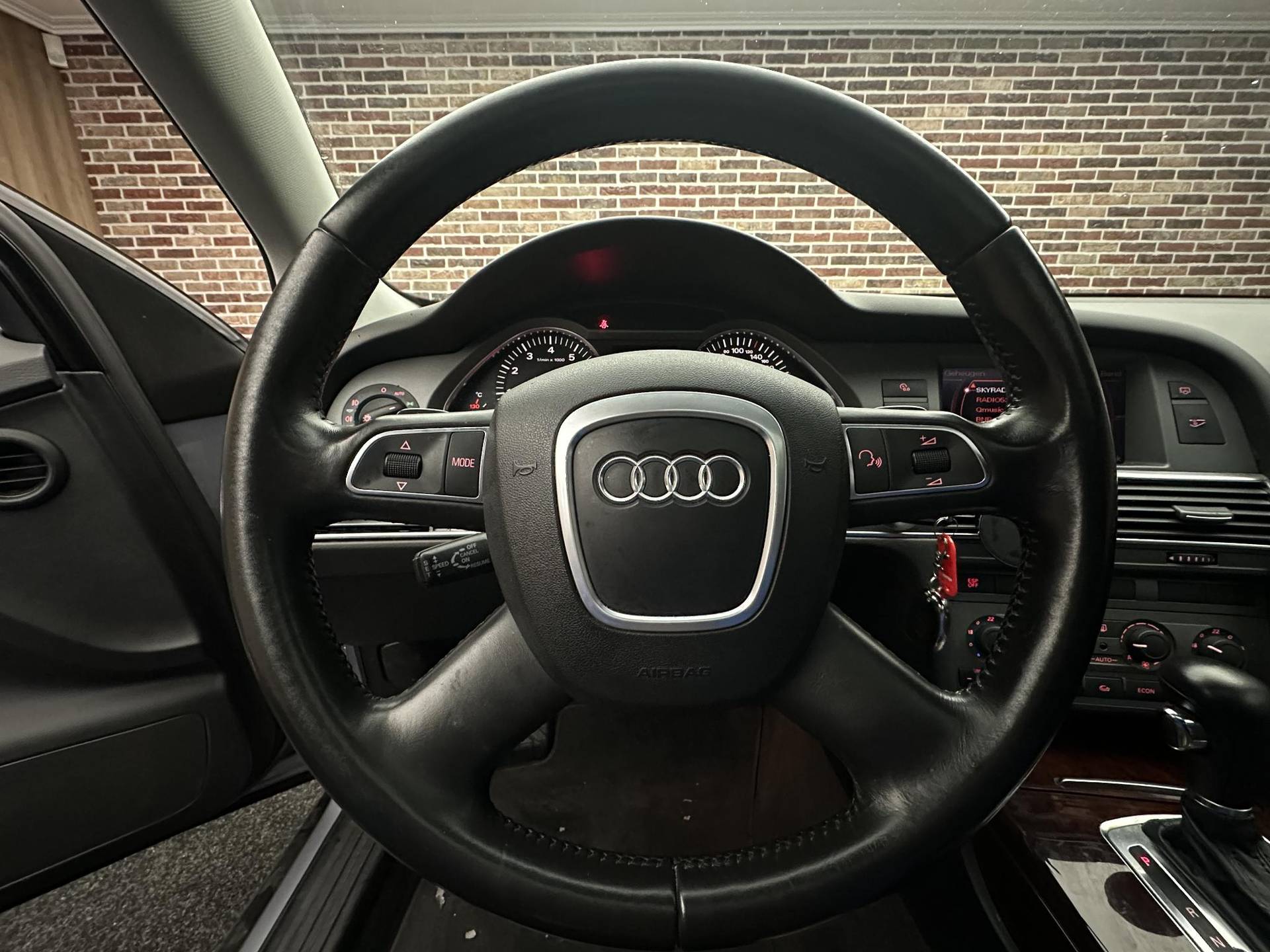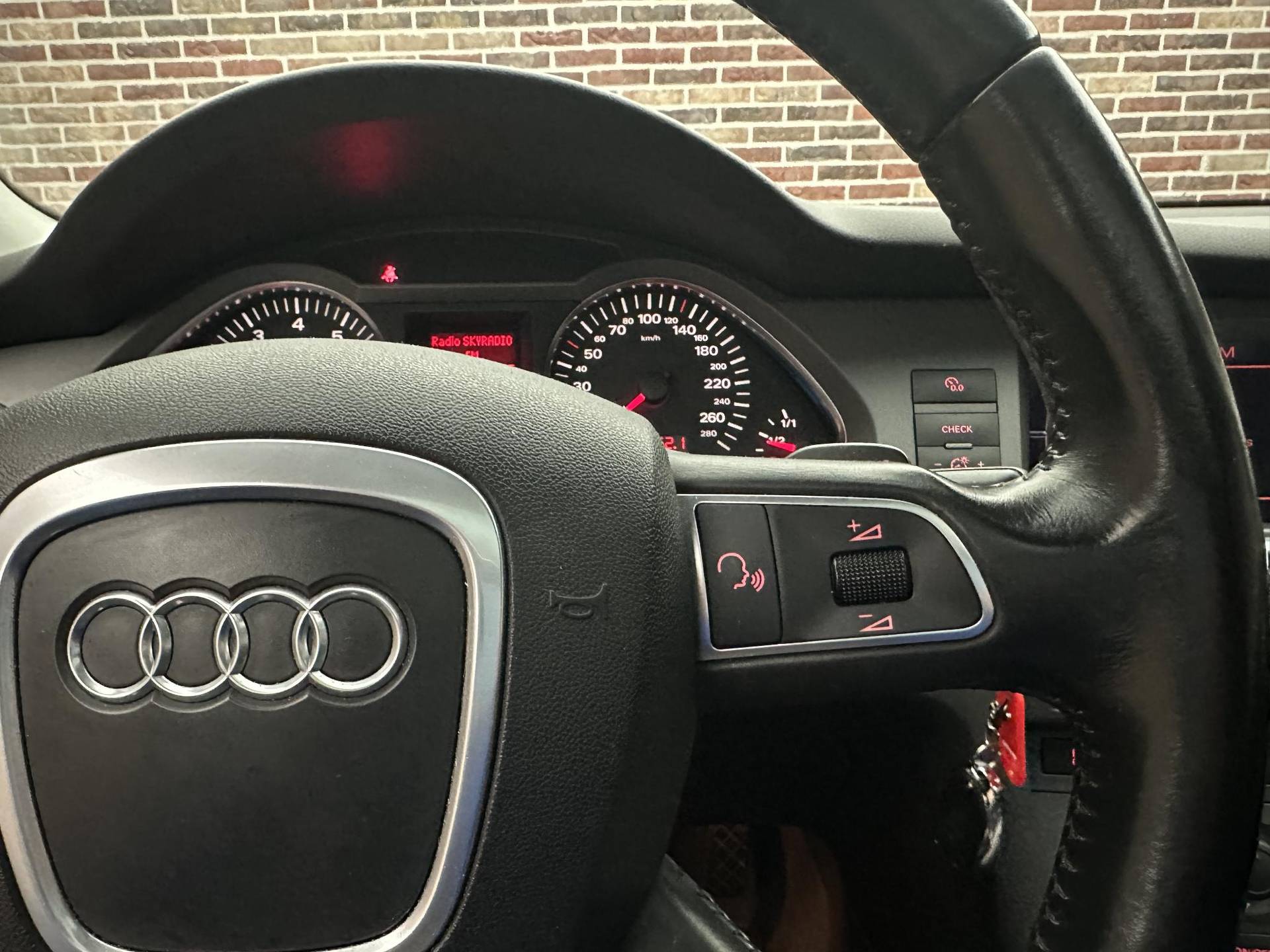 Dankzij automatische airconditioning is het interieur behaaglijk warm of verfrissend koel. Superstrak parkeren wordt een eitje dankzij de parkeersensoren. Om de veiligheid onderweg te verhogen, heeft deze Audi zowel een automatisch inschakelbare verlichting als een regensensor aan boord, zodat hij zelf de verlichting en de ruitenwissers kan inschakelen. Er is cruise control aan boord, voor veilige en zuinige kilometers. Natuurlijk behoren navigatiesysteem, lederen stuur, centrale deurvergrendeling met afstandsbediening, bestuurders-informatie-systeem en lederen versnellingspook ook tot de uitrusting van deze complete auto.