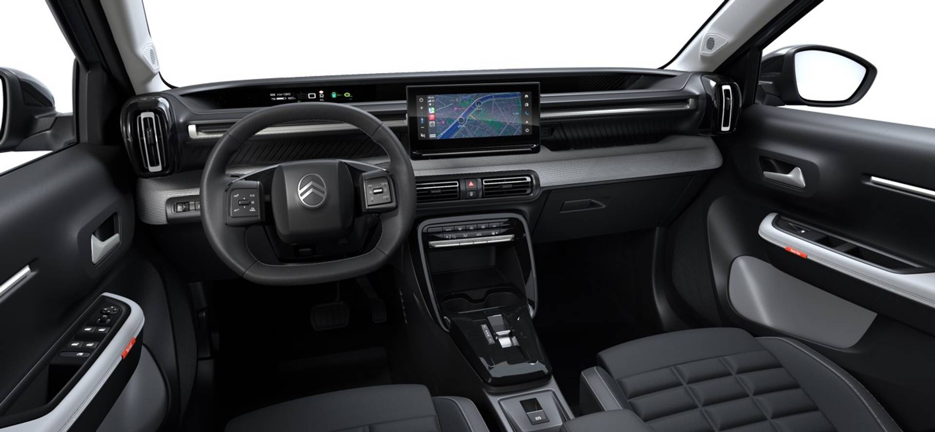Hij biedt volop ruimte, deze Citroën ë-C3, en dankzij zijn elektrische aandrijving is er ook plenty vermogen voor een dynamische rijstijl. Met de elektromotor rijdt u stil en snel de toekomst in. Maar ook schoon en zuinig. We hebben het hier over een nieuwe auto, hij is nu direct leverbaar. Tot de uitrusting van deze Citroën behoren ook geluidsisolerende voorruit, in delen neerklapbare achterbank en dagrijverlichting. Nooit meer problemen bij achteruitrijden of inparkeren. De achteruitrijcamera houdt alles in de gaten! Het comfort wordt verhoogd door de aanwezige automatische airconditioning. Smartphone in het rood? Geen punt, de draadloze telefoonlader zorgt voor een volle accu. Is het maar een buitje of een constante regenstroom? De regensensor reageert altijd accuraat! Ook op de korte stukken is de cruise control een uitkomst. Kijk maar bij de benzinepomp! Ook is de Citroën uitgerust met: automatisch dimmende binnenspiegel, isofix-aansluiting, centrale deurvergrendeling met afstandsbediening en in hoogte en diepte verstelbaar stuur. In de Citroën ë-C3 heeft uw veiligheid en die van uw omgeving prioriteit. Wat deze auto ook kan, is lezen. Hij 'leest' voor u de verkeersborden tijdens de rit en attendeert u erop door ze op het dashboard te projecteren. Veiligheid voorop: sensoren van de lane assist scannen de rijstrookstrepen en waarschuwen als u onbedoeld over de lijn gaat. De Brake Assist haalt het maximum uit de remkracht van deze Citroën ë-C3 als zich een noodsituatie voordoet. Bovenop deze veiligheidsfeatures heeft deze Citroën bovendien driver alert systeem, hill start assist en bandenspanningcontrolesysteem. Wij leveren deze nieuwe auto met volledige fabrieksgarantie. Maak nu snel een afspraak om deze auto te bekijken.
