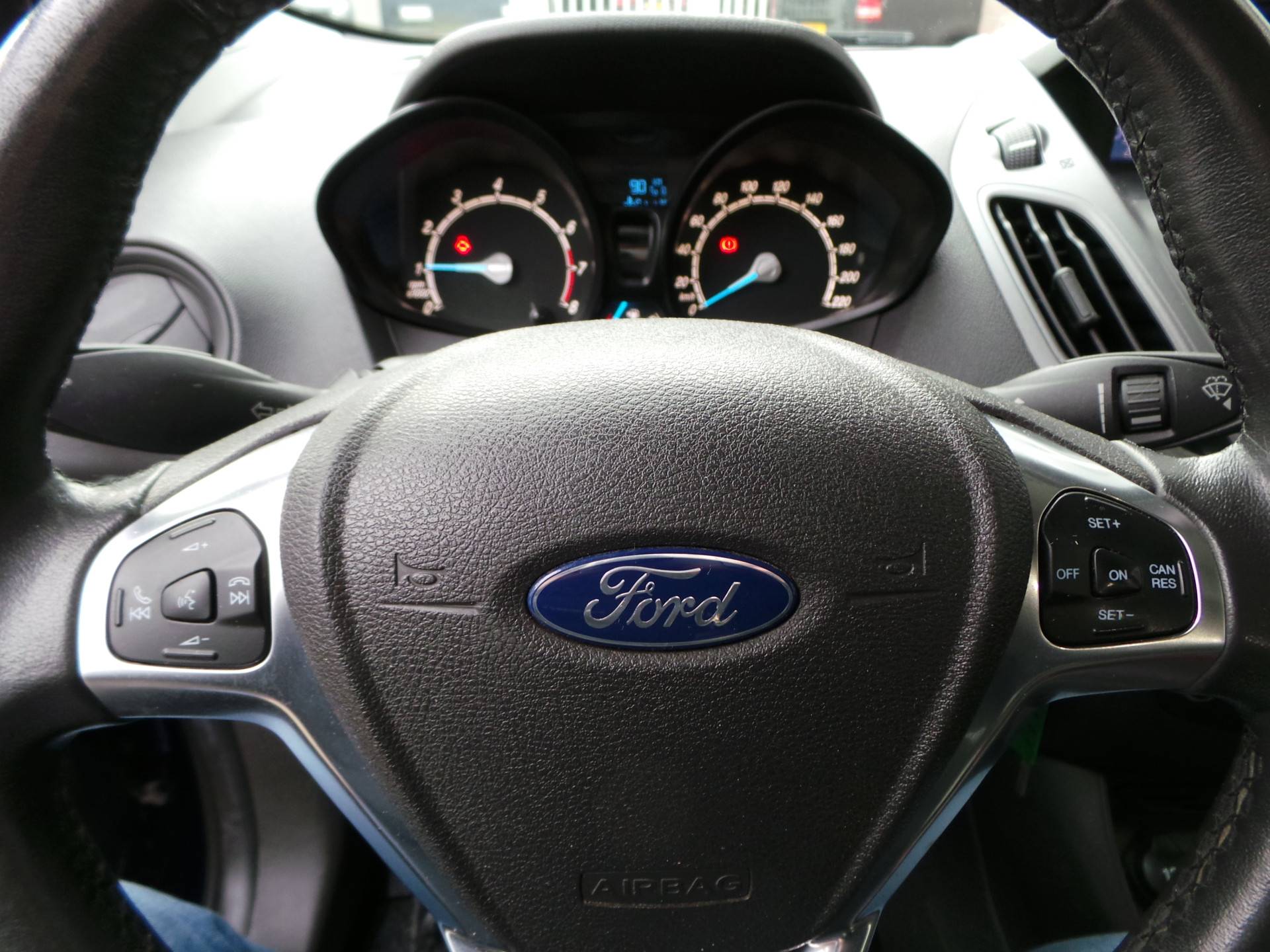 De bediening van het audiosysteem en het full map navigatiesysteem gebeurt met knoppen op het stuur. De cruise control geeft elke flitser het nakijken. In een auto als deze mag u ook airconditioning verwachten. De uitrusting van deze Ford is met lederen stuur, centrale deurvergrendeling met afstandsbediening en boordcomputer behoorlijk compleet.