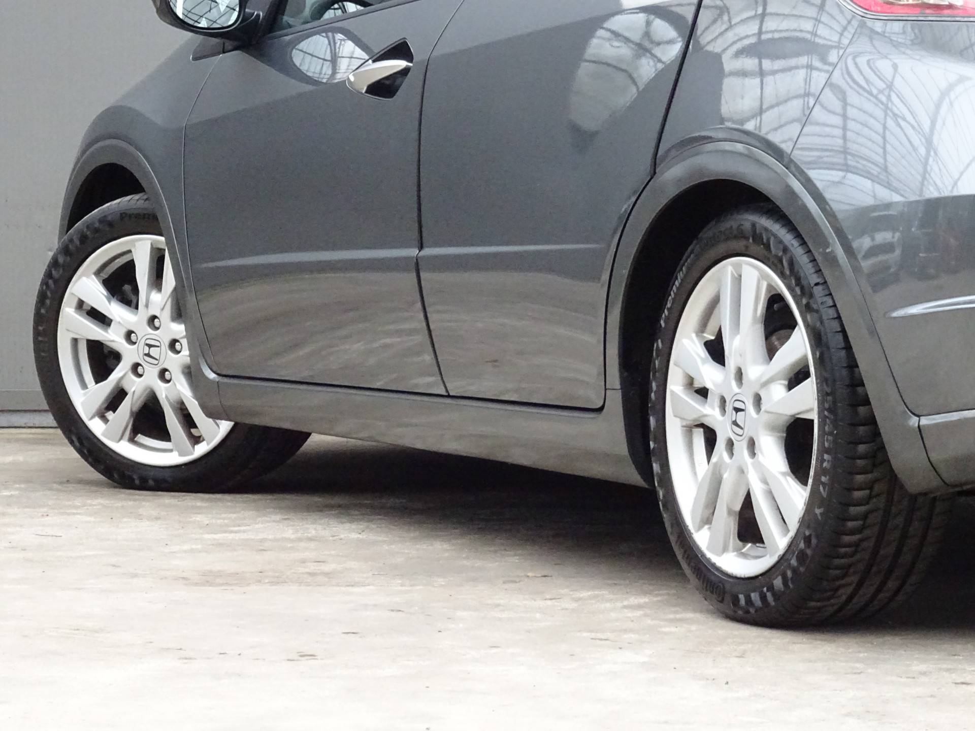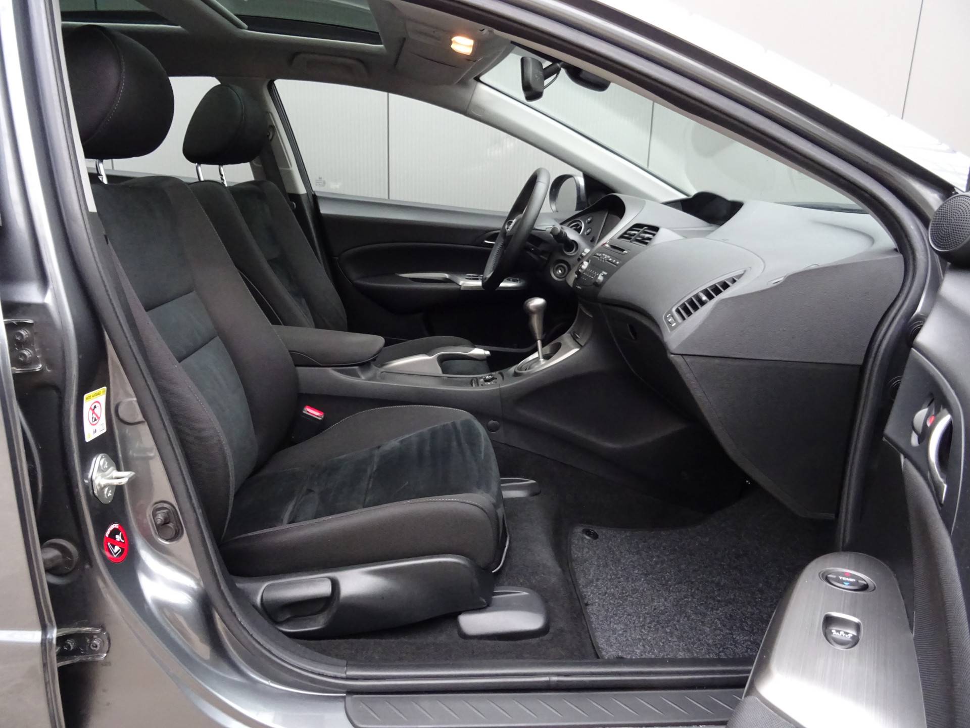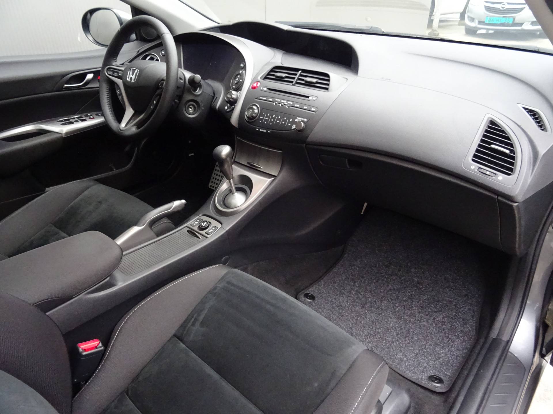 In deze Civic vindt u schakelaars op het stuur om het audiosysteem te bedienen. Of het buiten nu warm is of koud, dankzij automatische airconditioning is het binnen altijd behaaglijk. Parkeersensoren helpen u tijdens het in- en uitparkeren. De automatisch inschakelbare verlichting en regensensor zorgen dat onderweg automatisch de verlichting en de ruitenwissers worden ingeschakeld. Daarmee nemen ze u veel werk uit handen. De voordelen van de aanwezige cruise control hoeven we niet uit te leggen. Een mooie, constante snelheid - niet te snel, niet te langzaam. Precies goed. En dan is deze auto ook nog eens voorzien van automatisch dimmende binnenspiegel, lederen stuur, centrale deurvergrendeling met afstandsbediening en boordcomputer.
