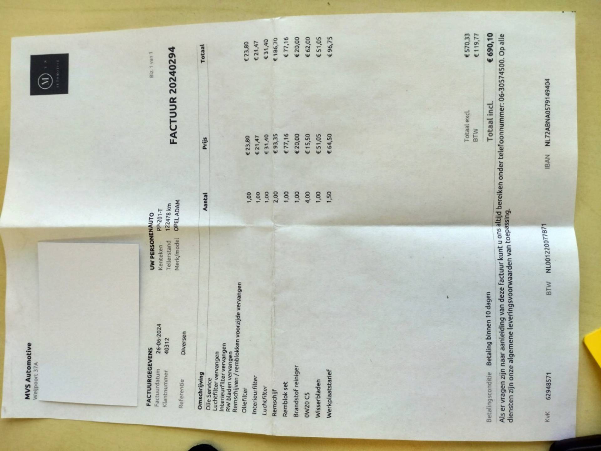 ✓ APK bij aflevering: J