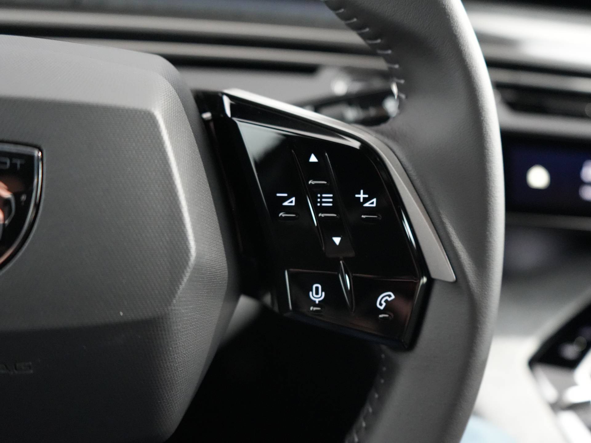 ✓ Compact met leder bekleed stuurwiel met in glanzend zwart uitgevoerde geïntegreerde bedieningsknoppen, decoraties in Stene Grey