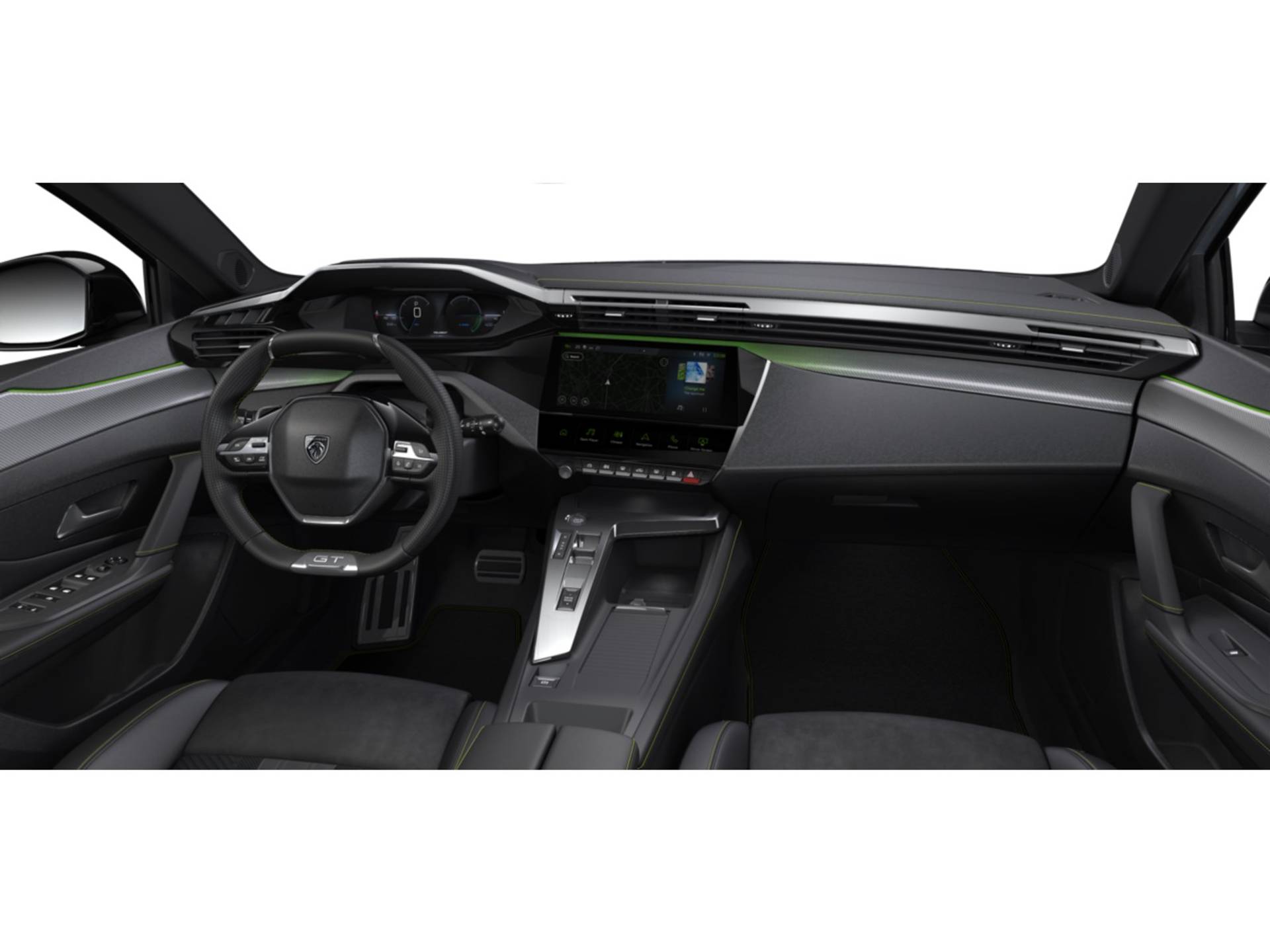 ✓ Dashboard, middenconsole en stuurwiel afgewerkt met groen stiksel