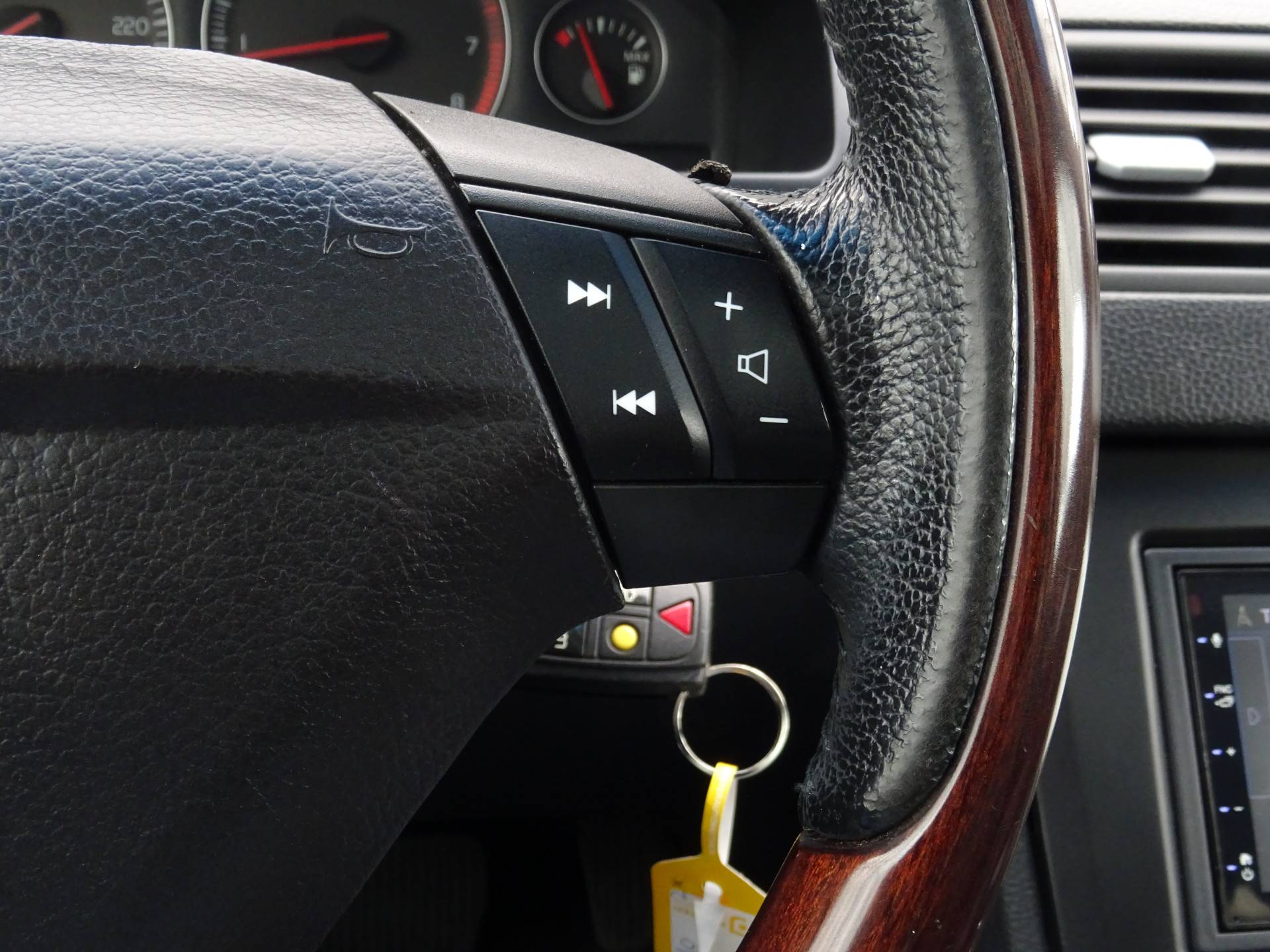 Het audio-installatiesysteem is handig te bedienen vanaf het stuurwiel, wat bijdraagt aan een veilige autorit. Of het buiten nu warm is of koud, dankzij electronic climate control is het binnen altijd behaaglijk. U kunt bij het inparkeren natuurlijk niet aan alle kanten ogen hebben. Daarom is deze Volvo XC90 voorzien van parkeersensoren! Achter het stuur van deze Volvo bent u niet alleen. De auto kijkt als het ware met u mee tijdens de rit. De regensensor schakelt de ruitenwissers in als het nodig is en de automatisch inschakelbare verlichting doet de lichten voor u aan. Ook op de korte stukken is de cruise control een uitkomst. Kijk maar bij de benzinepomp! Deze Volvo is voorzien van automatisch dimmende binnenspiegel, lederen stuur, centrale deurvergrendeling met afstandsbediening, bagage afdekhoes, boordcomputer en lederen versnellingspook.