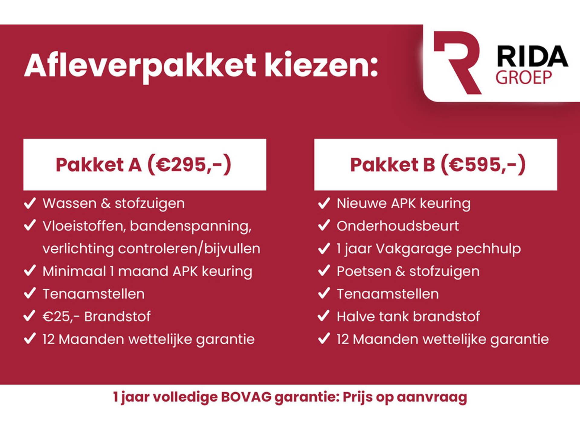 ✓ Opmerkingen: Nieuwe APK keuring Onderhoudsbeurt 1 jaar Vakgarage pechhulp Poetsen & stofzuigen Tenaamstellen Halve tank brandstof 12 maanden wettelijke garantie