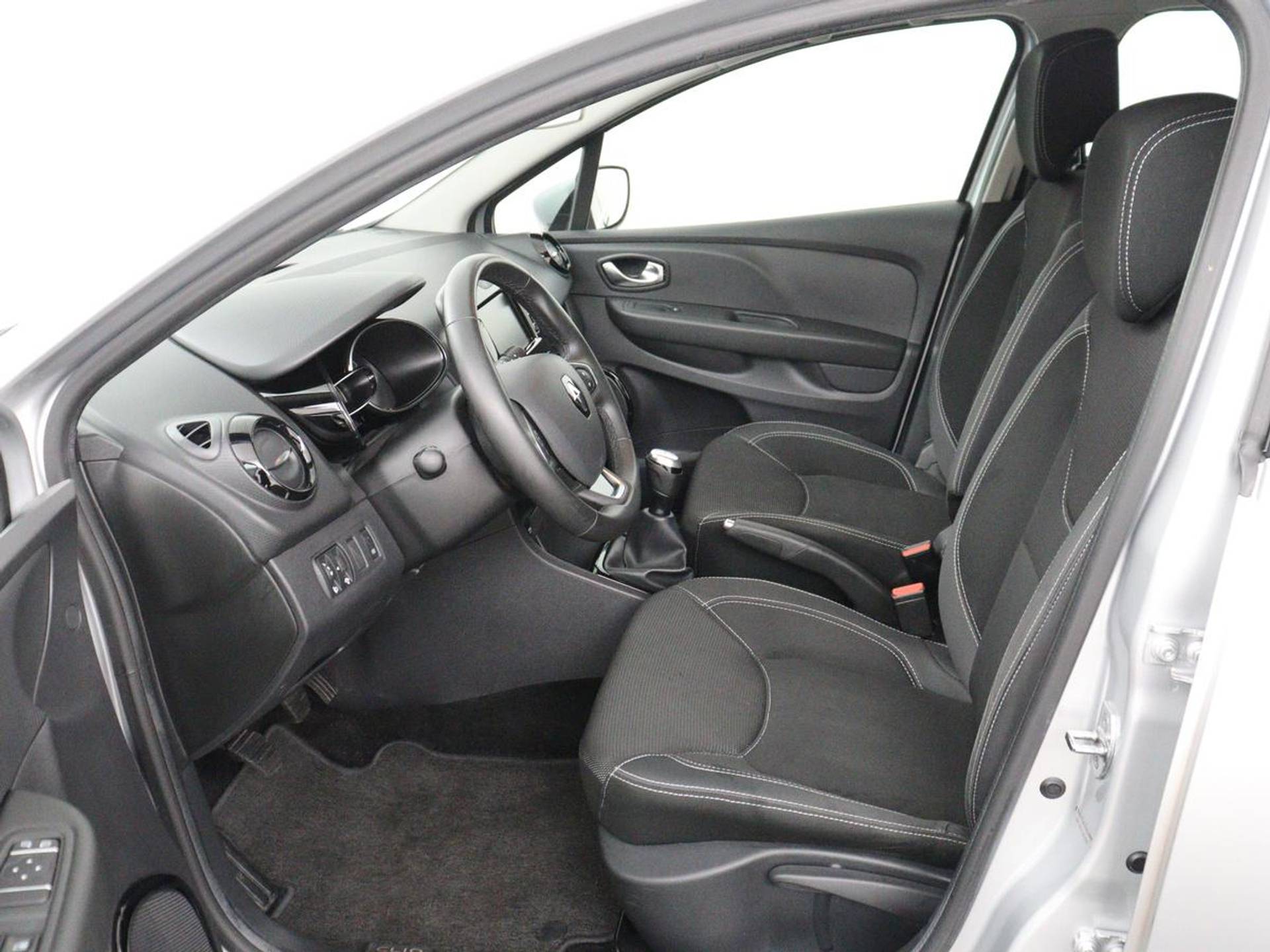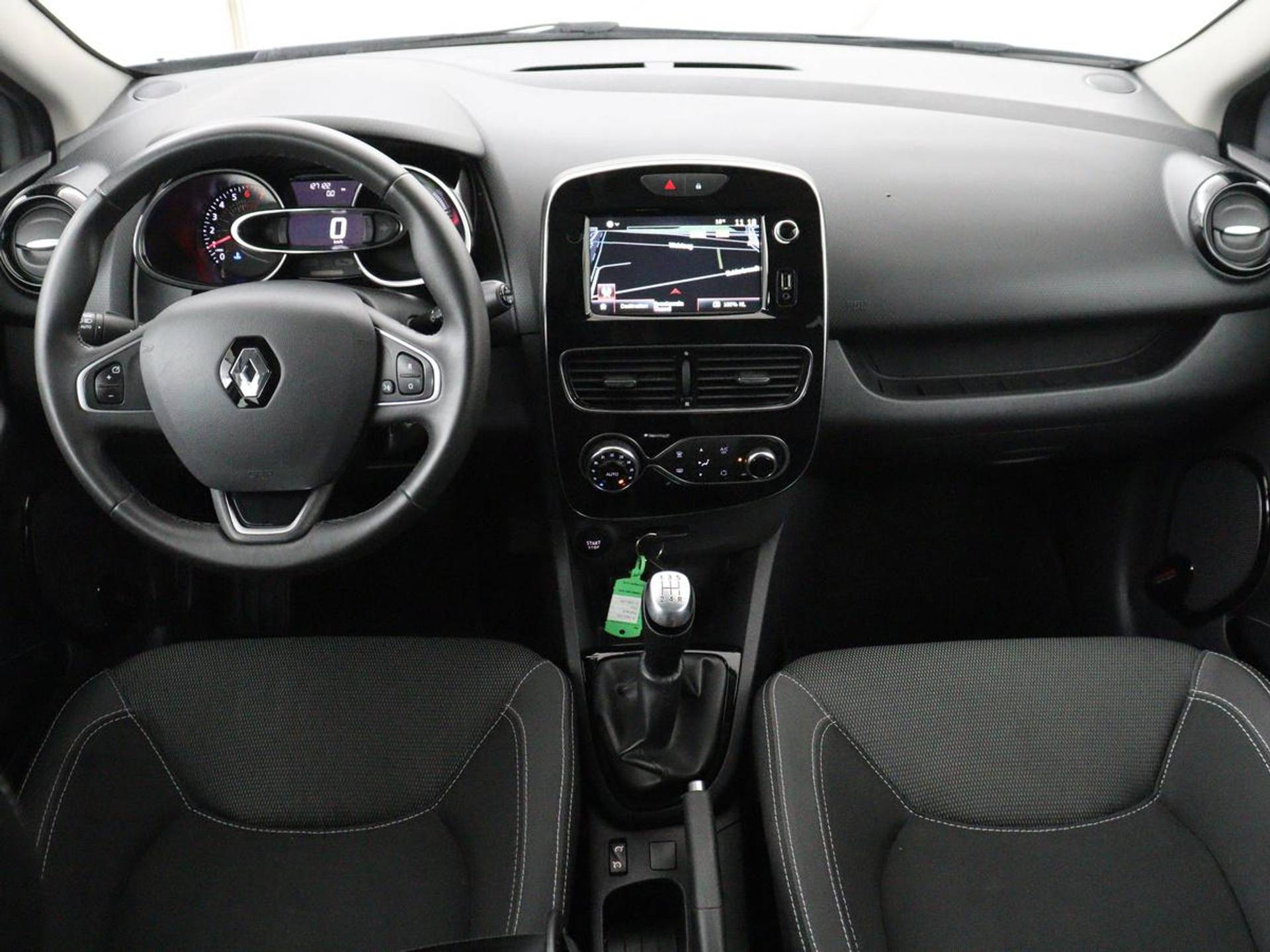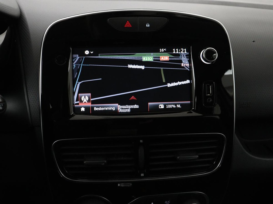 De bediening van het audiosysteem en het full map navigatiesysteem gebeurt met knoppen op het stuur. De audio is overigens voorzien van DAB-radio voor een altijd heldere ontvangst. De achteropkomend verkeer waarschuwing is een mooie veiligheidsoptie, die middels sensoren in de gaten houdt wat er onderweg achter u gebeurt. Tot de standaard uitrusting van deze auto hoort ook automatische airconditioning. Boem is ho? Niet bij deze Renault Clio. De piepjes van de parkeersensoren waarschuwen u op tijd voor obstakels. Om de veiligheid onderweg te verhogen, heeft deze Renault zowel een automatisch inschakelbare verlichting als een regensensor aan boord, zodat hij zelf de verlichting en de ruitenwissers kan inschakelen. De uitrusting van deze Renault is met cruise control, keyless entry, buitentemperatuurmeter, lederen stuur, centrale deurvergrendeling met afstandsbediening en boordcomputer behoorlijk compleet.