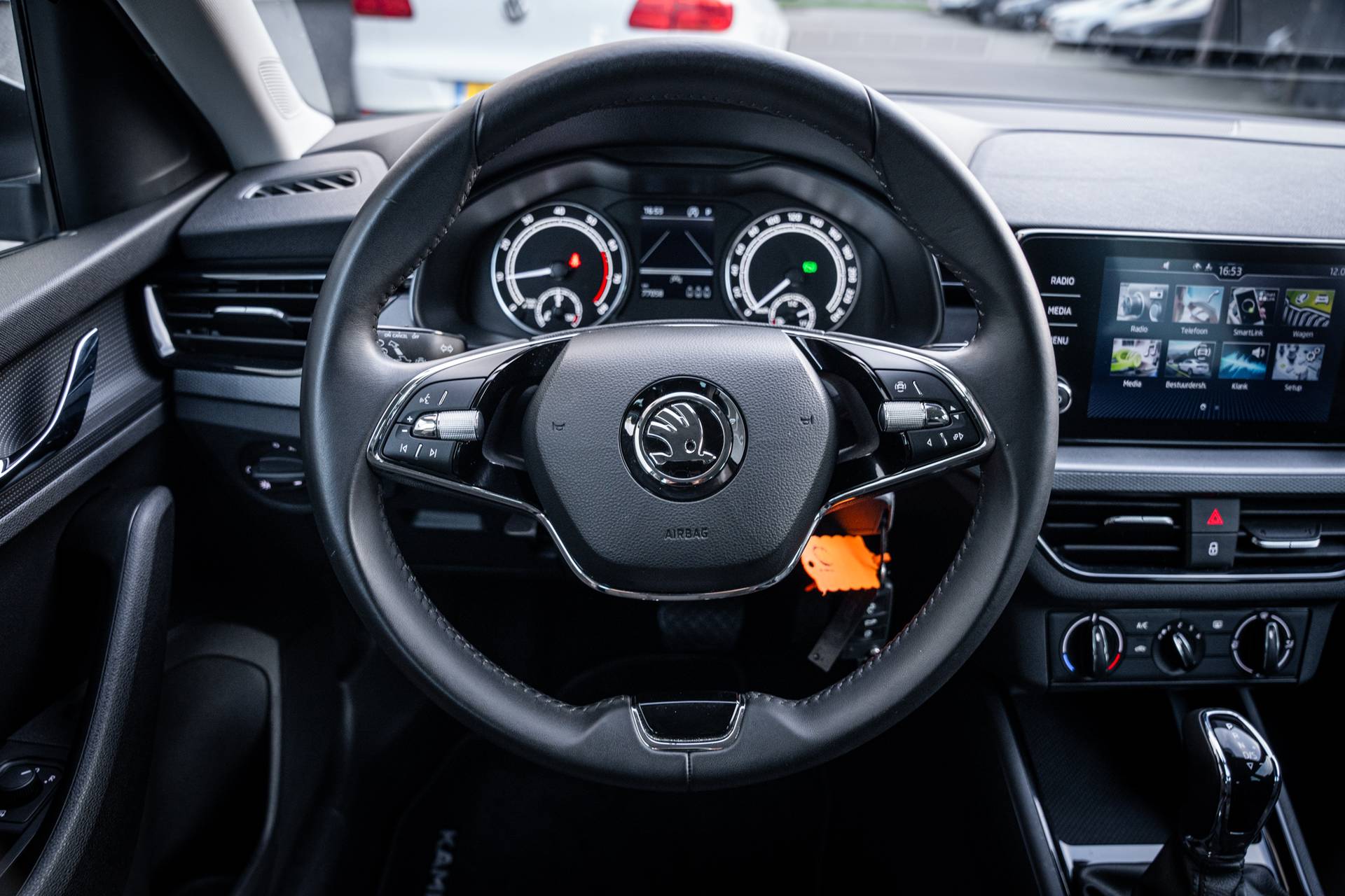 Ontspannen en zorgeloos autorijden, dat doet u met deze Skoda Kamiq. In deze auto vindt u een benzinemotor en een automatische transmissie. Bij de uitrusting van deze Skoda horen onder meer 16 inch lichtmetalen velgen, LED koplampen, in hoogte verstelbare passagiersstoel, extra getint glas, in delen neerklapbare achterbank en LED-achterlichten. De ingebouwde Connected Services vertellen u via de app alles over de status van de auto. Locatie, onderhoudsstatus, brandstofpeil en nog veel meer! Een andere zender kiezen. Het geluid harder of zachter zetten. Met de audiobediening op het stuurwiel bedient u de radio veilig met uw handen aan het stuur. Met de DAB-ontvanger heeft u keuze uit talloze digitale radiozenders met de allerhoogste geluidskwaliteit. De cruise control betekent gemak, comfort en zuinig rijden. Natuurlijk heeft deze auto ook airconditioning. Ook is de Skoda uitgerust met: lederen stuur, centrale deurvergrendeling met afstandsbediening, boordcomputer en lederen versnellingspook. Tijdens de rit wordt u als bestuurder ondersteund door verschillende systemen die de weg en uw omgeving in de gaten houden. Keep your lane? Het Lane-keeping systeem zorgt er automatisch voor. De forward collision warning reduceert het gevaar van een botsing met een voorligger significant. Bovenop deze veiligheidsfeatures heeft deze Skoda bovendien hill hold functie, autonoom remsysteem en bandenspanningcontrolesysteem. Om deze auto zelf te ervaren, hoeft u alleen maar contact met ons op te nemen. Mailt of belt u ons direct?