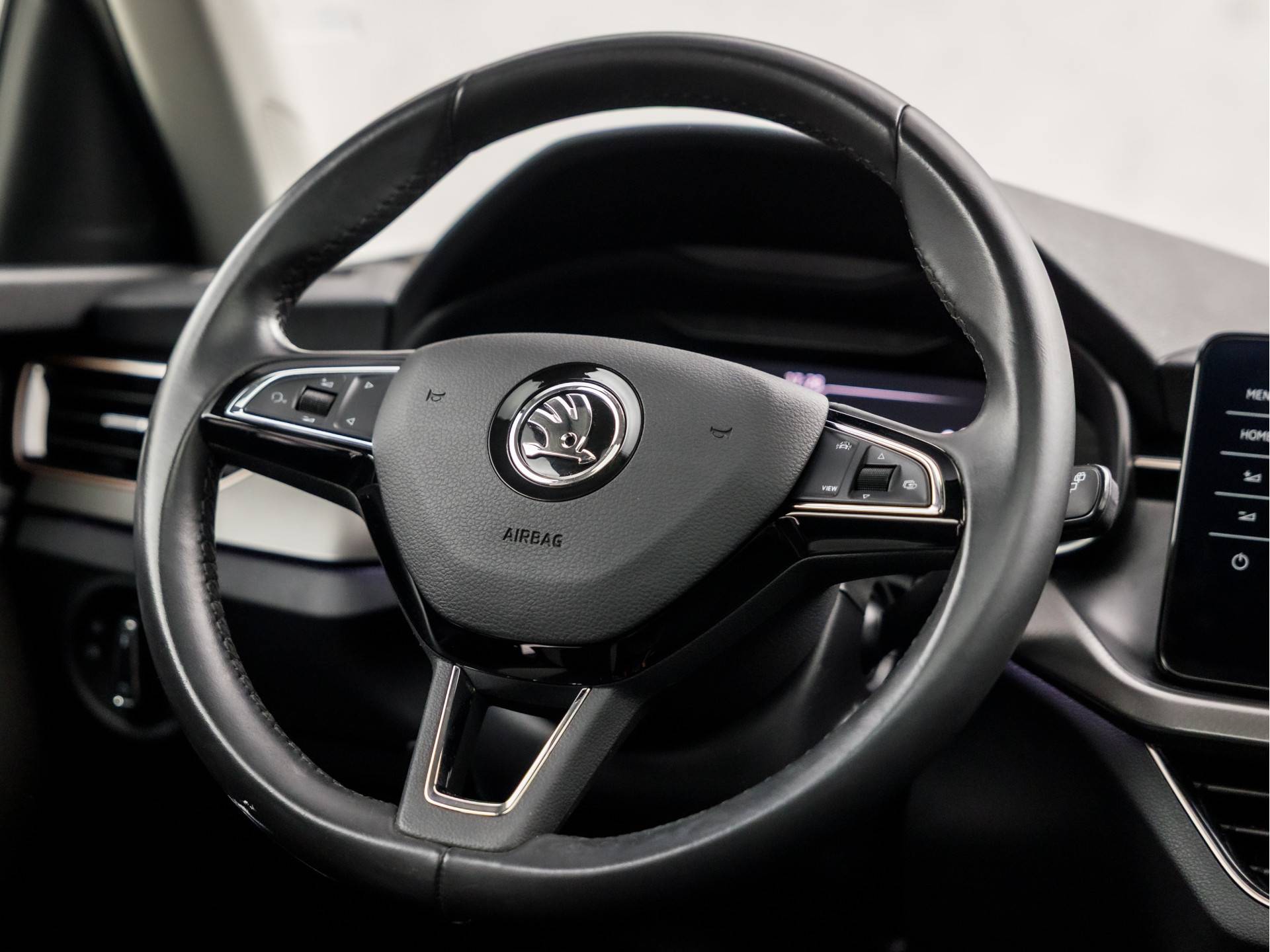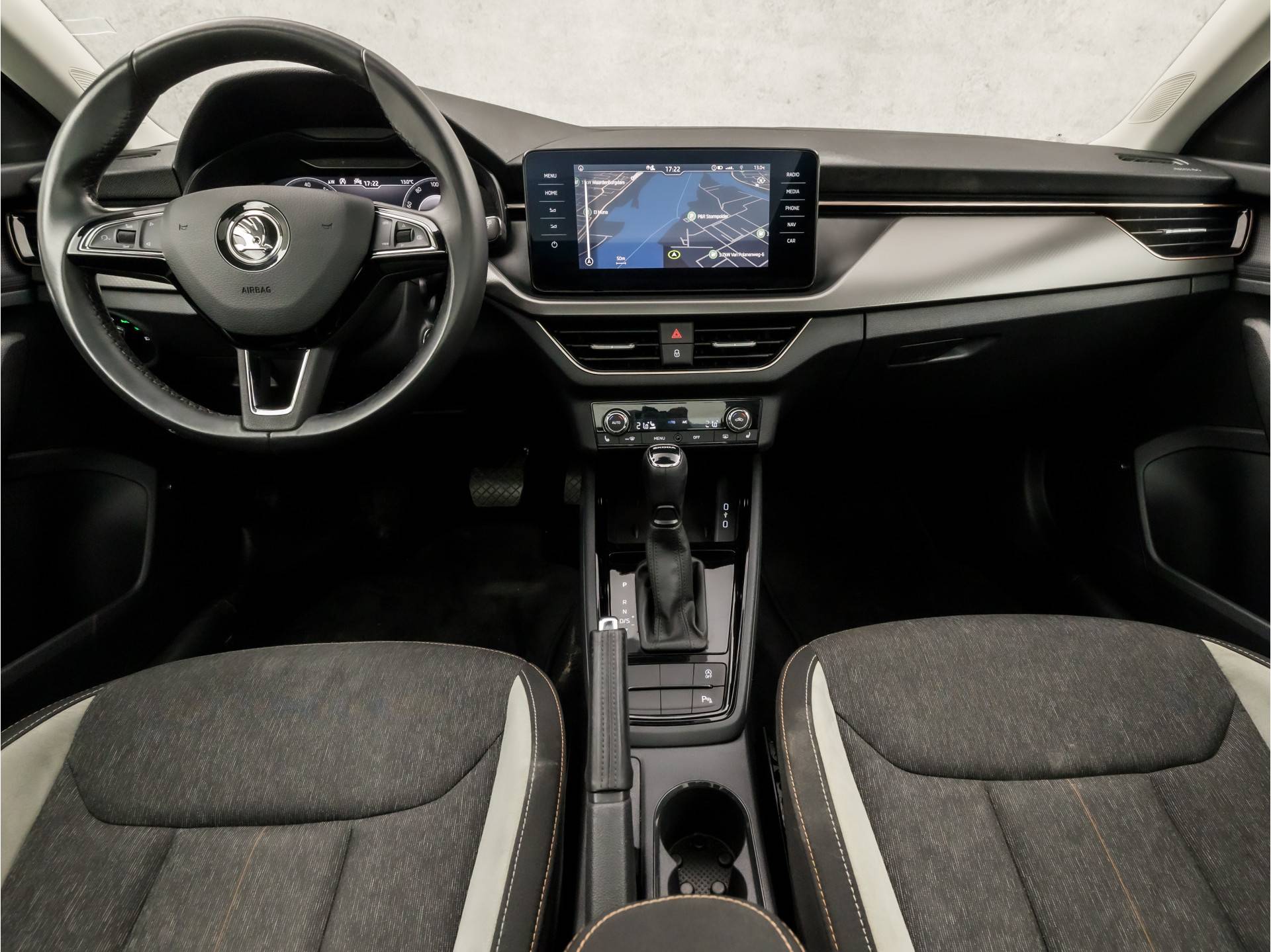 Het digitale dashboard in deze auto maakt personalisatie van uw cockpitinterface mogelijk. De achteruitrijcamera laat duidelijk zien hoeveel ruimte u nog heeft bij het inparkeren. Navigatie, onderhoudsstatus, vergrendeling, audio... de mogelijkheden van remote services zijn haast oneindig. Ook deze auto laat zich bedienen en analyseren via uw smartphone! Gemakkelijk en veilig is de bediening het audio-installatiesysteem en het navigatiesysteem met harde schijf met knoppen op het stuur. De audio-kwaliteit is geweldig, dankzij de DAB-ontvangst. Geef uw smartphone onderweg weer energie; zonder snoer, met de draadloze oplaadmogelijkheid voor telefoons. Uiteraard voorzien van Qi-technologie. U bent in deze ŠKODA ook voorzien van automatische airconditioning, licht- en regensensor, cruise control, keyless entry, automatisch dimmende binnenspiegel en lederen stuur.