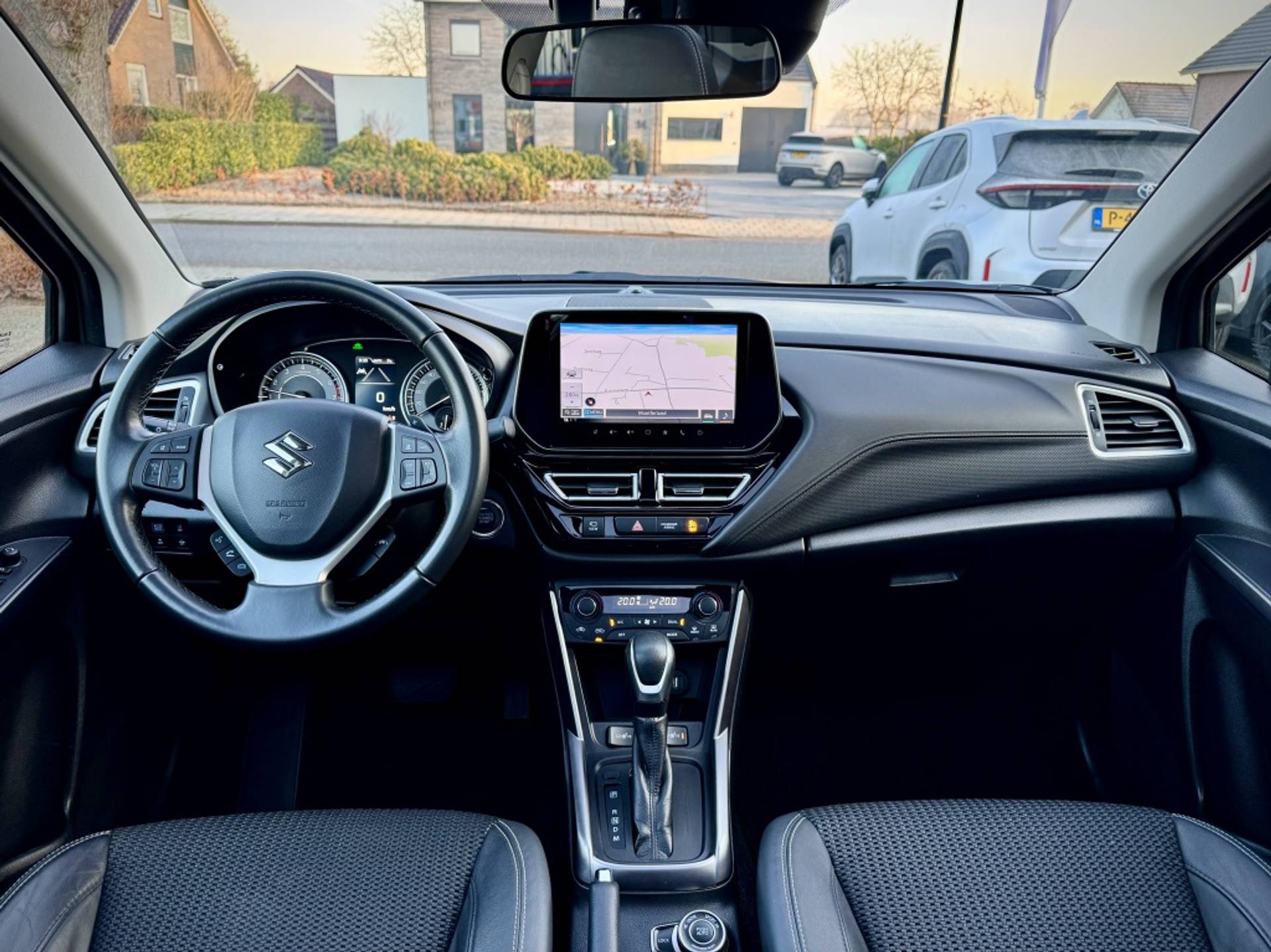 De 360 graden camera wordt mogelijk gemaakt door vier camera's die tezamen werken om zo een uitgebreid zicht te bieden, wat van grote waarde is bij het navigeren door smalle straatjes en parkeerplekken. Adaptive cruise control houdt de ingestelde snelheid vast en houdt automatisch afstand tot jouw voorligger. Vanaf elke plek contact maken met deze auto: dat kan met behulp van remote services, die je simpel activeert met je smartphone. Waarheen gaat de reis? Het navigatiesysteem brengt je trefzeker ter plekke! Ook over je schouder zie je onderweg niet alles wat er aan de achterzijde gebeurt. Daarom heeft deze Suzuki S-Cross een achteropkomend verkeer waarschuwing. Ook electronic climate control, schakelpaddles aan het stuur, DAB ontvangst, regensensor, keyless entry en bagage afdekhoes horen tot de voorzieningen op deze auto.