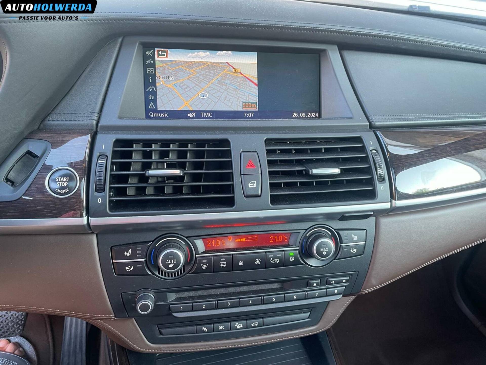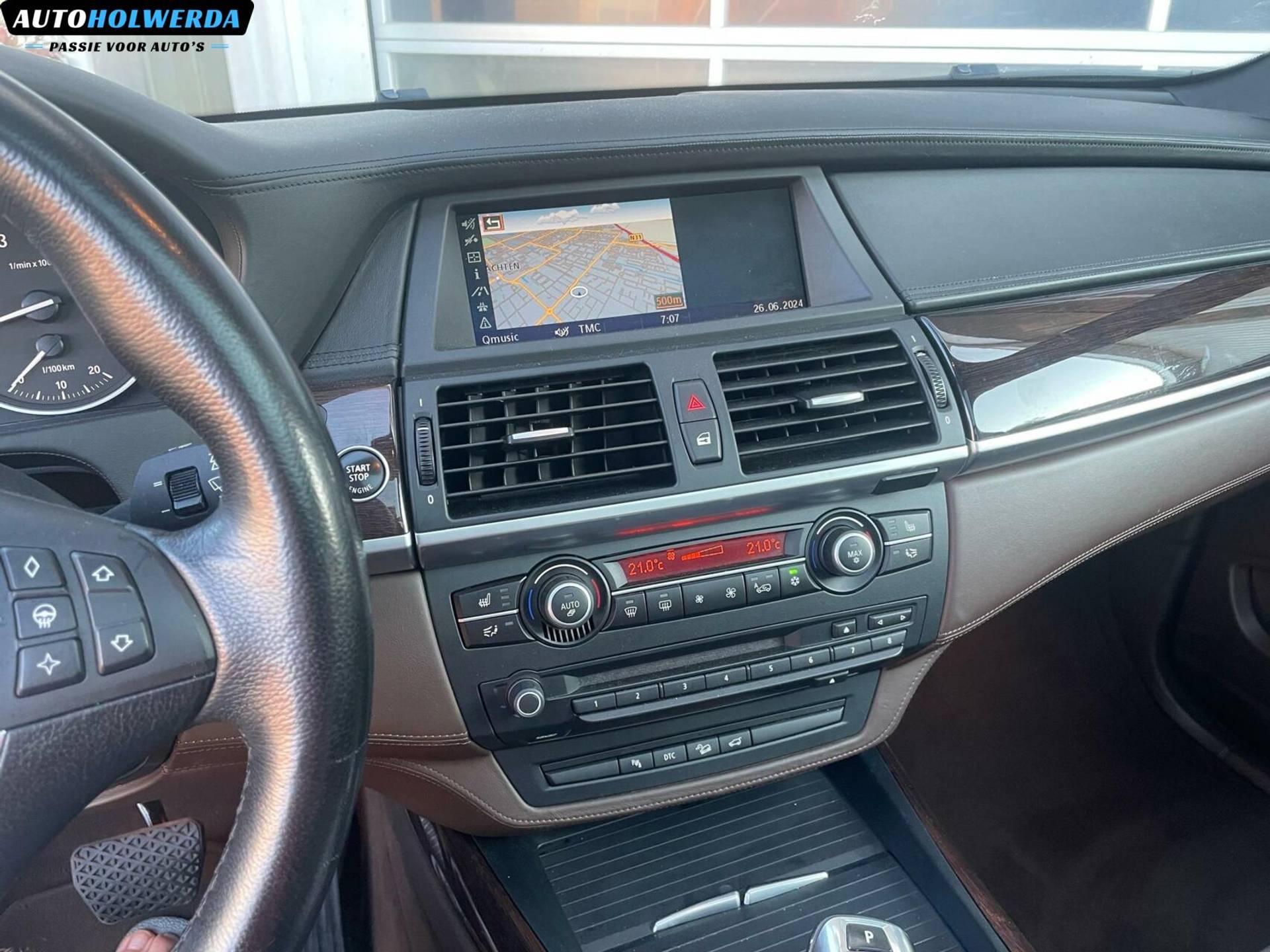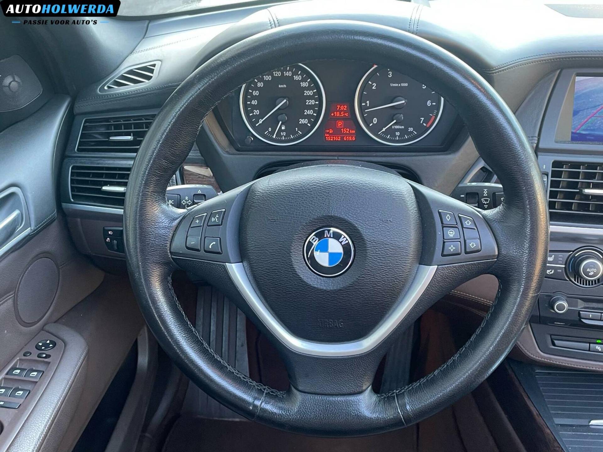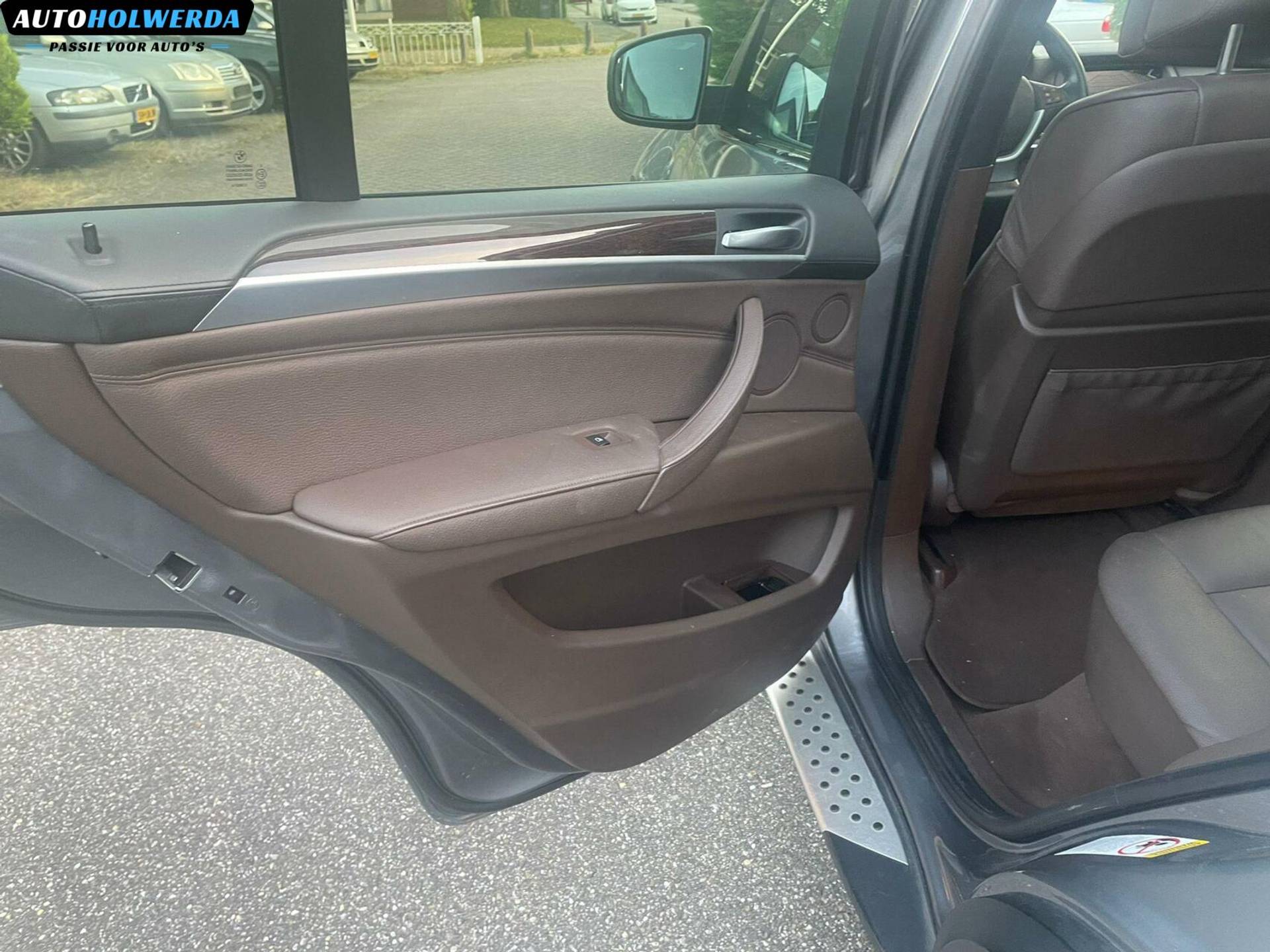 Van buiten is dit exemplaar voorzien van de 20 inch lichtmetalen velgen en Sportpakket. Voor de kleur is er gekozen voor de fraaie Space Grau kleur, deze laat de prachtige lijnen van de carrosserie mooi zien. Van binnen is er gekozen voor een mooi donker bruin lederen interieur en uitgebreid leerpakket, bovenkant van deurpanelen in leer en dashboard is met leder bekleed. Wat je niet vaak ziet op de BMW X5.