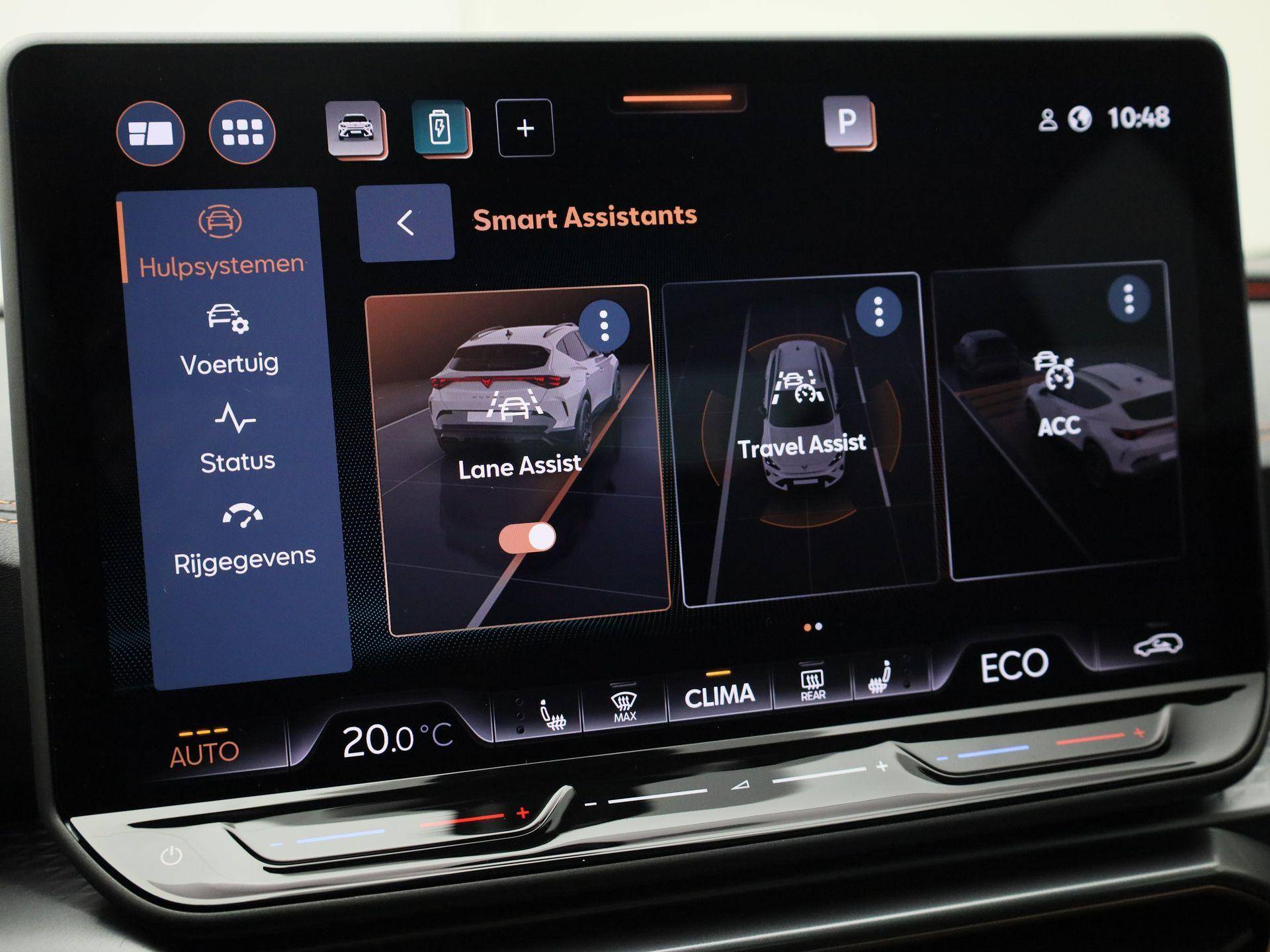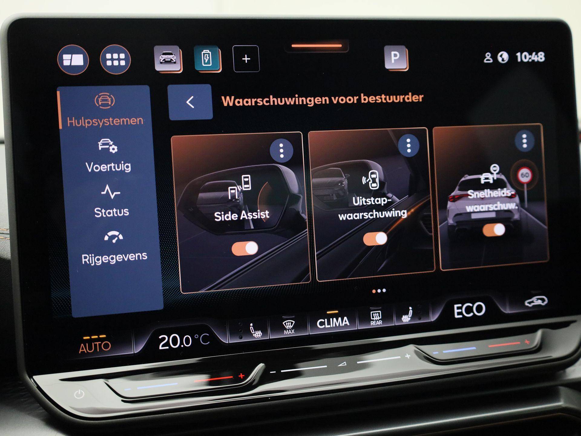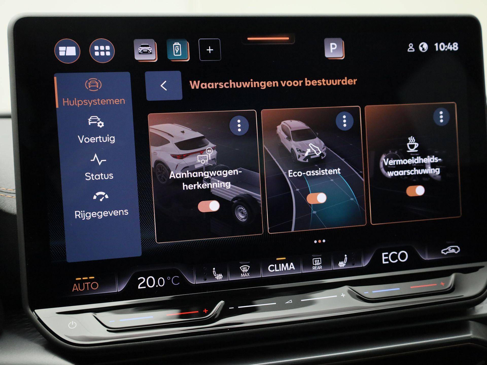 Pragmatisch en veilig als deze auto is, beschikt hij over diverse veiligheidssystemen. Een belangrijke bijdrage aan de veiligheid onderweg levert de verkeersbord-detectie. Het Lane-keeping systeem garandeert dat u zich niet onverhoeds buiten de lijnen van de rijstrook begeeft. Botsingen met een voorligger gebeuren relatief vaak. De forward collision warning slaat tijdig alarm als dat risico ontstaat, zodat u kunt ingrijpen. In deze CUPRA vinden we verder een dodehoekdetectie, hill hold functie, vermoeidheidsherkenning en bandenspanningcontrolesysteem.