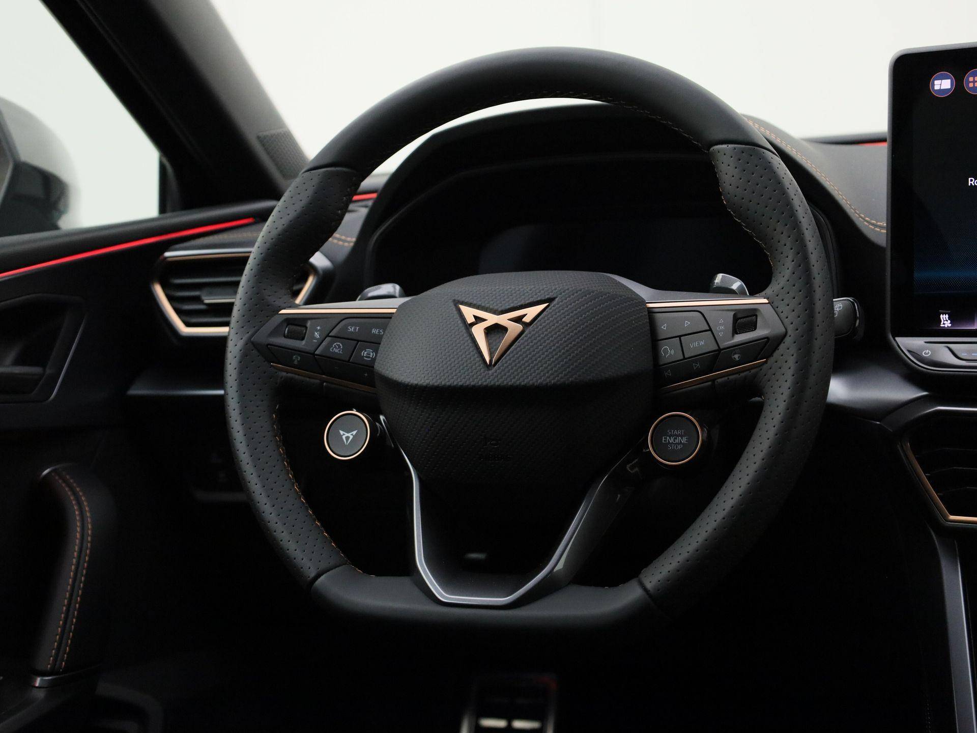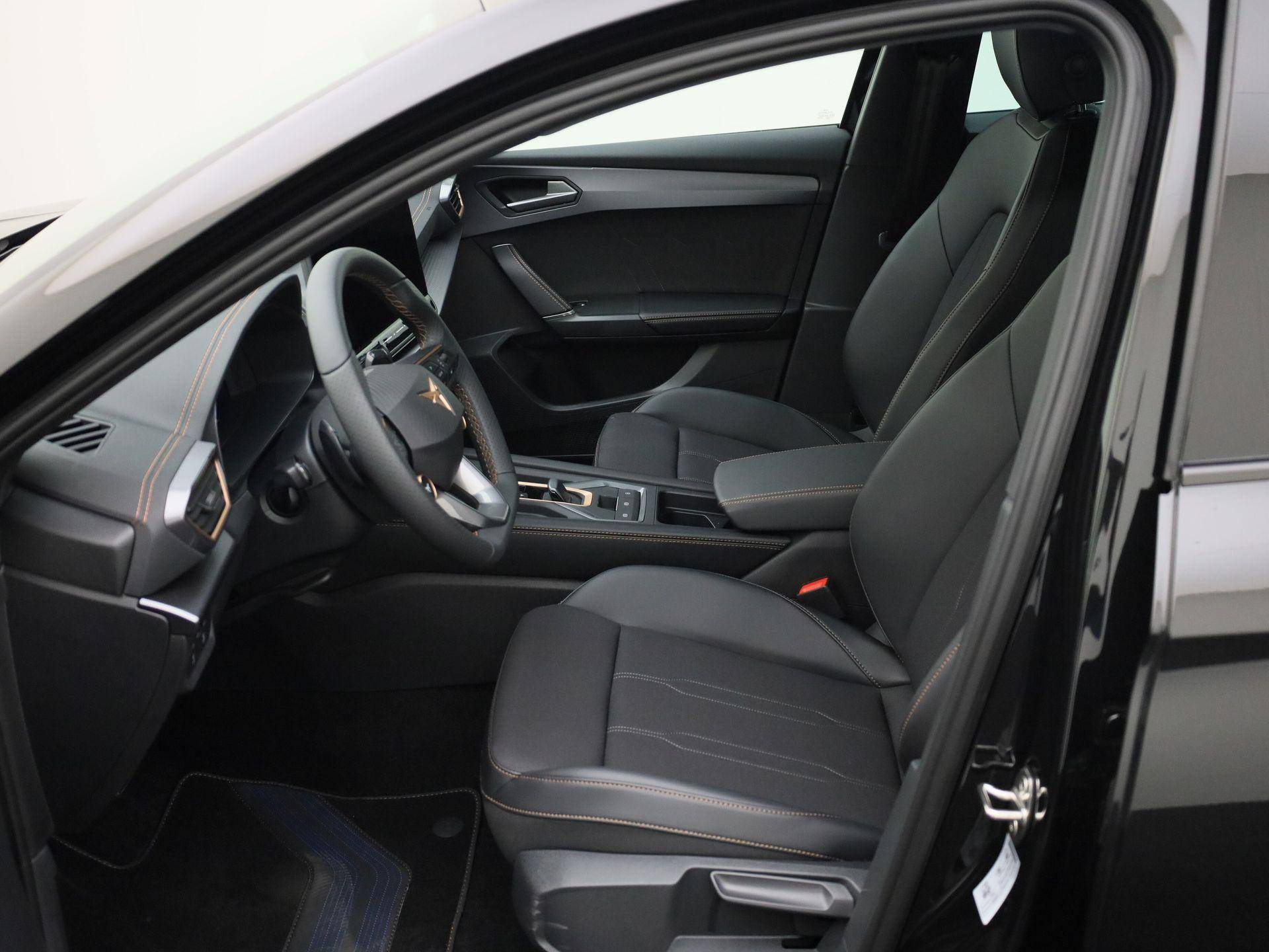 Het digitale dashboard zorgt voor een super functionele display van reisinformatie. Afstand schatten bij het achteruitrijden? Niet nodig. U weet het precies, dankzij de achteruitrijcamera. Adaptive cruise control is veilig en comfortabel. De snelheidsregelaar houdt automatisch afstand tot het voertuig dat voor u rijdt. De meest gebruikte voertuigfuncties laten zich met behulp van uw stem bedienen. Omdat u niet elke dag met een aanhanger of caravan op pad bent, is er de elektrisch inklapbare trekhaak. Ook is de CUPRA uitgerust met: connected drive services, electronic climate control, draadloos opladen, DAB ontvangst, regensensor en keyless entry.
