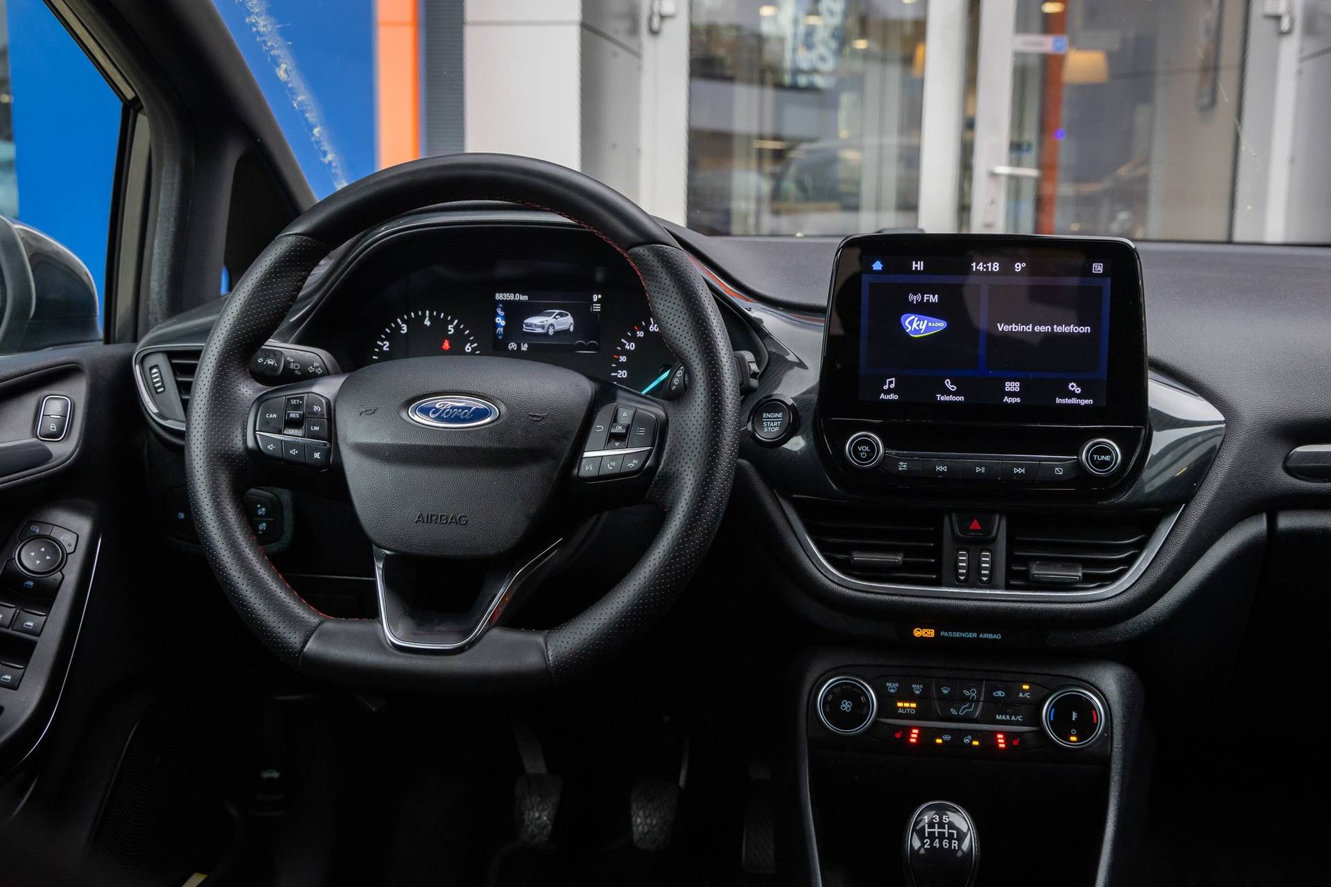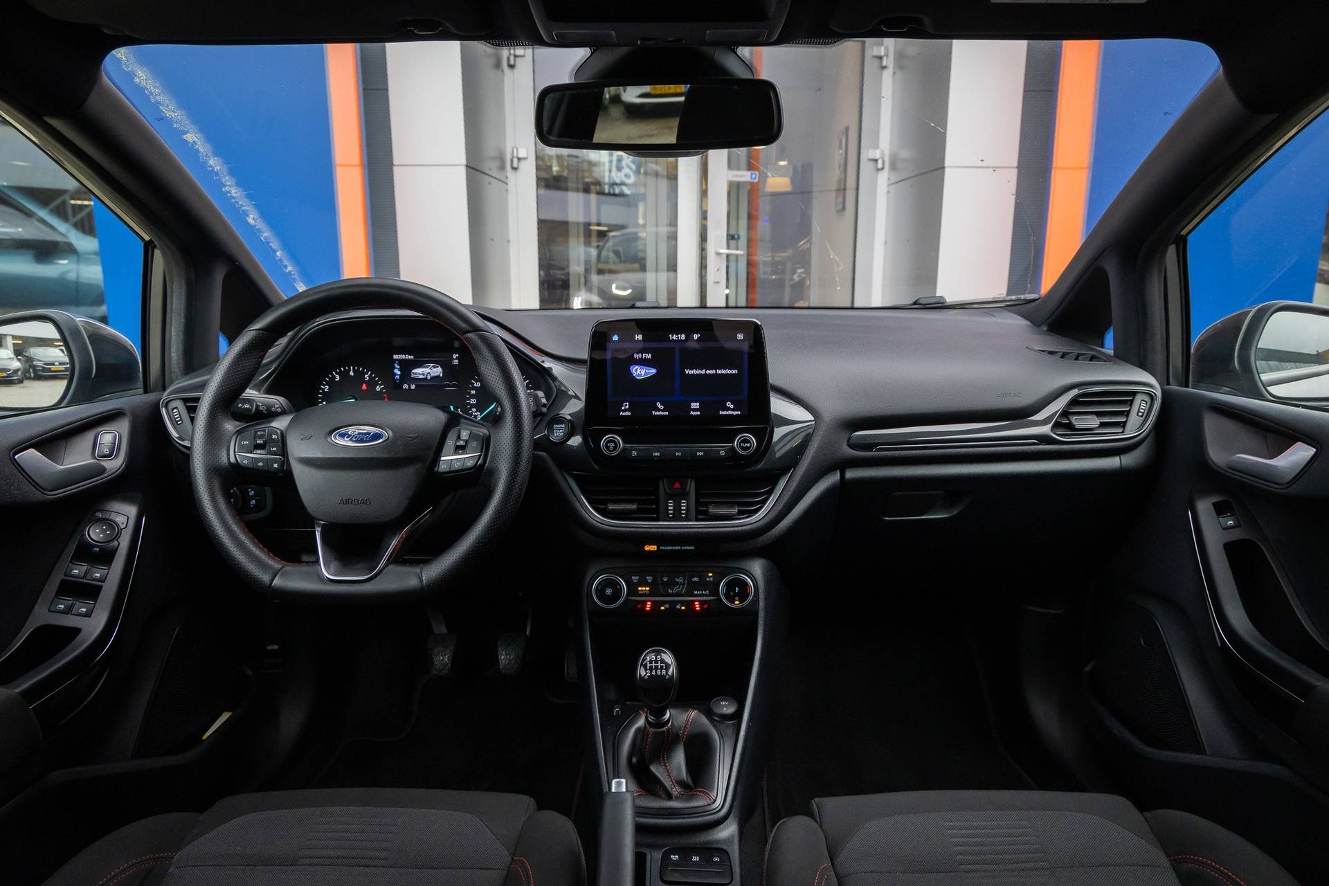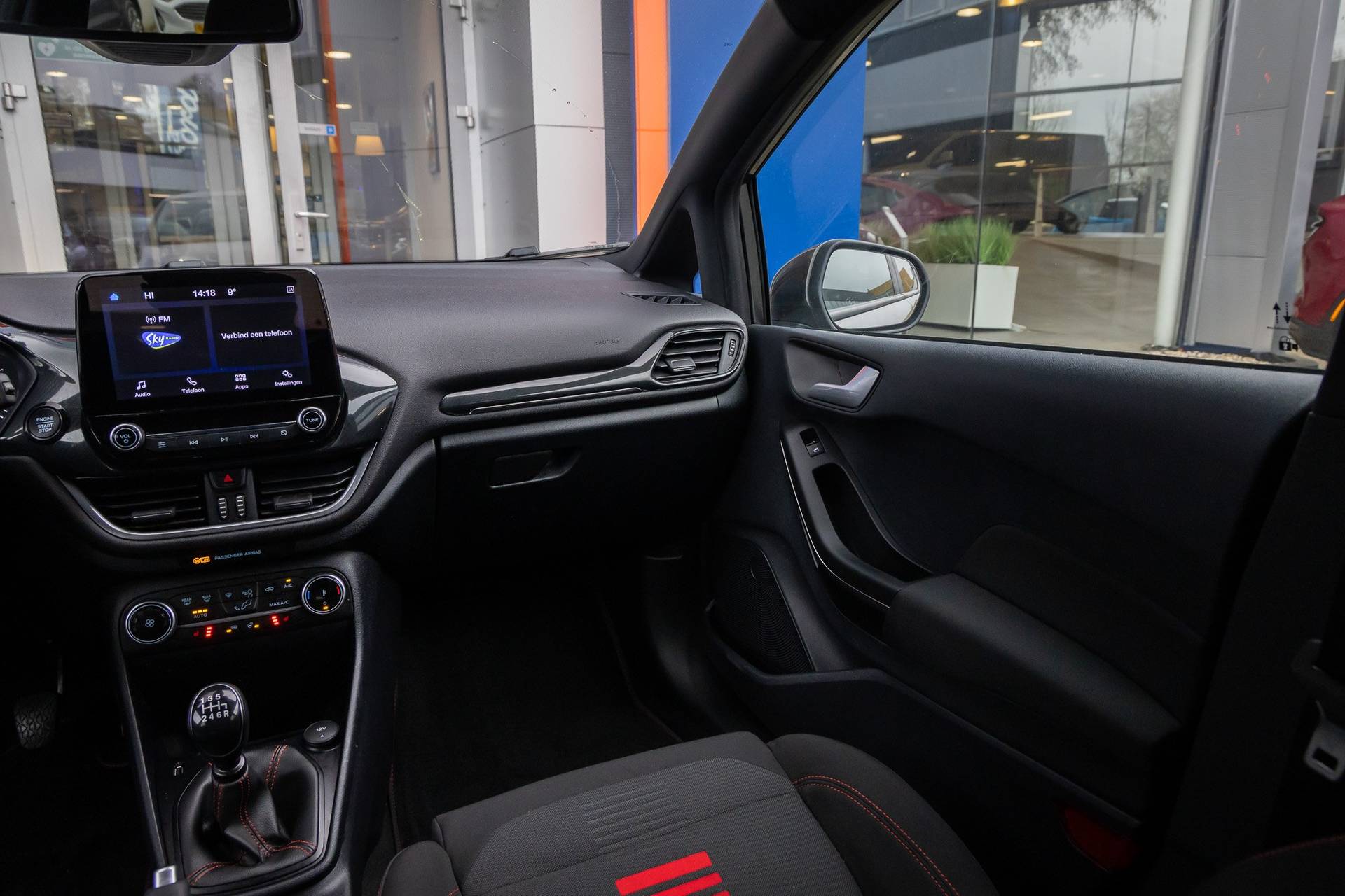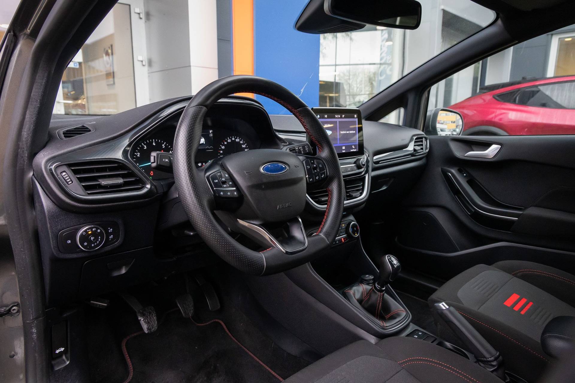 Ford, een merk met geschiedenis. En een ijzersterke reputatie. Go Further, zeggen ze. Een aantrekkelijke filosofie. Hij heeft een benzinemotor en een handgeschakelde zesversnellingsbak. 's Winters komen de verwarmbare voorstoelen heerlijk van pas. In het interieur domineren de sportstoelen, die er niet alleen stijlvol uitzien, maar die u ook optimaal ondersteunen tijdens de rit. Bij deze Ford Fiesta is aan alles gedacht, tot en met een verwarmd stuurwiel aan toe. Ook is de auto voorzien van: 17 inch lichtmetalen velgen, LED koplampen, sportonderstel, extra getint glas, in delen neerklapbare achterbank en snelheidsafhankelijke stuurbekrachtiging. Connected Services zorgen ervoor dat de belangrijkste functies en data van de auto altijd en overal te checken zijn. Gewoon via de app op de smartphone. U bedient het audiosysteem met DAB-radio via knoppen op het stuur of met uw stem. Zo kunt u steeds uw aandacht gericht houden op de weg. Aan boord van deze Ford Fiesta is een achteropkomend verkeer waarschuwing voor extra veiligheid. Natuurlijk is er ook automatische airconditioning aanwezig. Liever gepiep dan gekraak? Dan zult u blij zijn met de aanwezige parkeersensoren! Met cruise control, centrale deurvergrendeling met afstandsbediening en boordcomputer is deze Ford helemaal compleet. De intelligente veiligheidssystemen in deze auto waken continu over uw veiligheid. Onderweg fungeert de verkeersbord-detectie als het ware als uw bijrijder en attendeert u op de verkeersborden langs de weg. Onbedoeld buiten de rijstrook raken wordt voorkomen door het Lane-keeping systeem. Vermoeidsheidsherkenning herkent tekenen van vermoeidheid bij de bestuurder. Het systeem voorkomt dat er ongelukken gebeuren doordat de bestuurder in slaap valt. U bent mede dankzij hill hold functie, brake assist en bandenspanningcontrolesysteem steeds veilig onderweg. Neem contact op voor een afspraak en laat een proefrit het bewijs leveren!