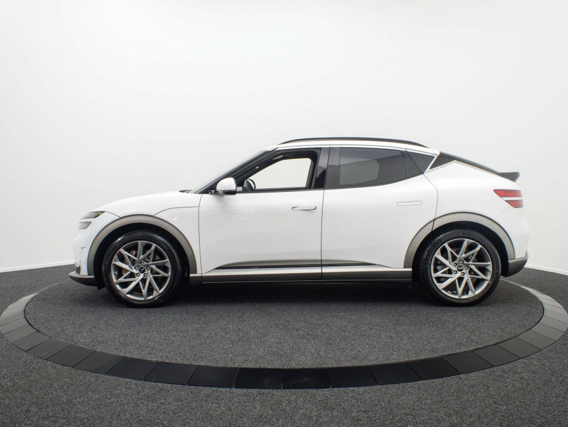 De Genesis GV60 77 kWh Premium Segment is een parel van een elektrische auto. Met zijn strakke lijnen en moderne uitstraling laat hij hoofden draaien waar je ook gaat. De prachtige witte kleur geeft de auto een elegant en tijdloos karakter. Stap in en je zult meteen verliefd worden op het verfijnde interieur, dat pure luxe uitstraalt.
