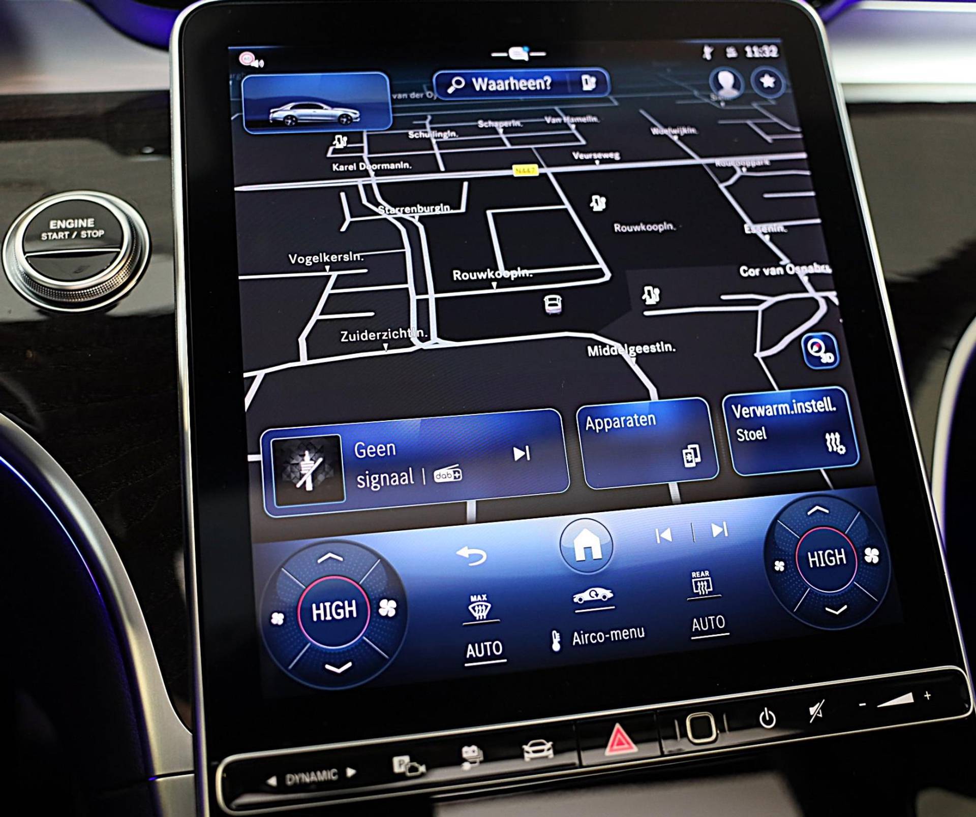 Pas de interface van uw cockpit moeiteloos aan. Het is mogelijk door het digitale dashboard in deze auto. De 360 graden camera op deze auto wordt verzorgd door vier geavanceerde camera's. Het biedt garantie van uitstekende beeldkwaliteit. Als u de adaptive cruise control inschakelt, regelt de auto zelf de snelheid en de afstand tot de auto voor u. Het infotainmentsysteem bedient u met uw vingers of met uw stem, met dank aan de geïntegreerde stembediening. Pech oplossen en zelfs voorkomen? Gaat eenvoudig. Via Connected Services heeft u alle data in de hand, gewoon op de smartphone! Deze Mercedes-Benz is voorzien van Burmester high-end sound system, navigatiesysteem met harde schijf, automatische airconditioning, DAB ontvangst, regensensor en keyless entry.
