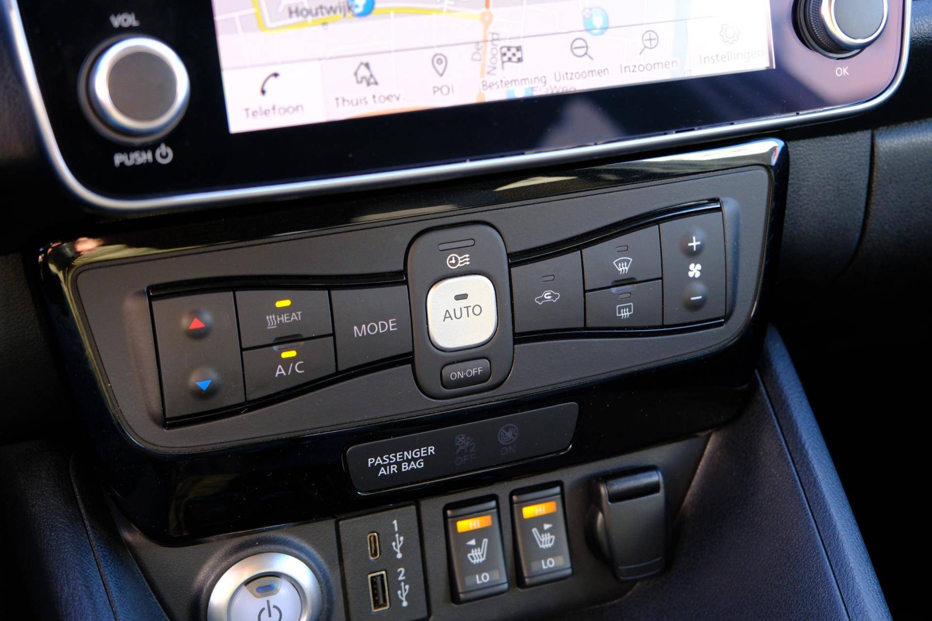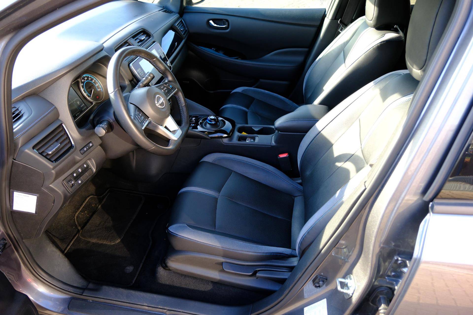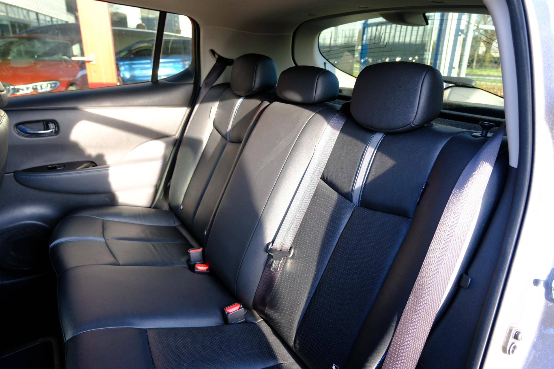 Alle technologie in de Nissan LEAF is er op gericht om uw rit veilig en gemakkelijk te laten verlopen. Zelfs op de koudste dagen zorgt het verwarmbare stuurwiel, de voorstoelen en de achterbankverwarming ervoor dat u en uw passagiers het nooit koud hebben in deze luxueuze auto. In deze Nissan profiteert u onder andere ook van: 17 inch lichtmetalen velgen, LED koplampen, halflederen bekleding, warmtewerend glas, in delen neerklapbare achterbank en LED-achterlichten.