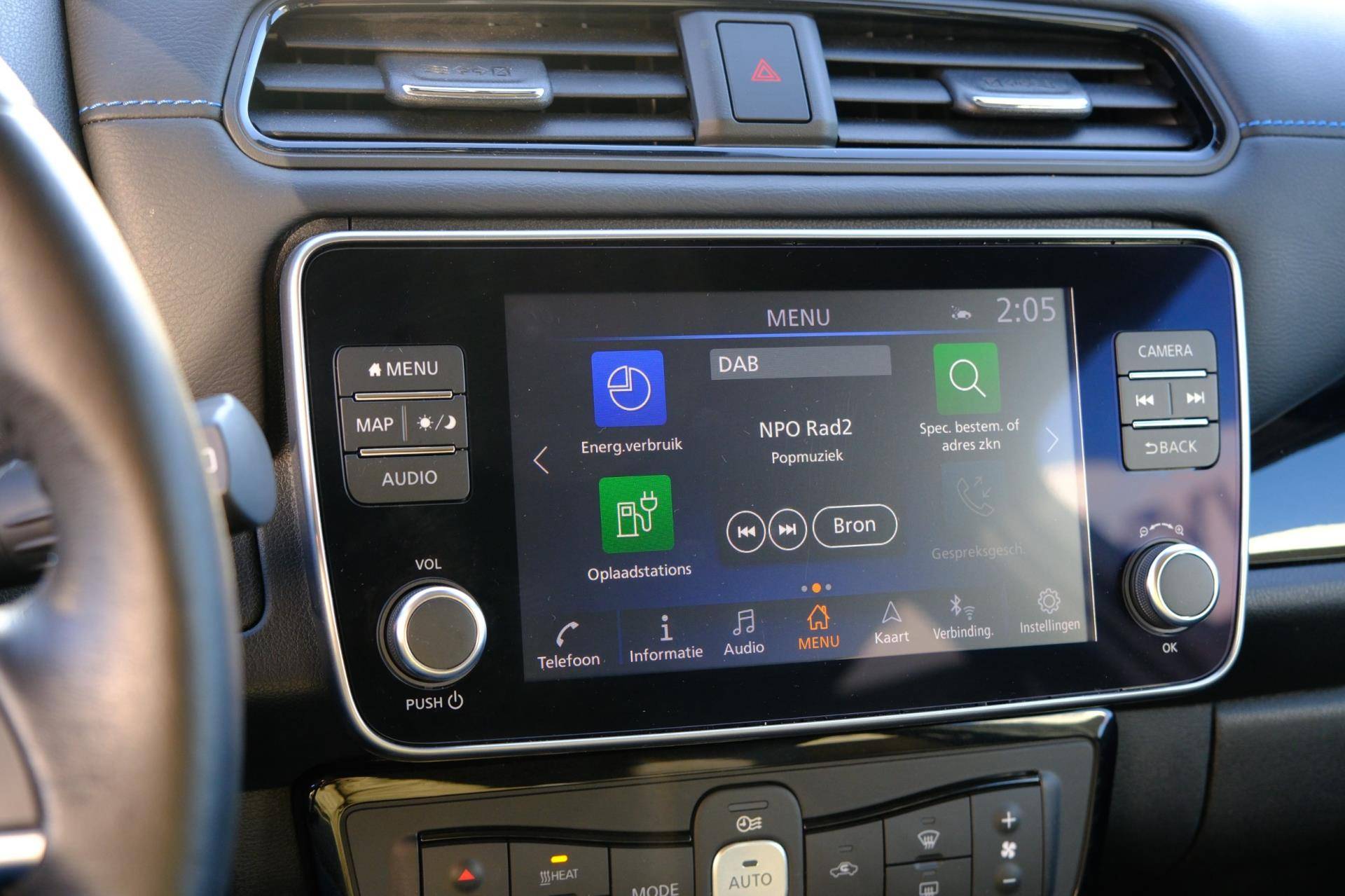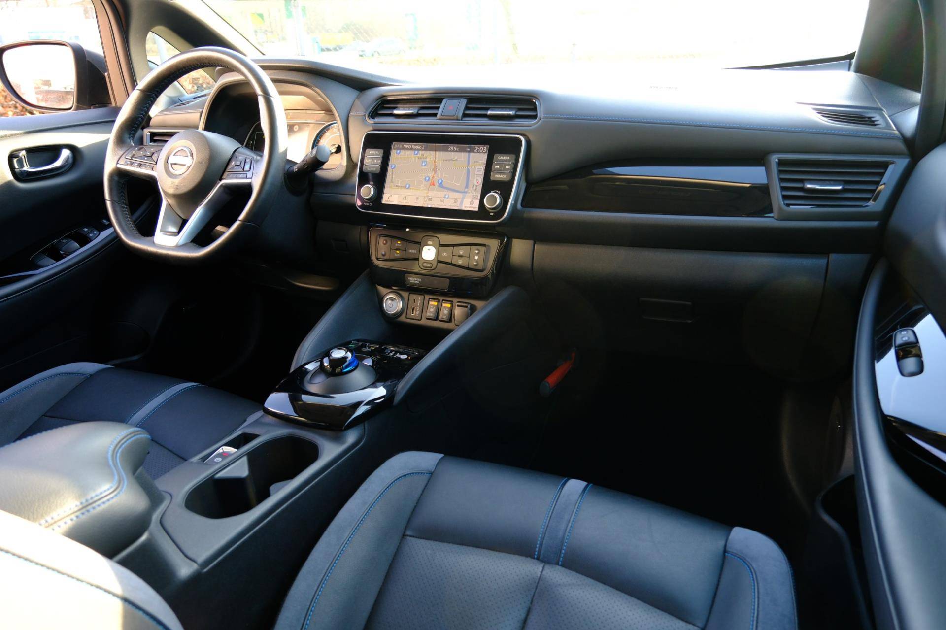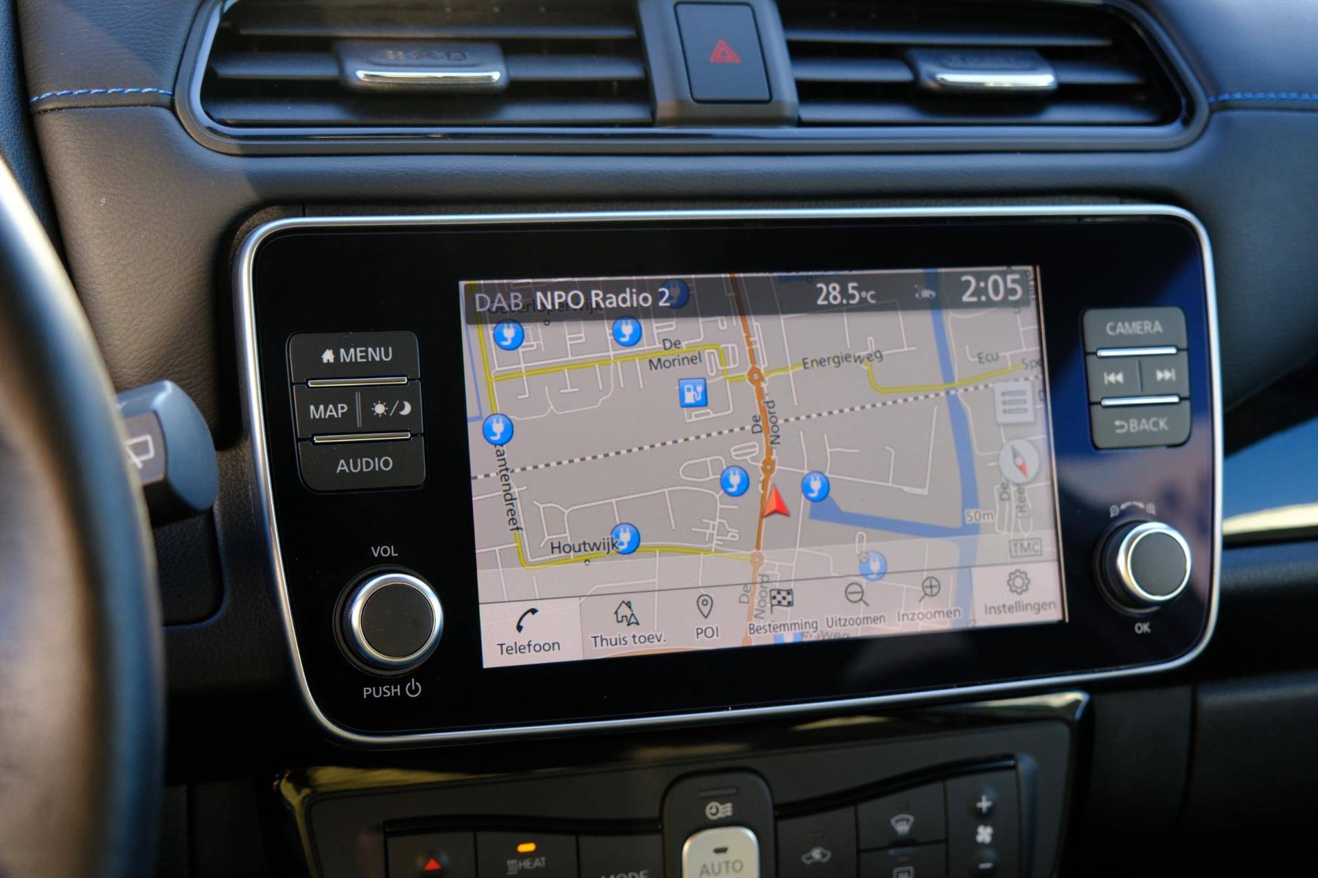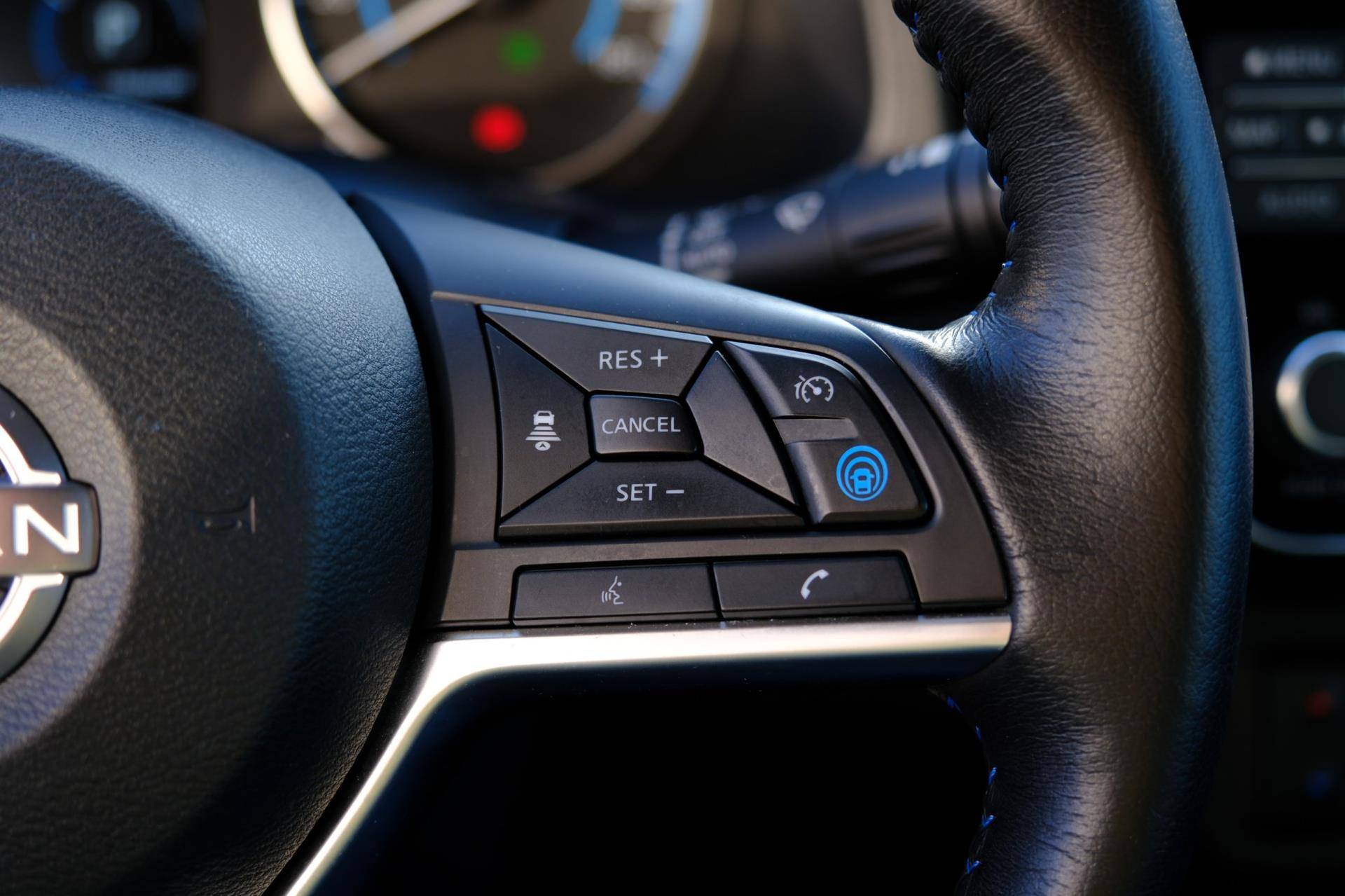 De Nissan LEAF is ook voorzien van ADAS. Deze Advanced Driver Assistence Systems fungeren als extra ogen en oren: ze houden voor u de weg in de gaten en grijpen in wanneer dat nodig is. U rijdt ook veiliger omdat deze auto voor u de verkeersborden langs de weg kan lezen. De belangrijkste borden worden op uw instrumentarium geprojecteerd, zodat u ze niet kunt missen. Deze Nissan LEAF is ook behulpzaam als het gaat om een rechte koers. Het Lane-keeping systeem signaleert en corrigeert als u onbedoeld de rijstrooklijnen dreigt te overschrijden. Actieve dodehoekdetectie geeft een waarschuwingssignaal wanneer een ander voertuig in uw dode hoek rijdt. Dit verkleint de kans op een aanrijding. U bent mede dankzij accident avoidance system, forward collision warning system, hill hold functie, brake assist, vermoeidheidsherkenning en bandenspanningcontrolesysteem steeds veilig onderweg.