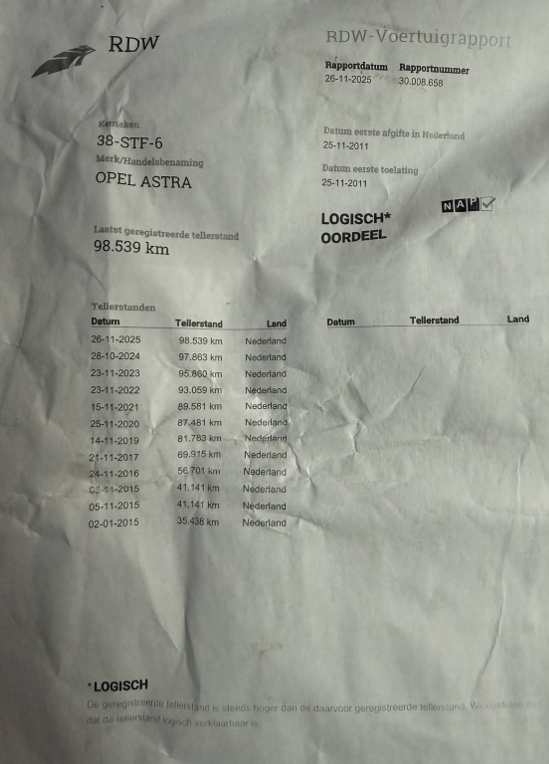 ✓ APK bij aflevering: J