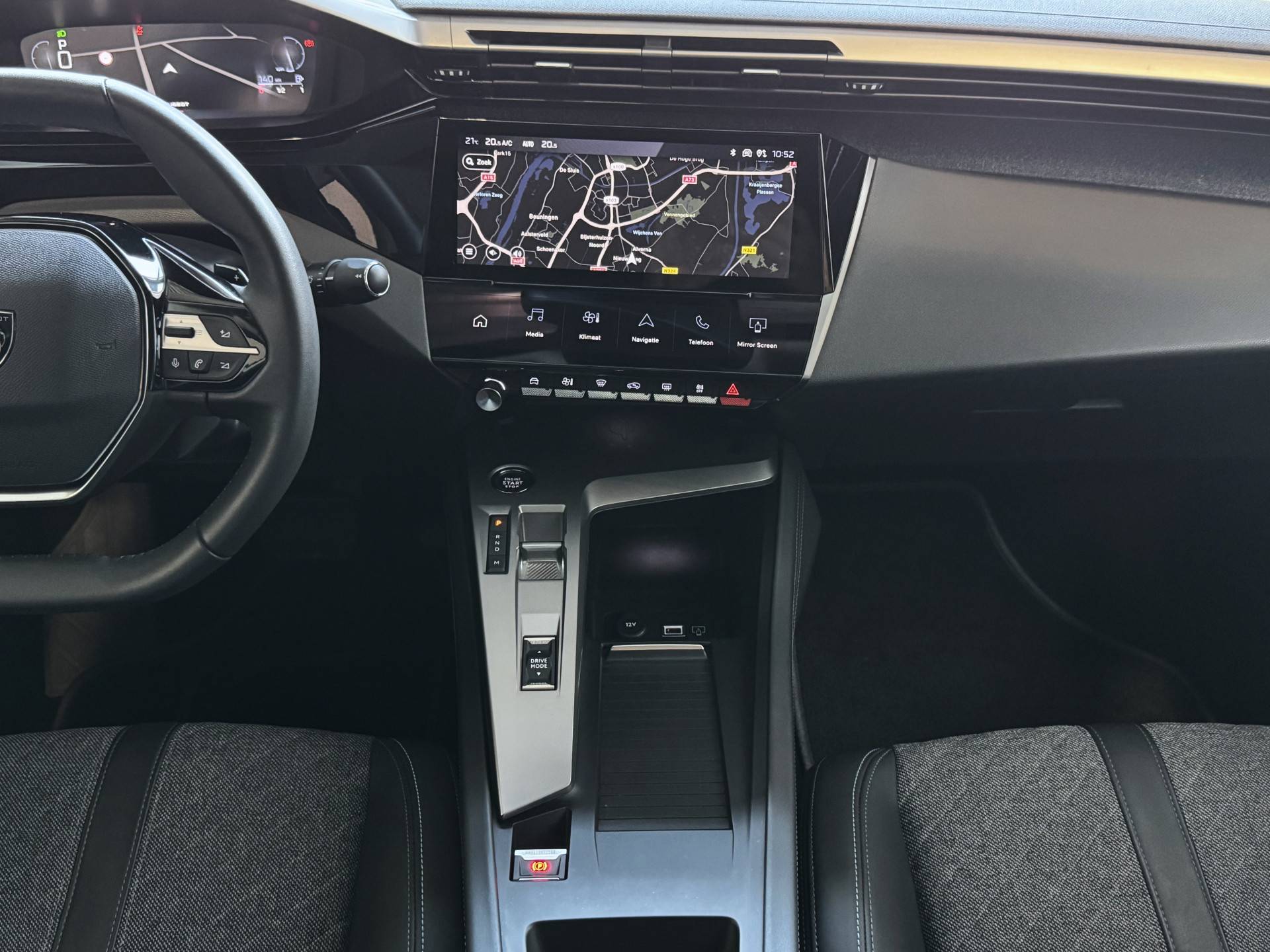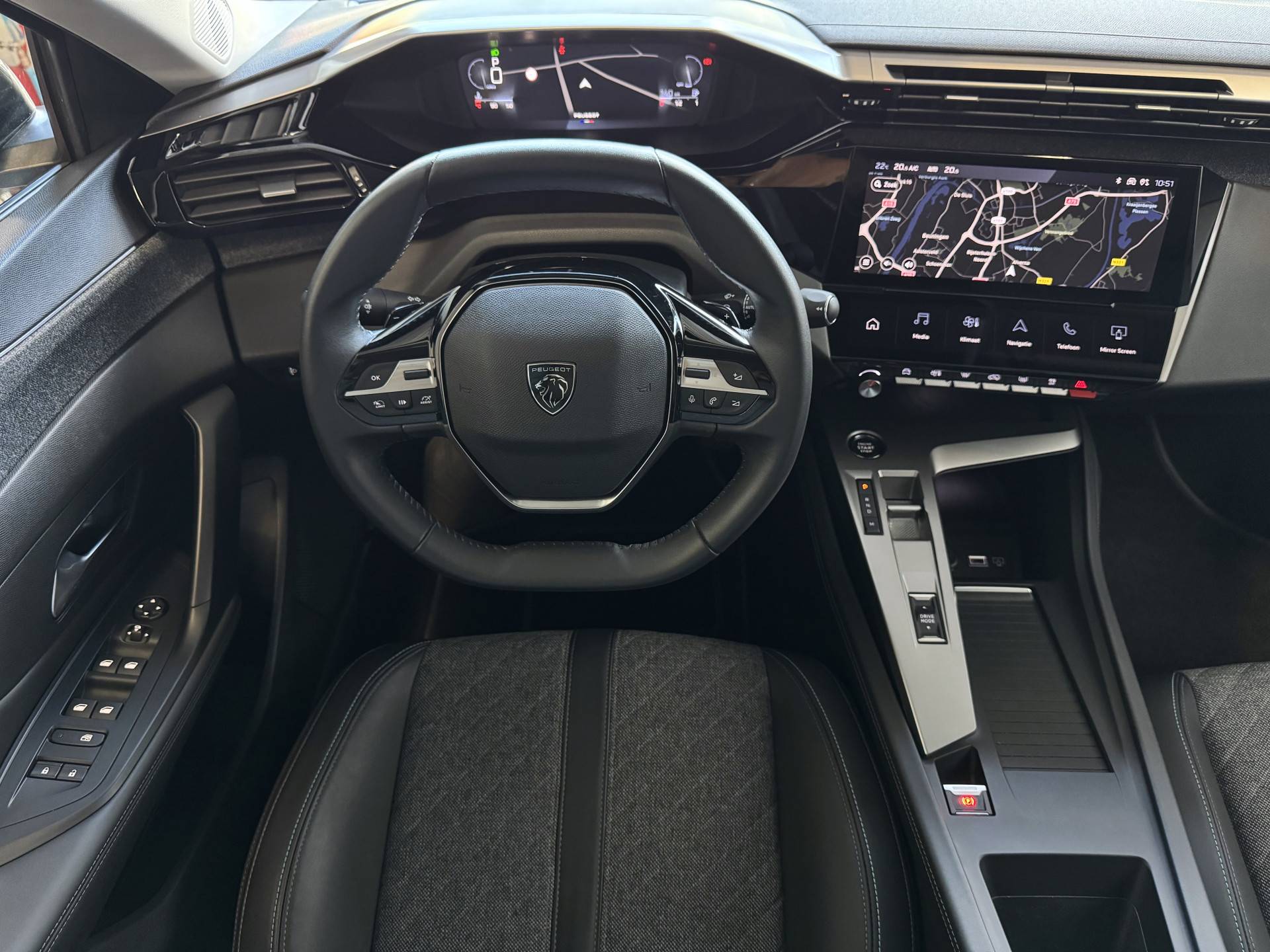 Luxe 308‑interieur met i‑Cockpit, 10” touchscreen, compact stuur en premium afwerking