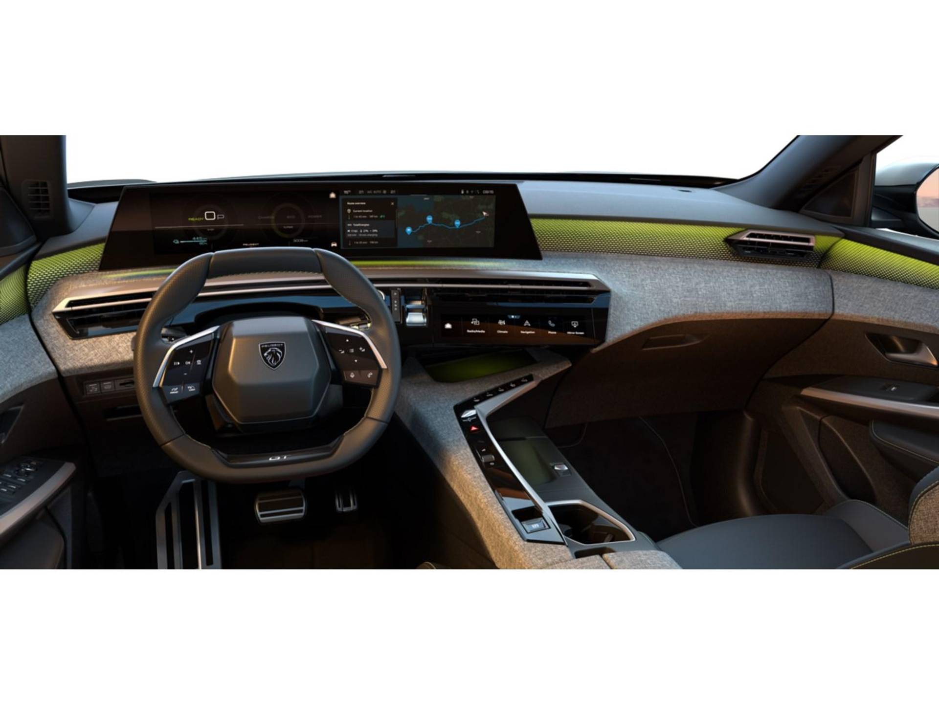 ✓ PEUGEOT Panoramic i Cockpit® met 21 inch gebogen , zwevend HD scherm