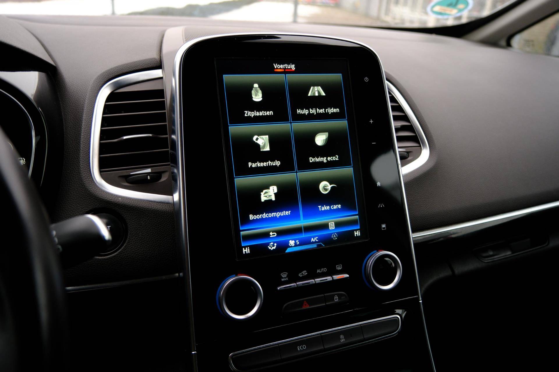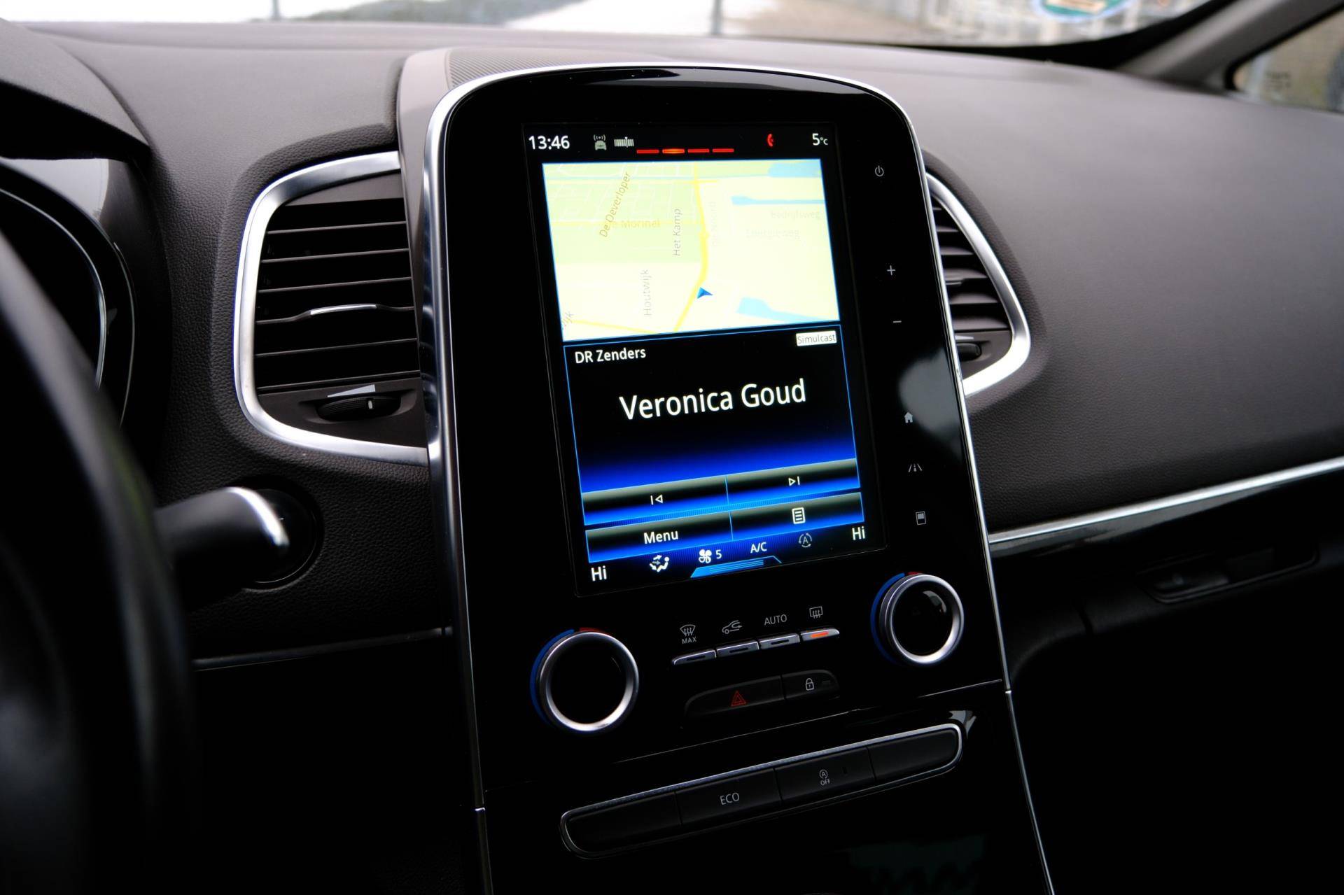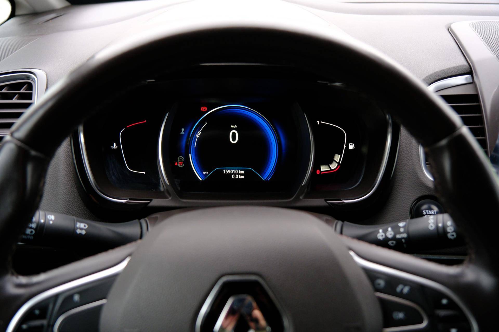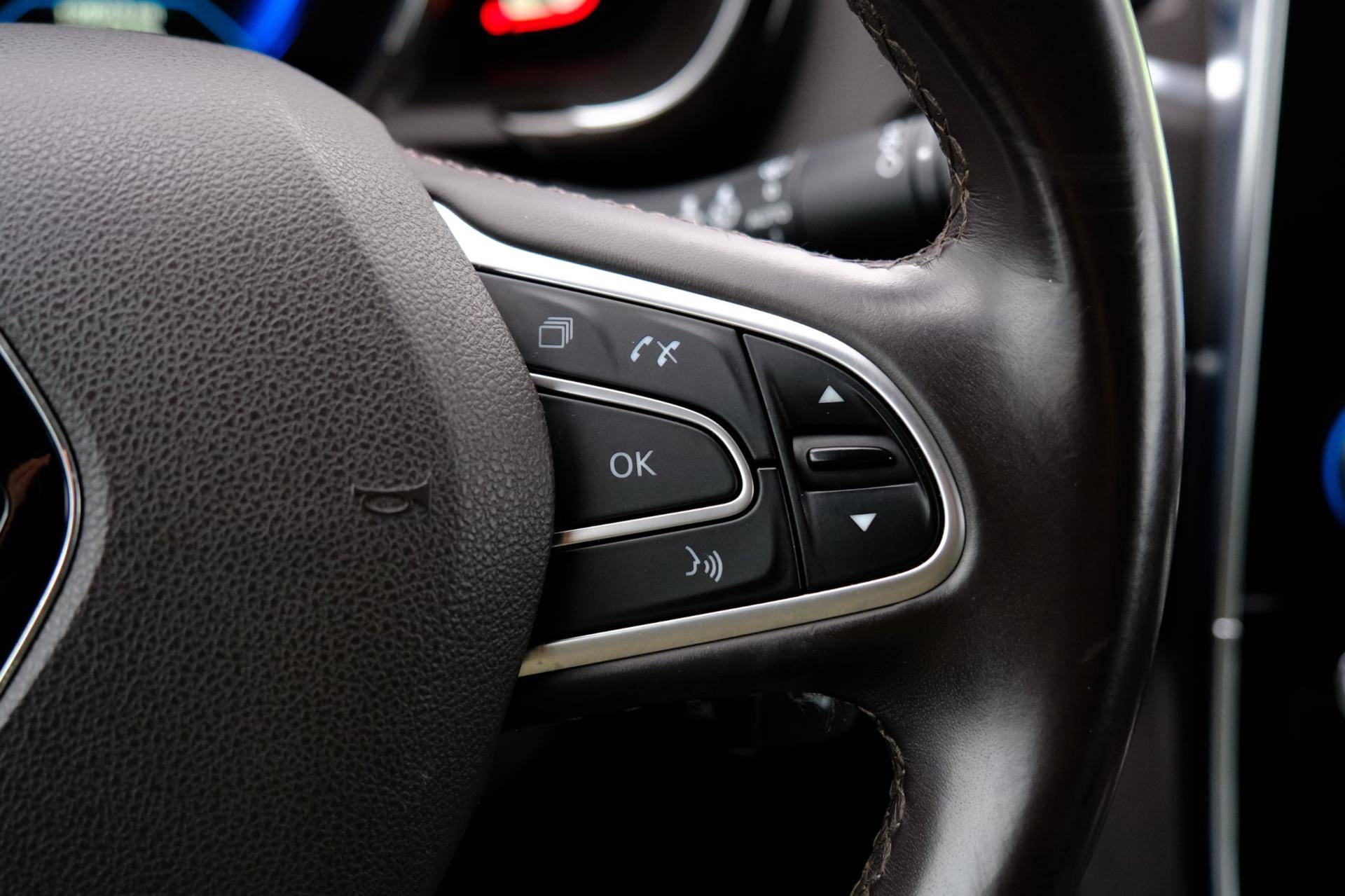 Automatische airconditioning regelt volautomatisch de temperatuur. U kiest de gewenste temperatuur en het systeem doet de rest. Superstrak parkeren wordt een eitje dankzij de parkeersensoren. Het drukke verkeer eist onderweg al uw aandacht op. Daarom is het goed dat deze Renault is voorzien van diverse systemen die u assisteren tijdens de rit. Een automatisch inschakelbare verlichting neemt het waar als het donker wordt of gaat schemeren, en schakelt dan automatisch de verlichting in. Op dezelfde manier "ziet" de regensensor de eerste spatjes regen en schakelt dan de ruitenwissers in, en als het harder gaat regenen zet hij de ruitenwissers ook in een snellere stand. Deze Renault is bovendien voorzien van cruise control. Dus comfortabel en zuinig rijden verzekerd! Een mooie eigentijdse optie is de keyless entry: zonder sleutels gaan alle sloten open zodra u in de buurt bent! Natuurlijk behoren dashboard met spraakbediening, navigatiesysteem, DAB ontvangst, automatisch dimmende binnenspiegel en lederen stuur ook tot de uitrusting van deze complete auto.