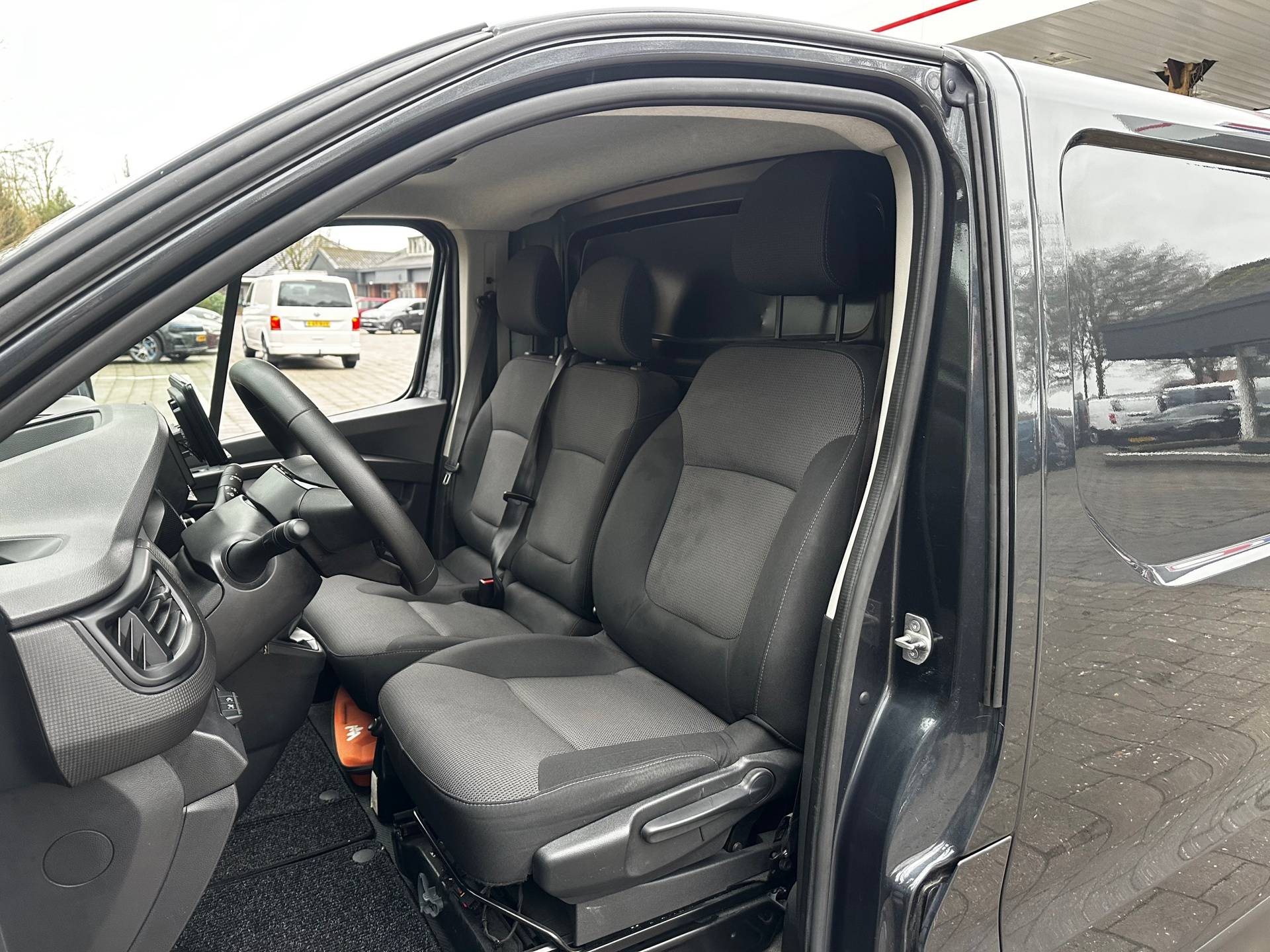 Renault Trafic 2.0 dCi 110 T30 L2H1 Comfort, afkomstig van de eerste eigenaar en altijd dealer onderhouden! Luxe uitgevoerd met onder andere: cruise control, airconditioning, DAB+radio, trekhaak, metallic lak, drie zitplaatsen, NAP..