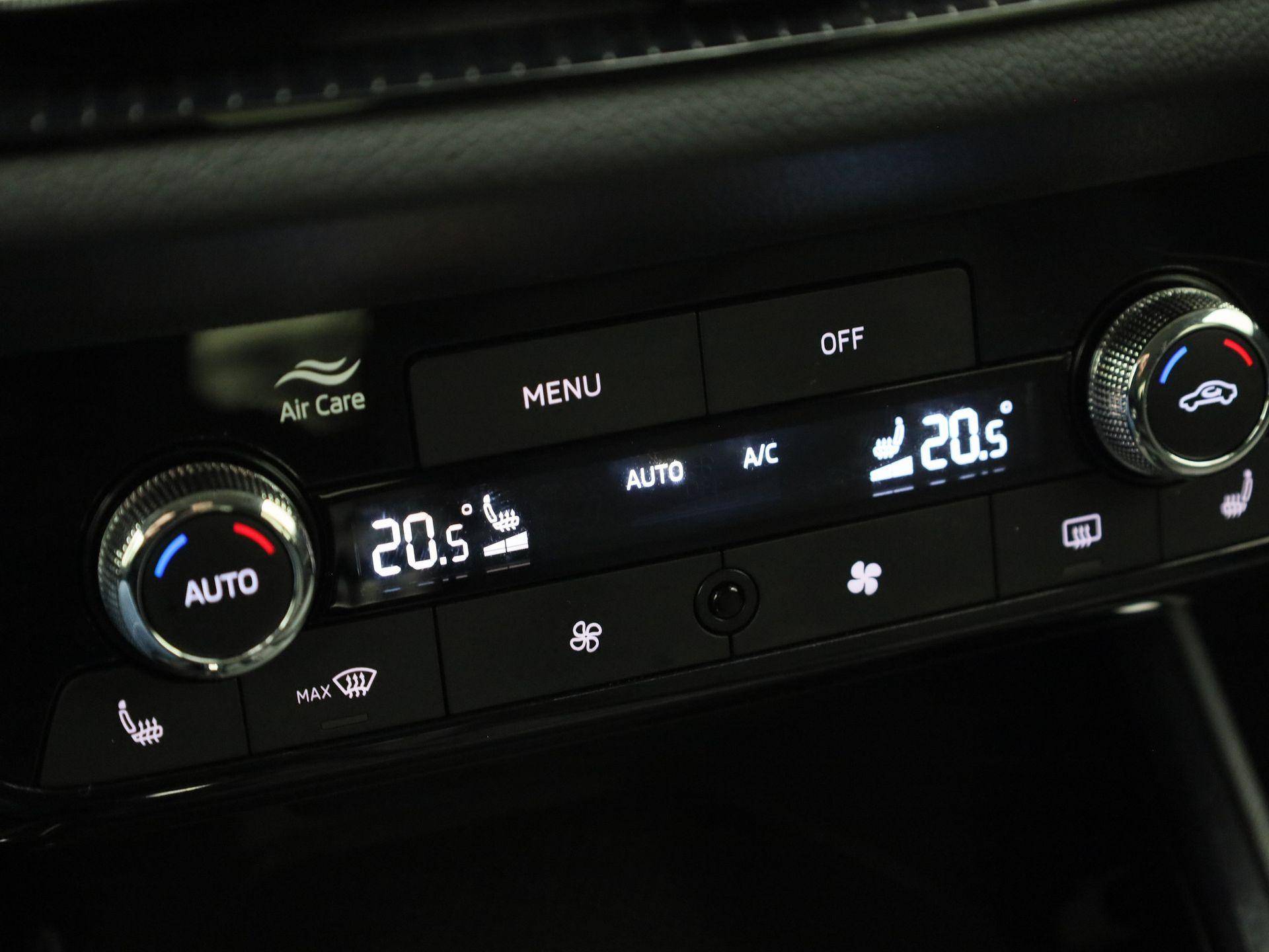 Het digitale dashboard rekent mee, denkt mee en rijdt mee. Alle info overzichtelijk in beeld, overal. Communiceren met uw auto? Dat gaat via remote services. Met uw smartphone maakt u waar dan ook contact om allerlei functies te checken of te activeren. Met automatische airconditioning hoeft u alleen de gewenste temperatuur in te stellen. Het systeem doet de rest. Met de audiobediening op het stuur bedient u het audiosysteem zonder uw ogen van de weg te halen. Met de DAB-ontvanger heeft u keuze uit talloze digitale radiozenders met de allerhoogste geluidskwaliteit. Deze Skoda is voorzien van parkeersensoren achter, regensensor, cruise control, keyless entry, automatisch dimmende binnenspiegel en lederen stuur.