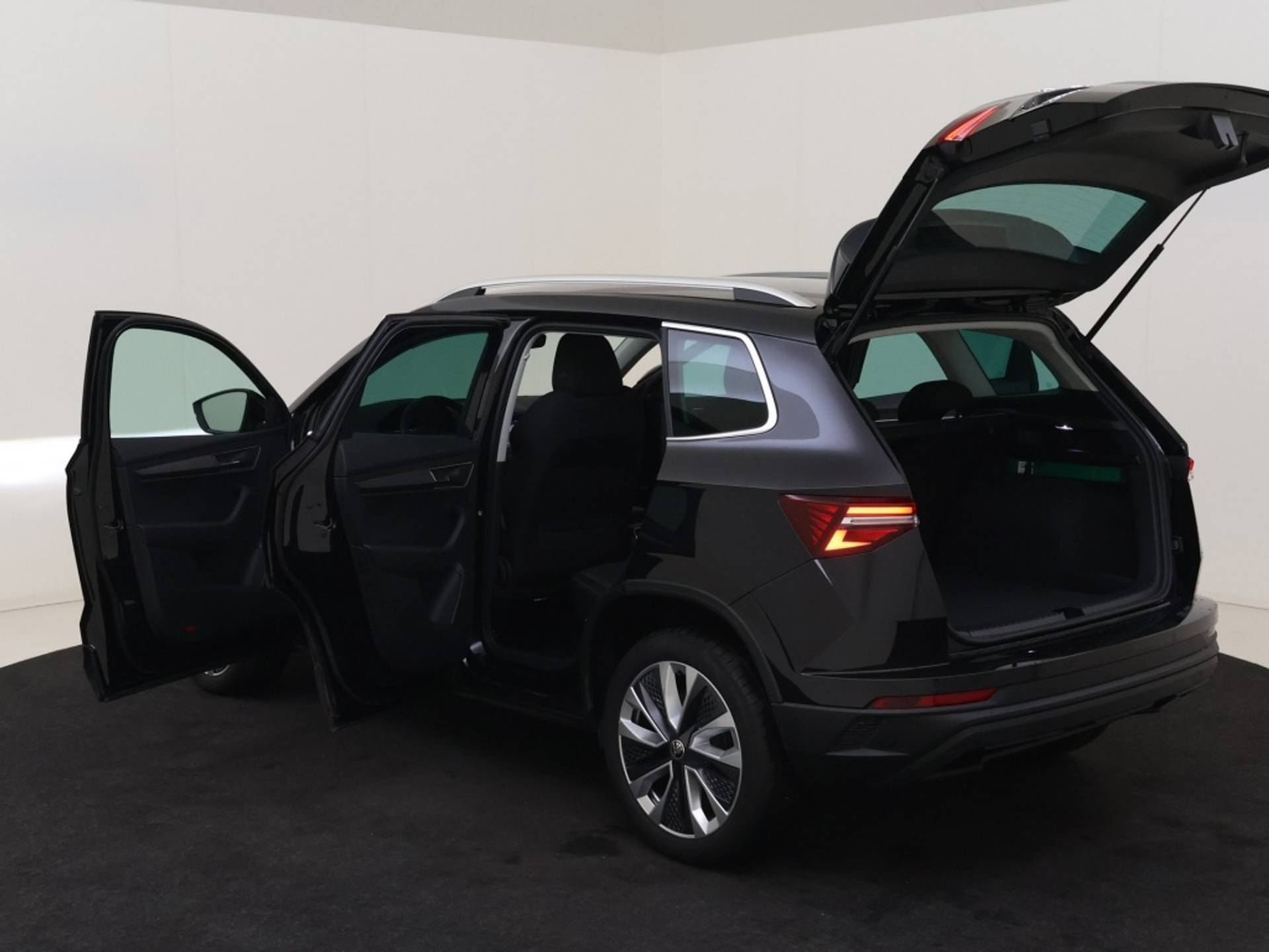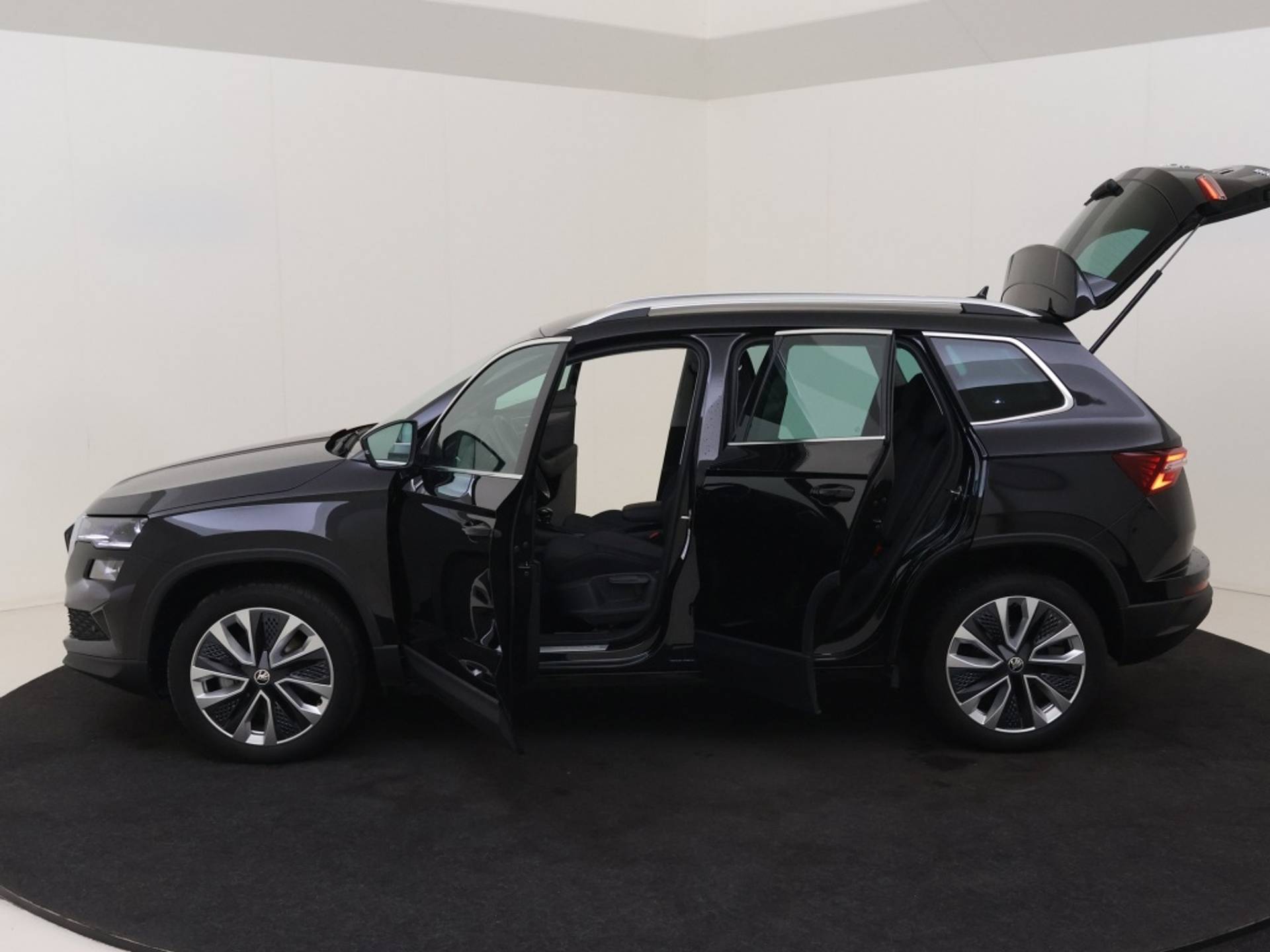Met zijn stijlvolle lichtmetalen velgen van 18 inch en metallic lak is deze Skoda Karoq een echte eyecatcher. De 5 deuren zorgen voor praktisch gemak en toegang tot de ruime en comfortabele cabine, waar u en uw passagiers kunnen genieten van een luxueuze rijervaring.