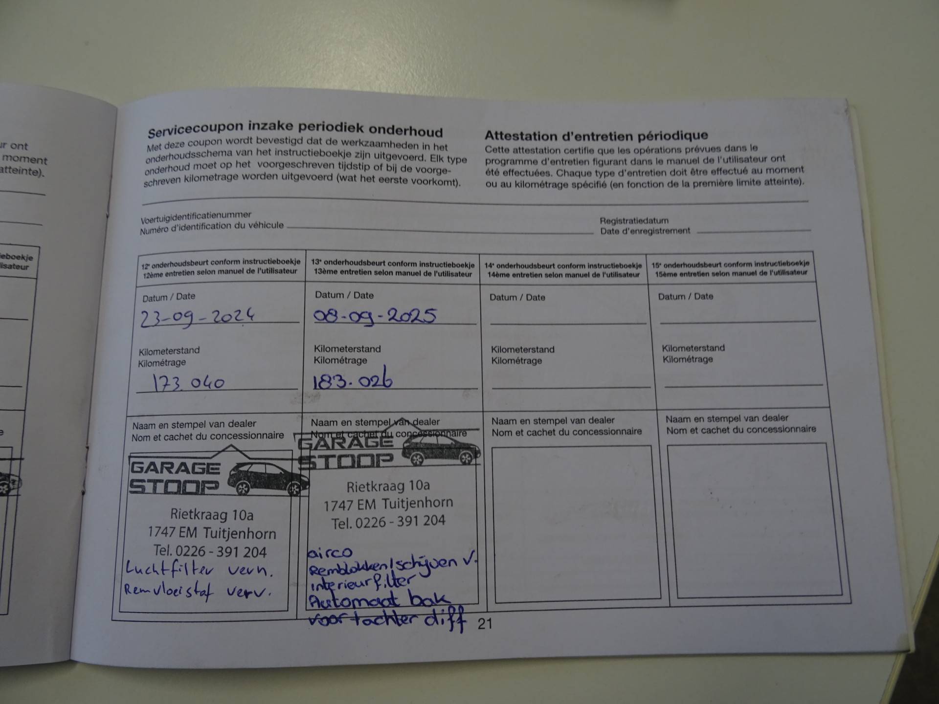 Laatste service is bij 183dkm uitgevoerd.