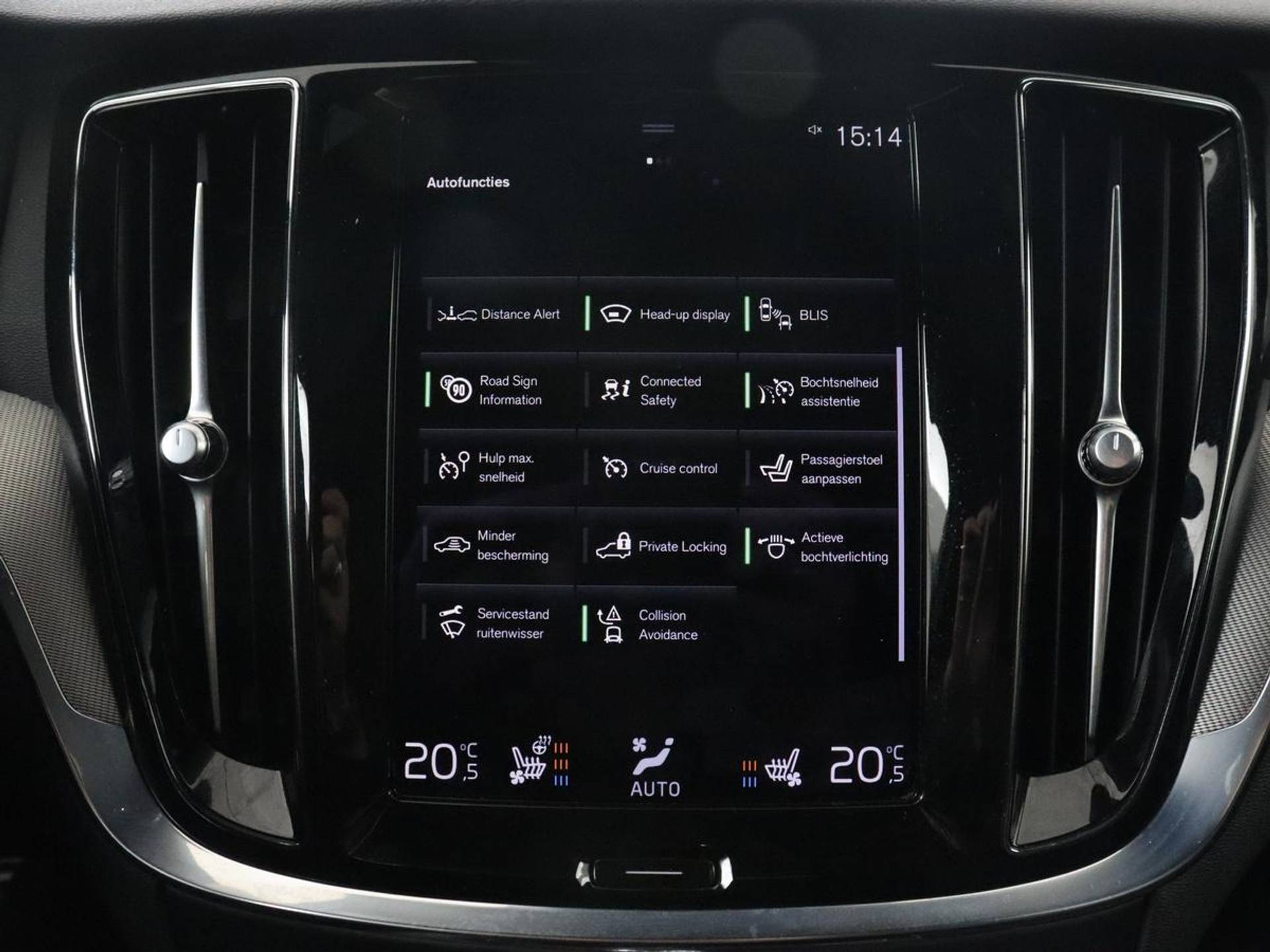 Als bestuurder van deze Volvo bent u nooit alleen. U wordt onderweg bijgestaan door technologische hulpmiddelen die samen met u de weg in de gaten houden. Als het nodig is, grijpen ze zelfs in, door te remmen of bij te sturen. Het Top Gun-gevoel komt van de head-up display, die alle dashboardinfo in het rijzicht projecteert. Belangrijk voor uw veiligheid en die van uw passagiers is de verkeersbord-detectie in deze auto. Het Lane-keeping systeem let constant op en waarschuwt of corrigeert als u onoplettend over de lijnen van de rijstrook gaat. In deze Volvo vinden we verder een dodehoekdetector detectiesysteem, forward collision warning system, hill hold functie, brake assist, vermoeidheidsherkenning en bandenspanningcontrolesysteem.