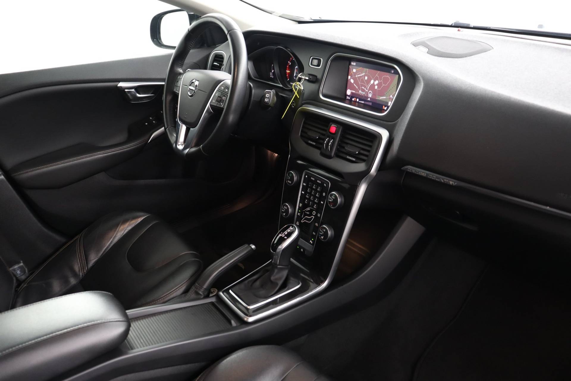 Deze Volvo V40 Cross Country staat voor u klaar. Een geweldige, nog jonge occasion die goed is voor gemakkelijk nog een tonnetje of twee op de teller. In deze auto vindt u een benzinemotor en een automatische transmissie. Het lederen interieur geeft deze auto luxe en klasse. Hoe koud het buiten ook is, de stoelverwarming geeft u meteen een behaaglijk gevoel. In weer en wind een cabriosensatie? Dat kan met het riante glazen panoramadak. Ook 17 inch lichtmetalen velgen, LED koplampen, dakspoiler, extra getint glas, in delen neerklapbare achterbank en LED-achterlichten horen tot de voorzieningen op deze auto. Middenin de winter stapt u in een behaaglijk warme auto dankzij de standkachel. Omdat u nou eenmaal geen ogen in uw achterhoofd heeft, is het altijd lastig om achteruit te rijden zonder brokken te maken. De achteruitrijcamera lost dat probleem op. Handig en veilig: Connected Services. Alle vitale functies en data van de auto checkt u via de app op uw smartphone. Formidabele geluidskwaliteit en een compleet spectrum van klank wordt geleverd door het high performance audiosysteem. De achteropkomend verkeer waarschuwing geeft een signaal als degene achter u te dicht op u zit. Ook handig en veilig bij het wisselen van rijbaan. Natuurlijk behoren dashboard met spraakbediening, navigatiesysteem met harde schijf, electronic climate control, DAB ontvangst, regensensor en cruise control ook tot de uitrusting van deze complete auto. De nieuwste veiligheidssystemen komen in deze Volvo V40 Cross Country samen. Wanneer u hard moet remmen, is elke decimeter verkorting van de remweg essentieel. Voor extra remkracht zorgt dan de Brake Assist. De veiligheid van deze auto wordt verder verhoogd door hill hold functie en bandenspanningcontrolesysteem. Indien u interesse heeft in deze auto, zetten we hem graag klaar voor een proefrit. We horen graag van u, mailt of belt u ons meteen?