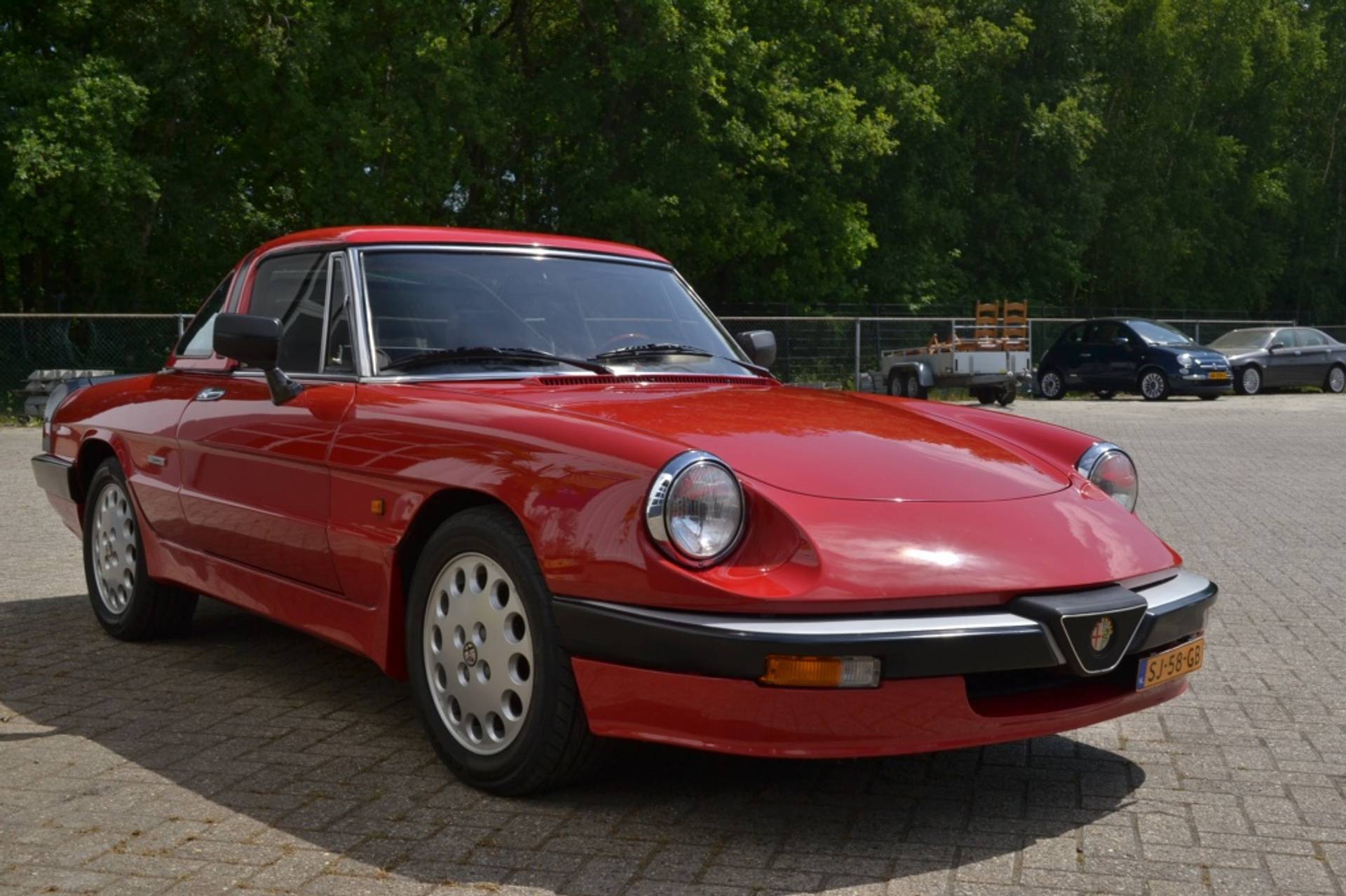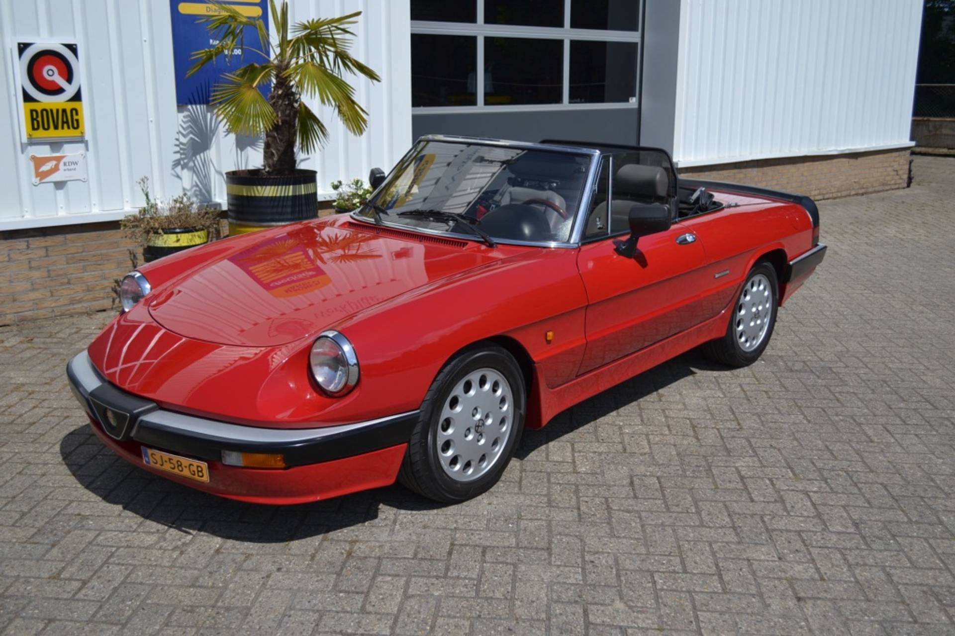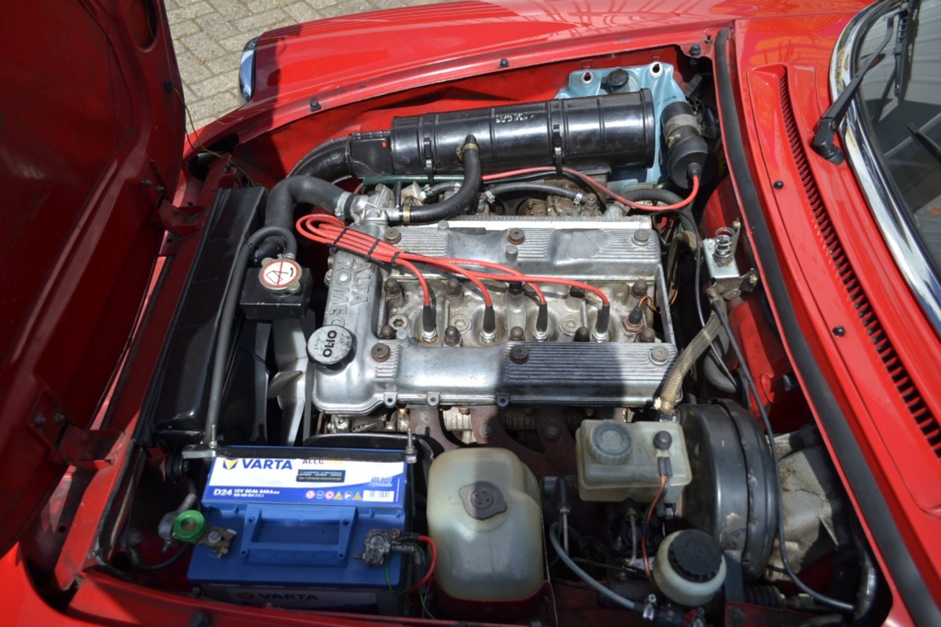 In deze Alfa Romeo vindt u een benzinemotor met carburateurs en een handgeschakelde vijfversnellingsbak.