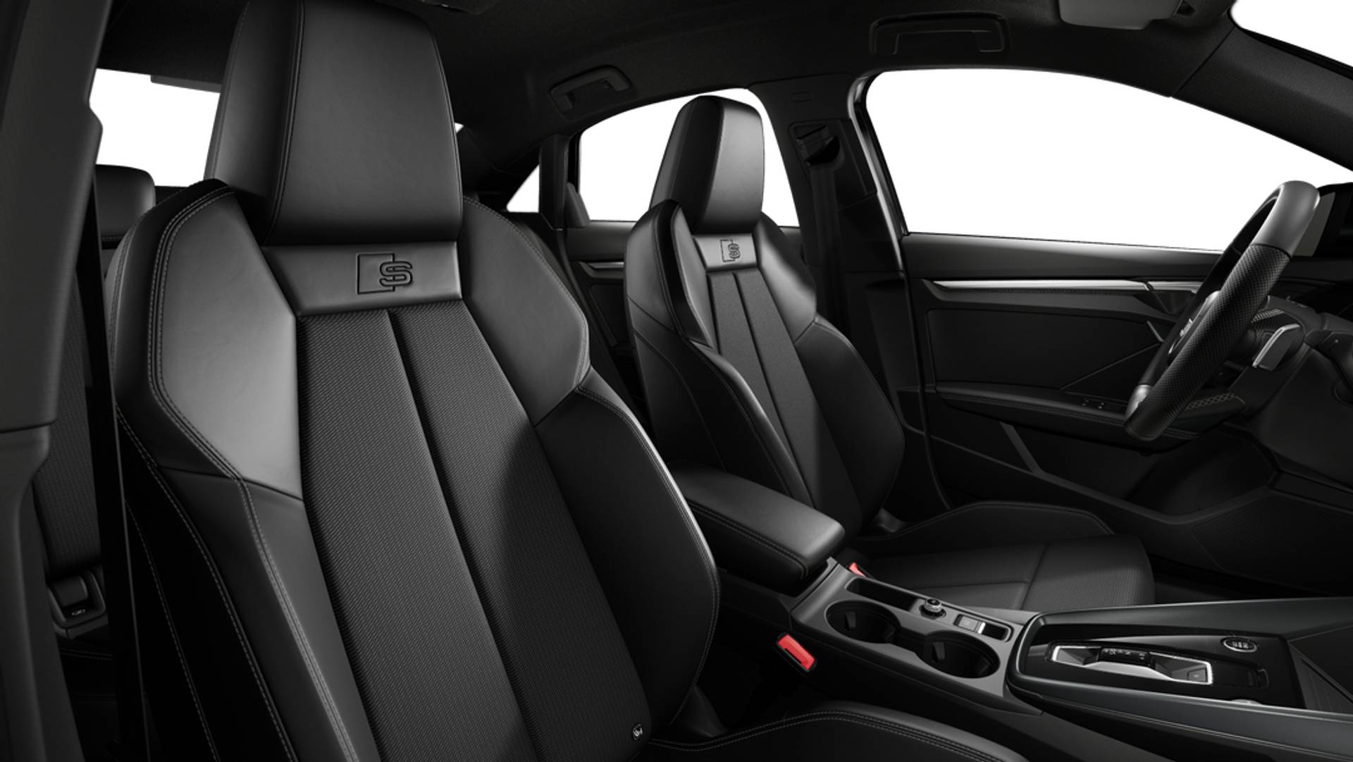 Interieur: S line-interieur met sportstoelen en zwarte stoffen-kunstlederen bekleding