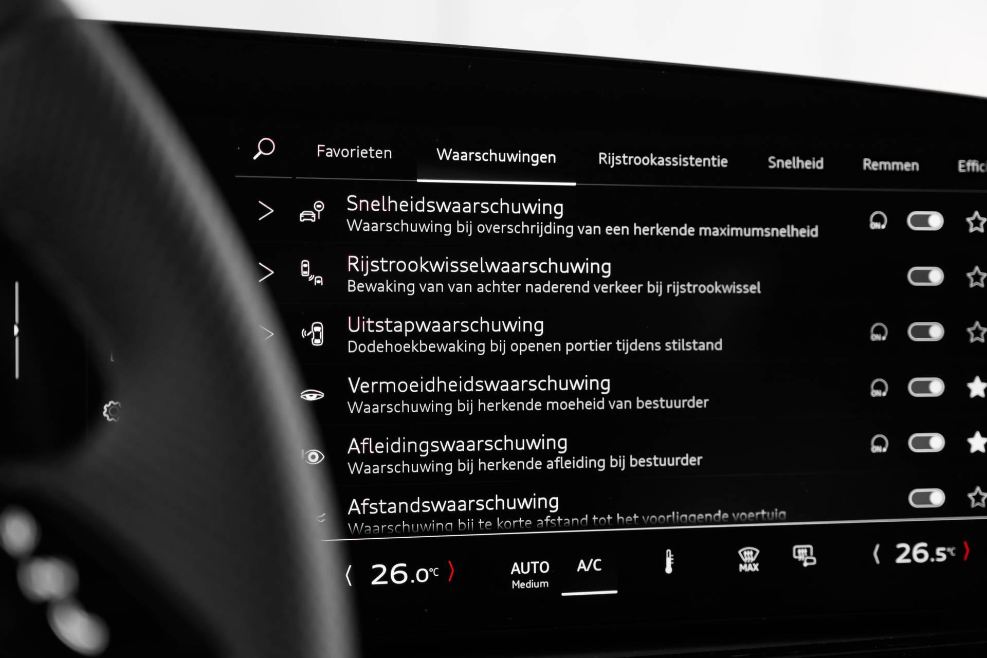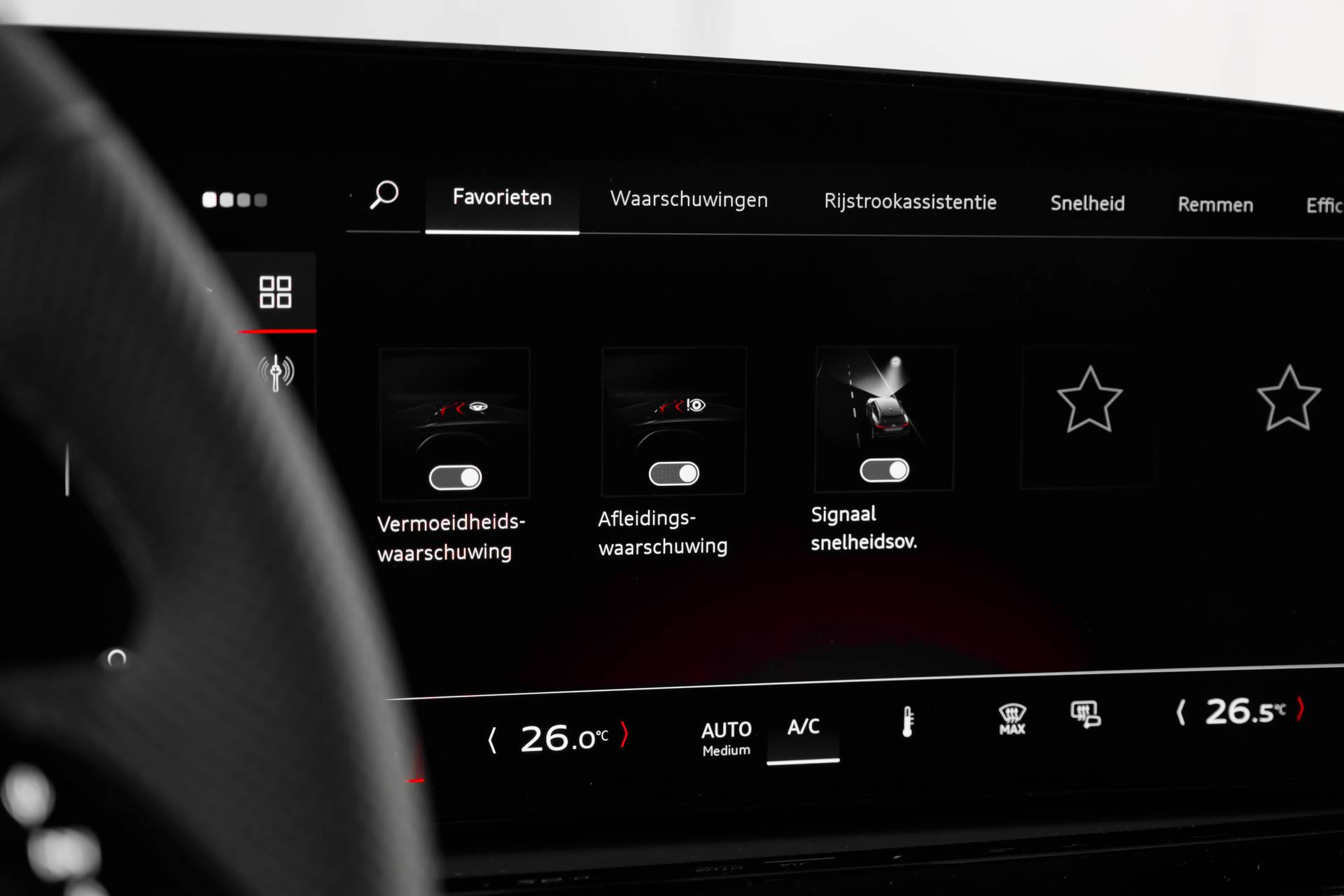 ✓ Tweespaaks lederen stuur, multifunctioneel, met stuurpaddels