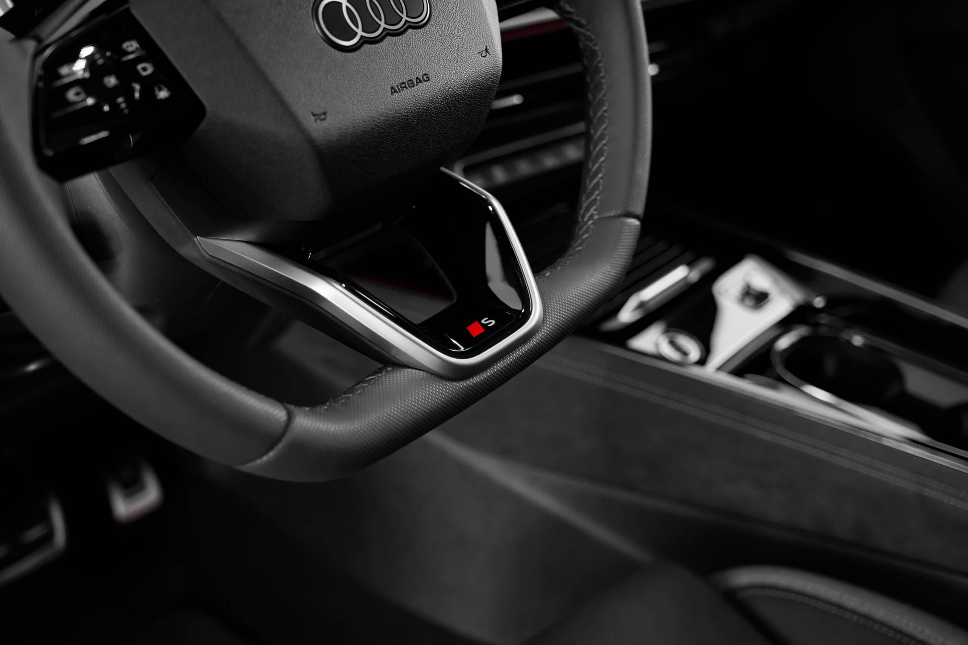 ✓ Chroomkleurige stuurapplicatie, S-logo, geperforeerd leder ter hoogte van de handen, contraststiksels