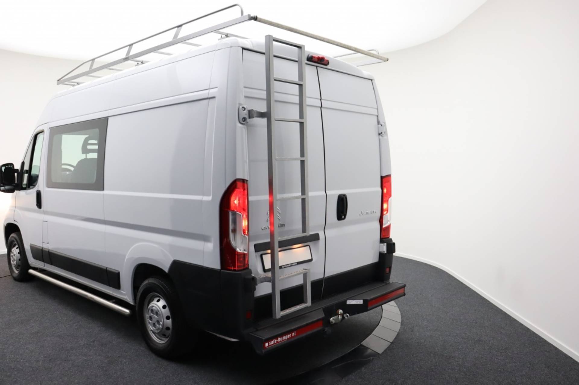 Met 6 comfortabele zitplaatsen biedt hij ruimte voor je hele team, terwijl de RVS-imperiaal bovenop zorgt voor extra laadcapaciteit – perfect voor ladders, buizen of andere lange materialen. De sidebars en safety bumper geven de bus niet alleen een stoere uitstraling, maar bieden ook extra bescherming tijdens je dagelijkse ritten.