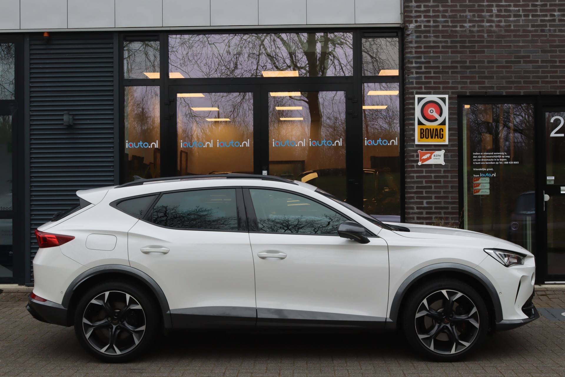 Volledig dealeronderhouden Cupra Formentor met de krachtige en zuinige 180kW/245PK Plugin Hybride motor. De zeer luxe VZ Performance uitvoering met het originele panoramdak, de elektrisch bedienbare lederen kuipstoelen met memory, de originele wegklapbare trekhaak en zeer veel andere opties, onder andere: 19" lichtmetalen velgen "Performance", DCC (adaptief onderstel), virtual cockpit, origineel navigatiesysteem 12 inch, App-Connect (Apple CarPlay/Android), Keyless entry/start, parkeersensoren voor en achter met parkeerhulp en een 360 rondomzicht camera, elektrische achterklep met voetbediening, comfort telefonie met draadloos laden, dodehoeksensor, stoelverwarming en stuurwielverwarming, sfeerverlichting, Cupra Supersport stuur met Cupra-knop en Startknop en een adaptieve cruise control. Deze auto wordt geleverd inclusief 12 maanden BOVAG garantie, zonder meerprijs.