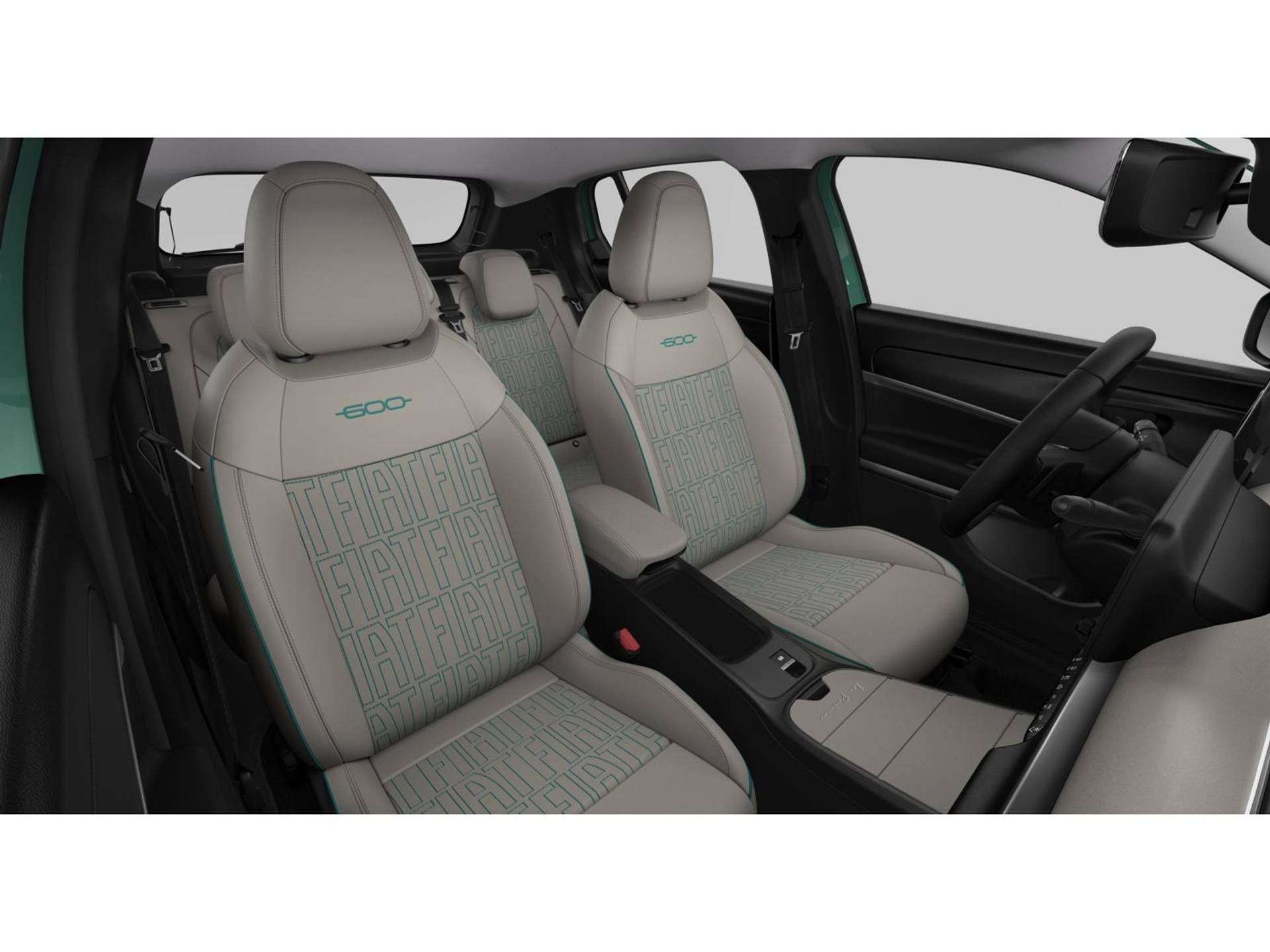 Interieur: Kunstlederen ivoorkleurige stoelbekleding met FIAT logo