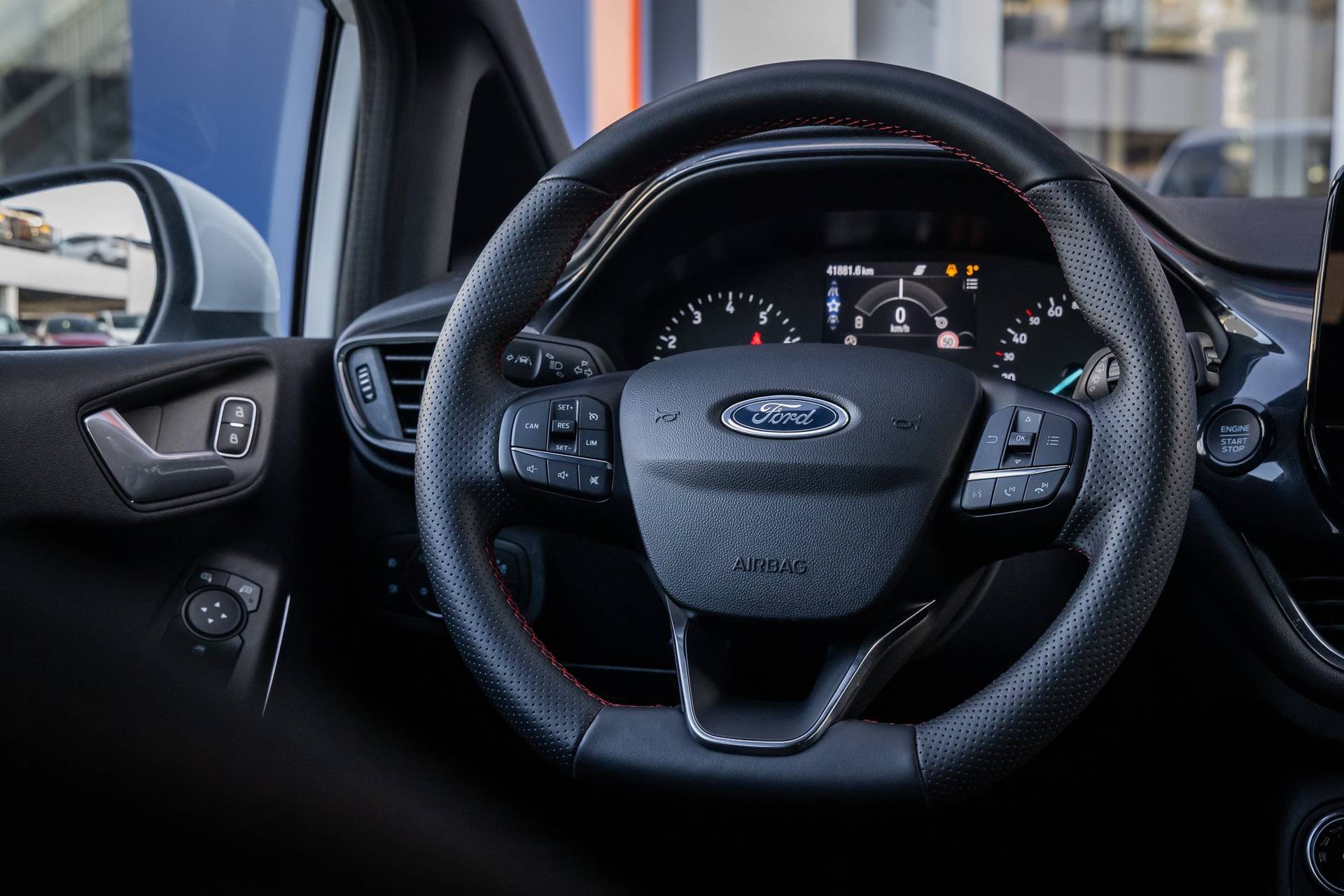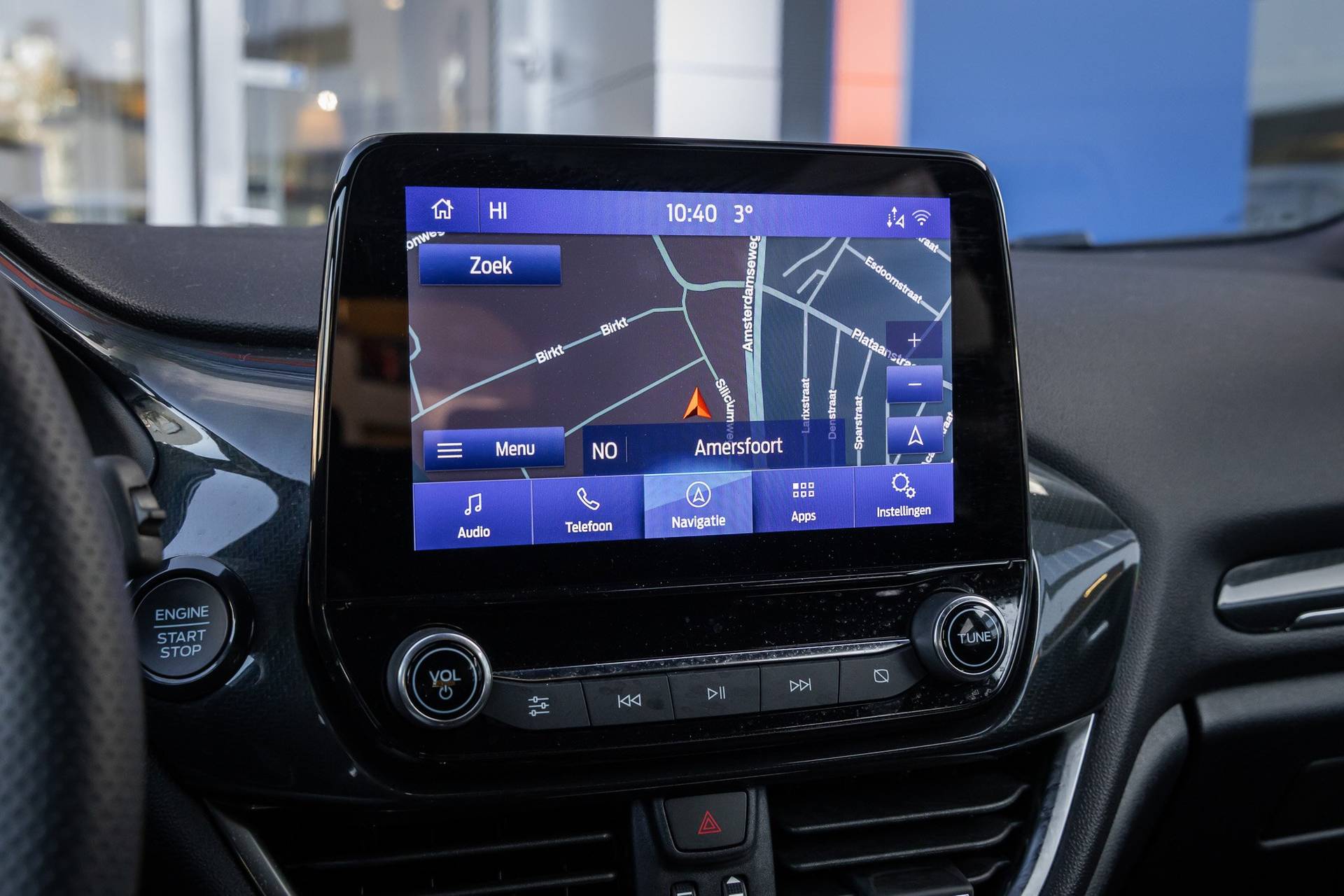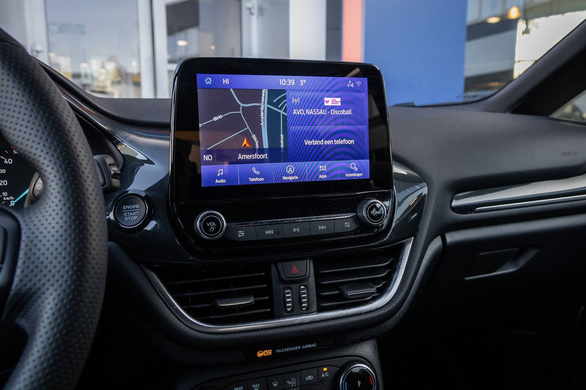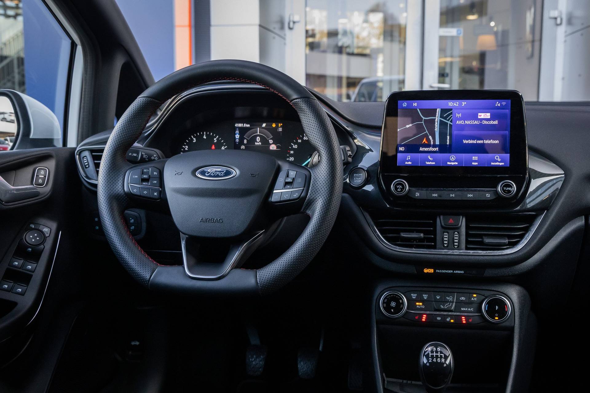 Go Ford, Go Further. En dat maakt deze auto helemaal waar. Hij heeft een benzinemotor en een handgeschakelde zesversnellingsbak. Voorin is het 's winters genieten met de verwarmbare voorstoelen voor zowel bestuurder als bijrijder. In het interieur domineren de sportstoelen, die er niet alleen stijlvol uitzien, maar die u ook optimaal ondersteunen tijdens de rit. Koude handen? Da's voorbij met het verwarmd stuurwiel. Pak aan! Tot de uitrusting van deze Ford behoren ook 17 inch lichtmetalen velgen, LED koplampen, sportonderstel, extra getint glas, in delen neerklapbare achterbank en LED-achterlichten. De achteruitrijcamera levert eersteklas parkeerservice. U weet precies hoeveel ruimte u nog heeft, in beeld en geluid. Als u regelmatig met een aanhanger of een fietsendrager op pad bent, is de afneembare trekhaak een praktische extra. Met Connected Services wordt iedere rit nóg veiliger. De bediening van het audiosysteem en het full map navigatiesysteem gebeurt met knoppen op het stuur en als u wilt zelfs met uw stem. De audio is overigens voorzien van DAB-radio voor een altijd heldere ontvangst. Bij het wisselen van rijbaan kan een dode hoek ontstaan waardoor achterliggers te dichtbij kunnen komen. De achteropkomend verkeer waarschuwing geeft in dat geval automatisch een signaal. Ook automatische airconditioning, regensensor, cruise control, keyless entry, automatisch dimmende binnenspiegel en boordcomputer zijn aan boord. In de Ford Fiesta heeft uw veiligheid en die van uw omgeving prioriteit. Tijdens de rit hebt u altijd een bijrijder, want de verkeersbord-detectie leest de borden langs de weg en projecteert ze voor u op het instrumentarium. Voorzien van het Lane-keeping systeem. Ofwel: blijf automatisch in je baan. Vermoeidsheidsherkenning neemt tekenen van vermoeidheid waar bij de bestuurder. Het systeem voorkomt dat er daardoor ongelukken gebeuren. In deze Ford vinden we verder een hill hold functie, brake assist en bandenspanningcontrolesysteem. Belangstelling? Bel ons en we leggen de sleutels klaar voor een proefrondje.