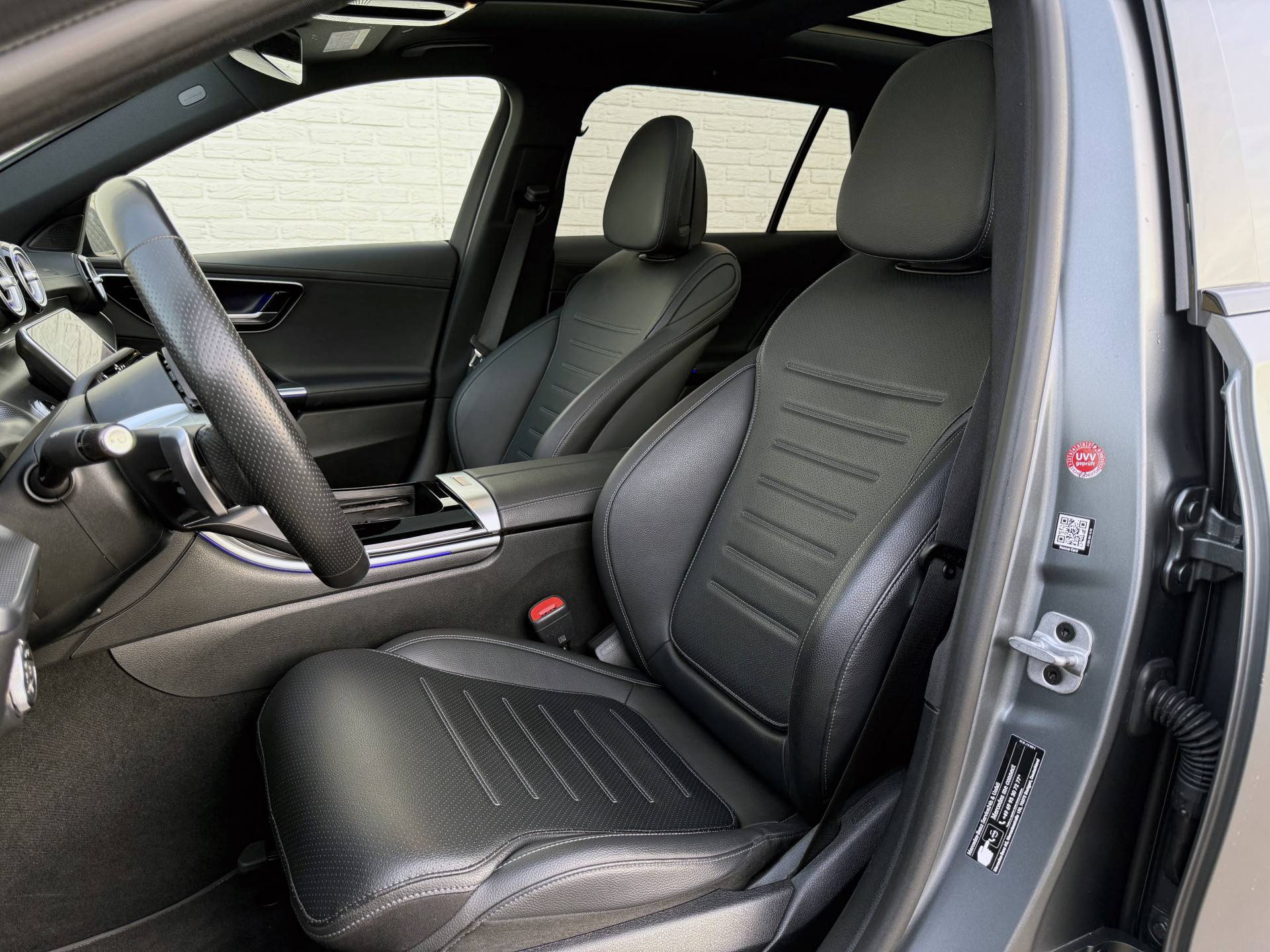 Een occasion om van te dromen. Deze Mercedes-Benz C-klasse Estate brengt behalve een pittige motor en een vriendelijke kilometerstand ook de nodige extra's mee. De AMG-styling geeft dit model een elegante en opvallende uitstraling. Brandstofmotor, elektromotor? Deze hybride Mercedes-Benz C-klasse Estate combineert ze. En dat is te merken bij de pomp, want die ziet u voortaan minder vaak. De luxe van het lederen interieur, gecombineerd met het gemak van het elektrisch bediende glazen panorama dak en de superhandige elektrisch bedienbare achterklep zorgen voor een wel heel complete uitvoering. Regen, wind, hagel, sneeuw? Als het buiten guur is, doet de stoelverwarming z'n weldadige werk! Tot de uitrusting behoren ook 18 inch lichtmetalen velgen, Full LED koplampen, AMG-styling, sportonderstel, trailer assistent en donker getint glas achter.
