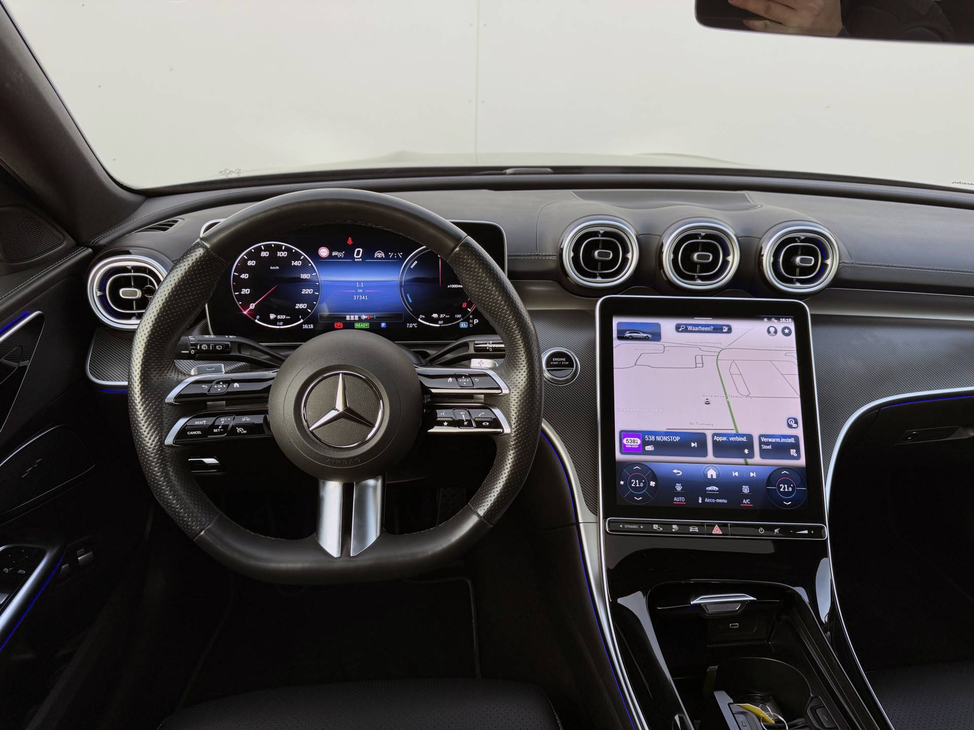 Begeef u op de geweldige rit door de digitale wereld van mobiliteit waar alles wat u wenst voor comfort en veiligheid, wordt geprojecteerd op het digitale dashboard. Een onopvallend paaltje of een overstekend kind achter de auto brengt risico's met zich mee. Gelukkig laat de achteruitrijcamera feilloos zien of alles veilig is. Met adaptive cruise control houdt deze auto automatisch afstand tot uw voorligger. Praat tegen deze auto en de auto doet wat u wilt dankzij de ingebouwde spraakbediening. Bij deze auto is uw smartphone een geavanceerde afstandsbediening. Remote services brengen u overal in contact met uw auto. Deze Mercedes-Benz is voorzien van navigatiesysteem met harde schijf, automatische airconditioning, draadloos opladen, DAB ontvangst, regensensor en sportstuurwiel.
