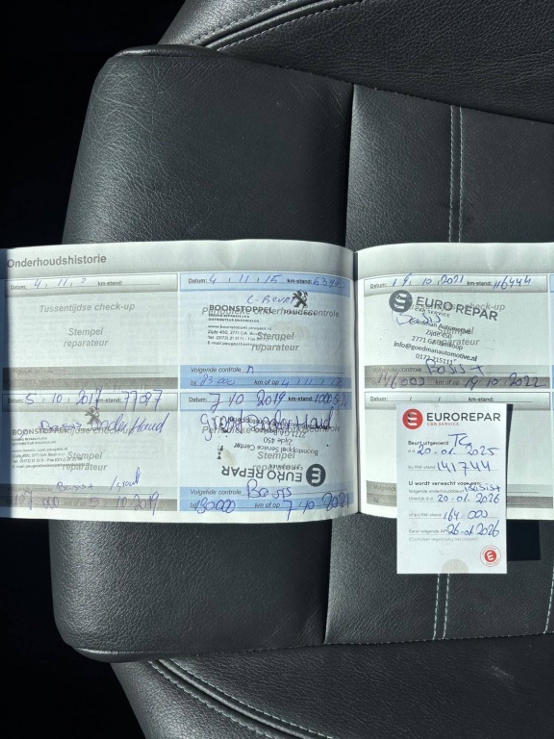 Onderhoudsboekje en Nationale Auto Pas ( = KM Garantie ) ter inzage