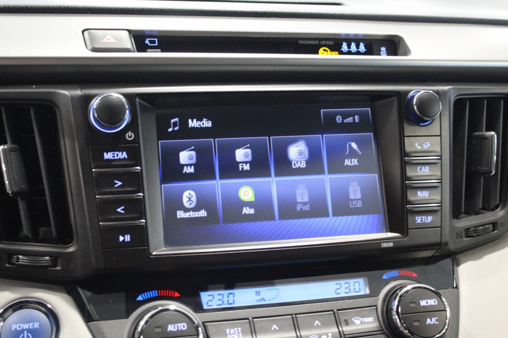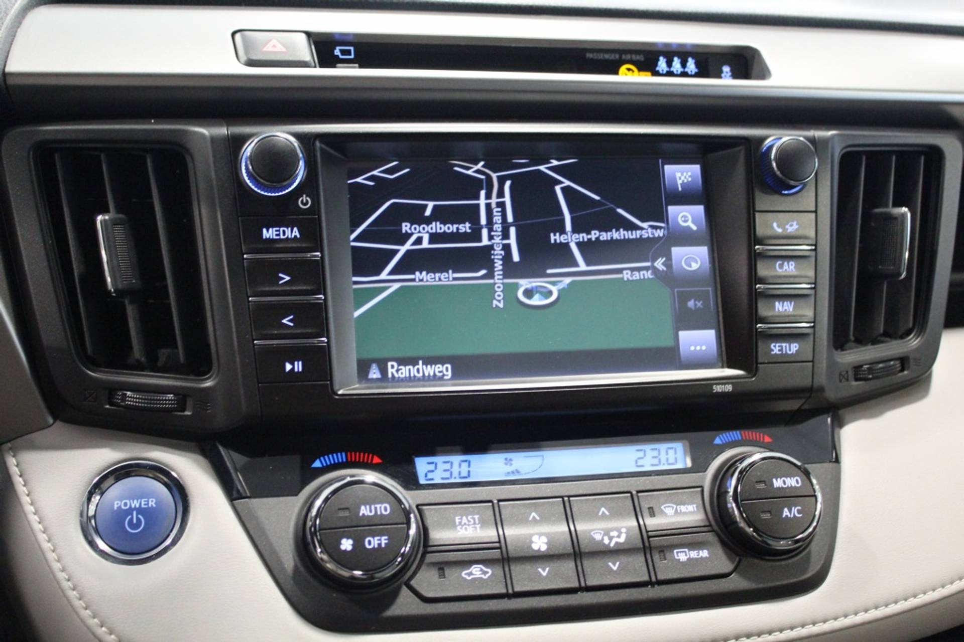 Het interieur van de Toyota RAV4 Hybrid Executive is ontworpen met uw comfort en gemak in gedachten. De stoel voor links is elektrisch verstelbaar in maar liefst 8 verschillende standen, zodat u altijd de perfecte rijpositie kunt vinden. Daarnaast zijn de voorstoelen voorzien van stoelverwarming, waardoor u zelfs tijdens de koudste winterdagen kunt genieten van een warme en ontspannen rit.
