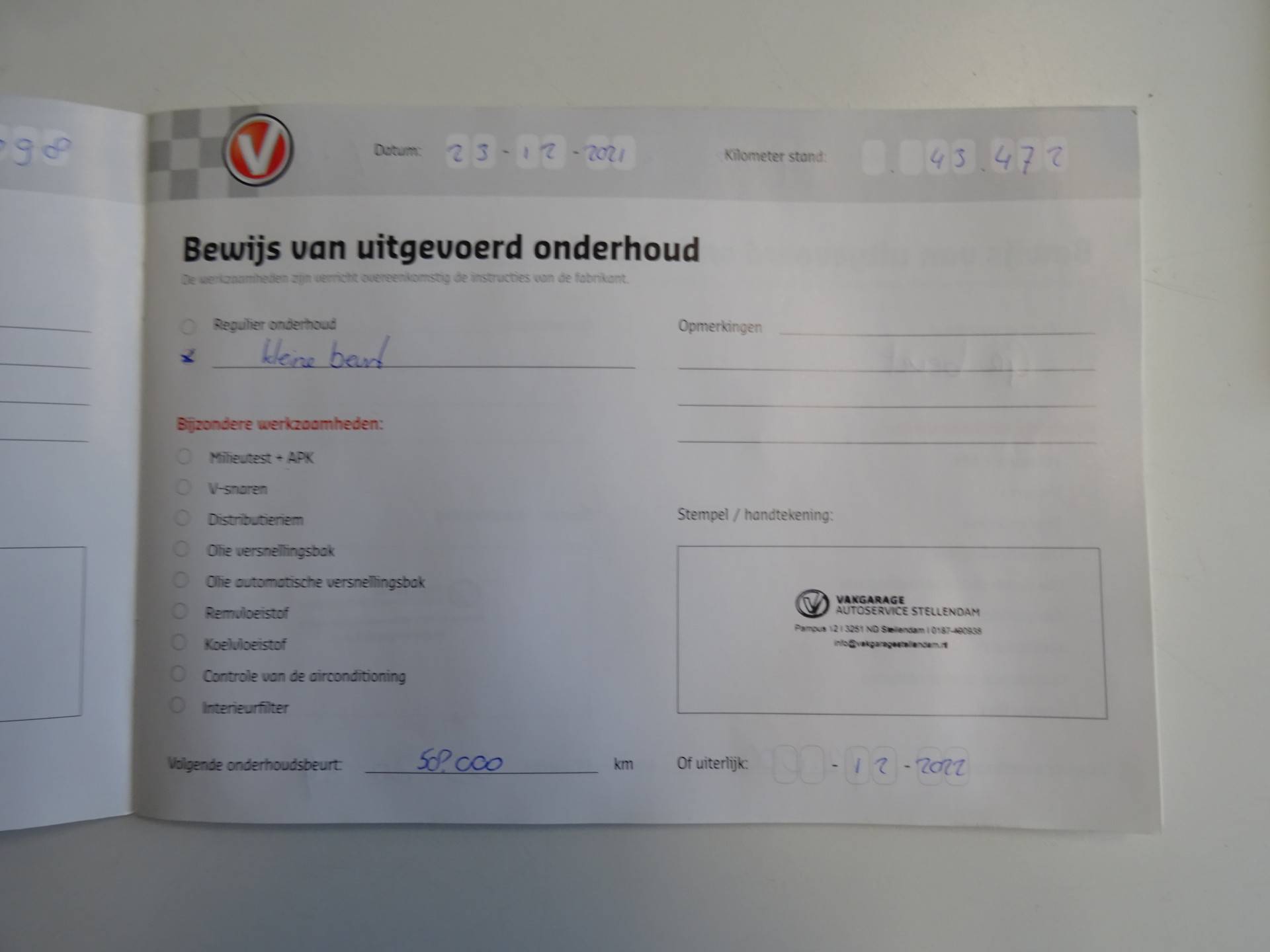 Laatste service is 82Dkm uitgevoerd