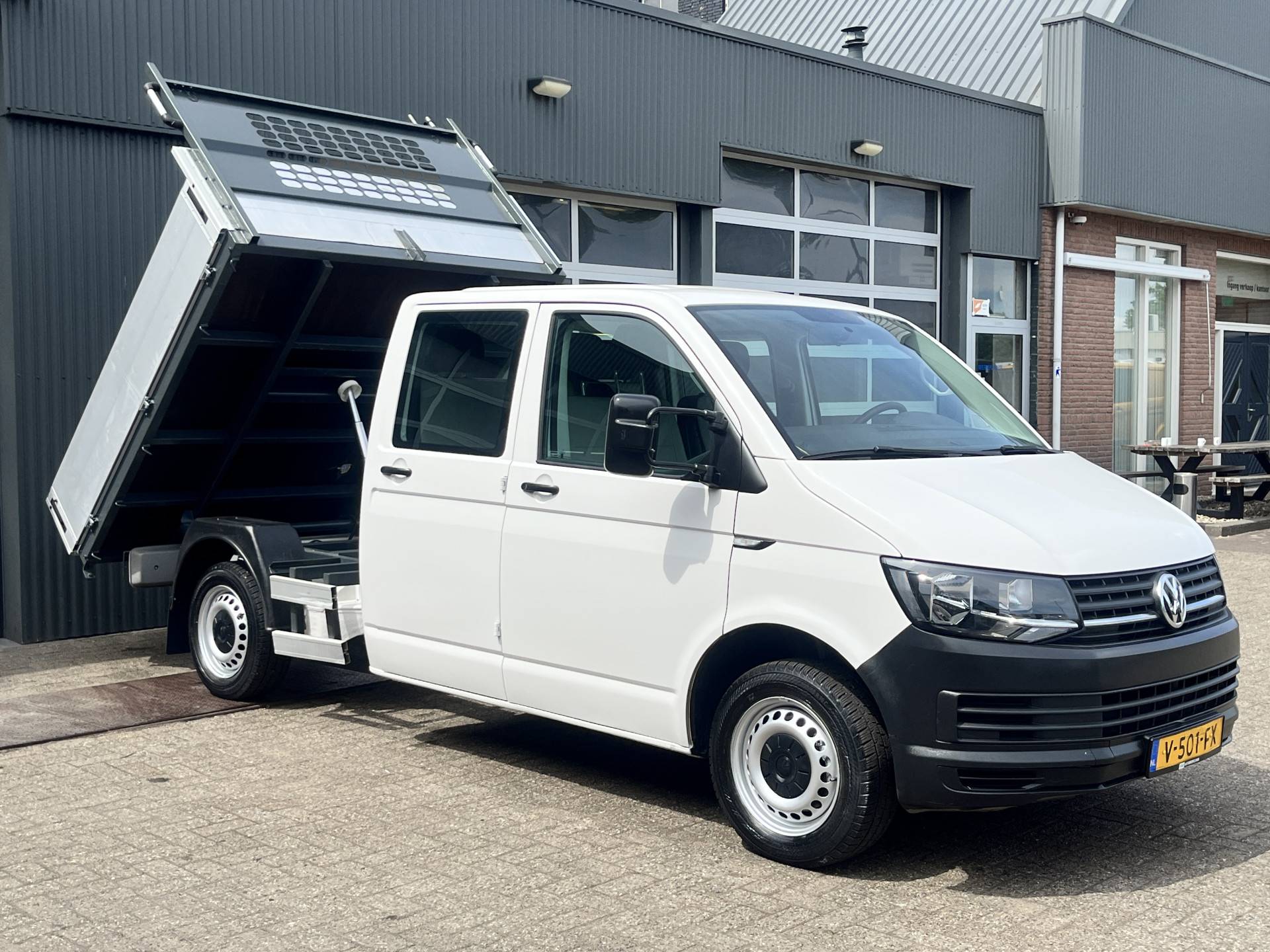 Een zeer nette Volkswagen Transporter 2.0 TDI 102pk Euro 6 Pick up Kipper Dubbele cabine open laadbak met Airco Trekhaak 2200kg trekgewicht 1e eigenaar Dealer onderhouden Telefoonverbinding Kieper P-up Doka Pritsche Ahk 2200kg