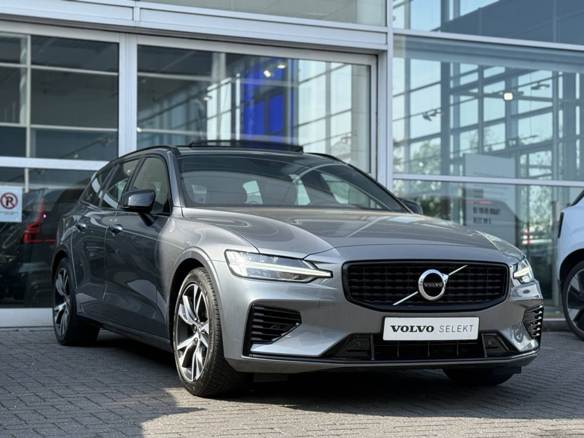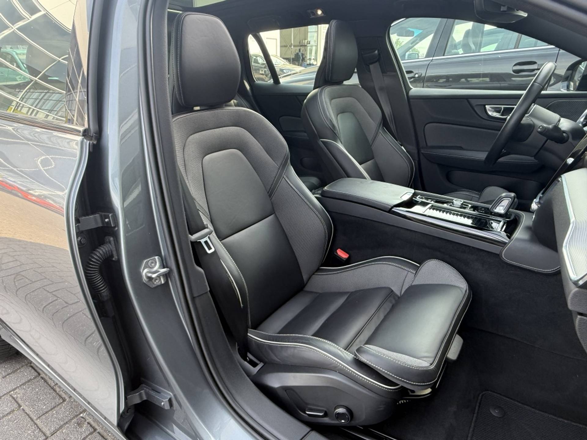 Het panoramadak van deze Volvo V60 T6 zorgt voor een lichte en ruime ervaring in het interieur. Geniet van een prachtig uitzicht op de lucht en laat meer natuurlijk licht binnenstromen voor een aangename rijervaring.