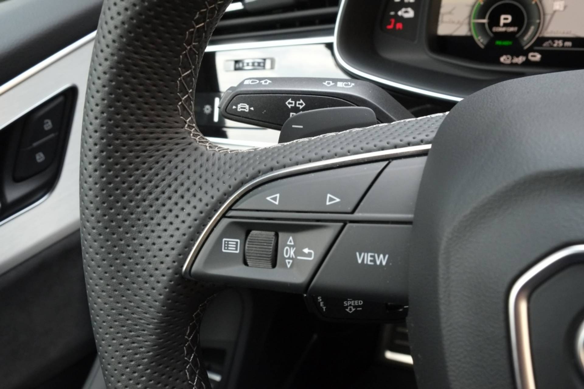 De Audi Q8 60 TFSI e quattro Competition is uitgerust met luxe opties die het rijden nog aangenamer maken. Zo beschikt de auto over elektrisch verstelbare stoelen met geheugenfunctie, waardoor elke bestuurder zijn ideale zitpositie kan instellen voor optimale comfort. Het elektrisch glazen panorama-dak zorgt voor een open en licht interieur, waardoor u tijdens elke rit kunt genieten van een adembenemend uitzicht.