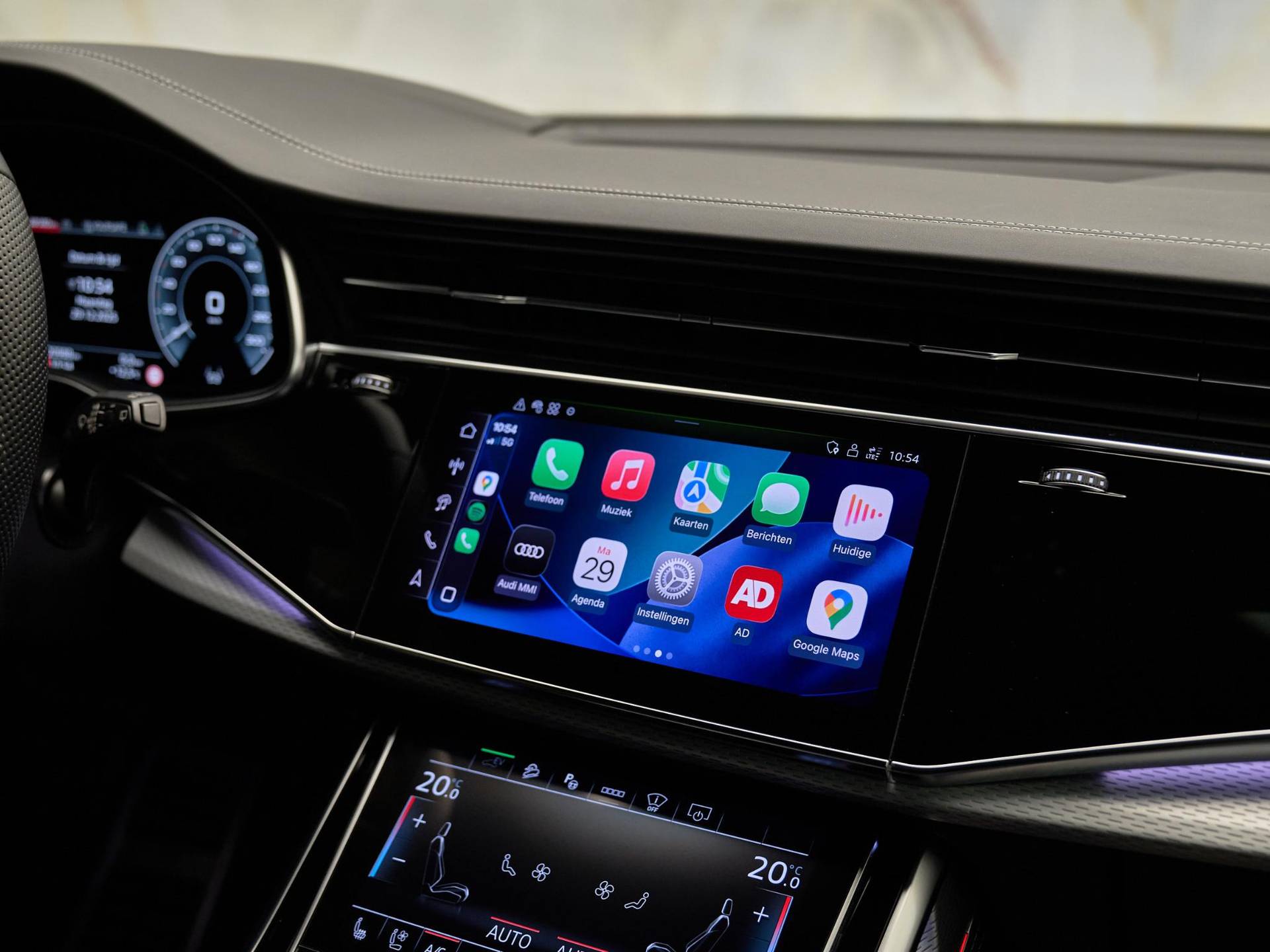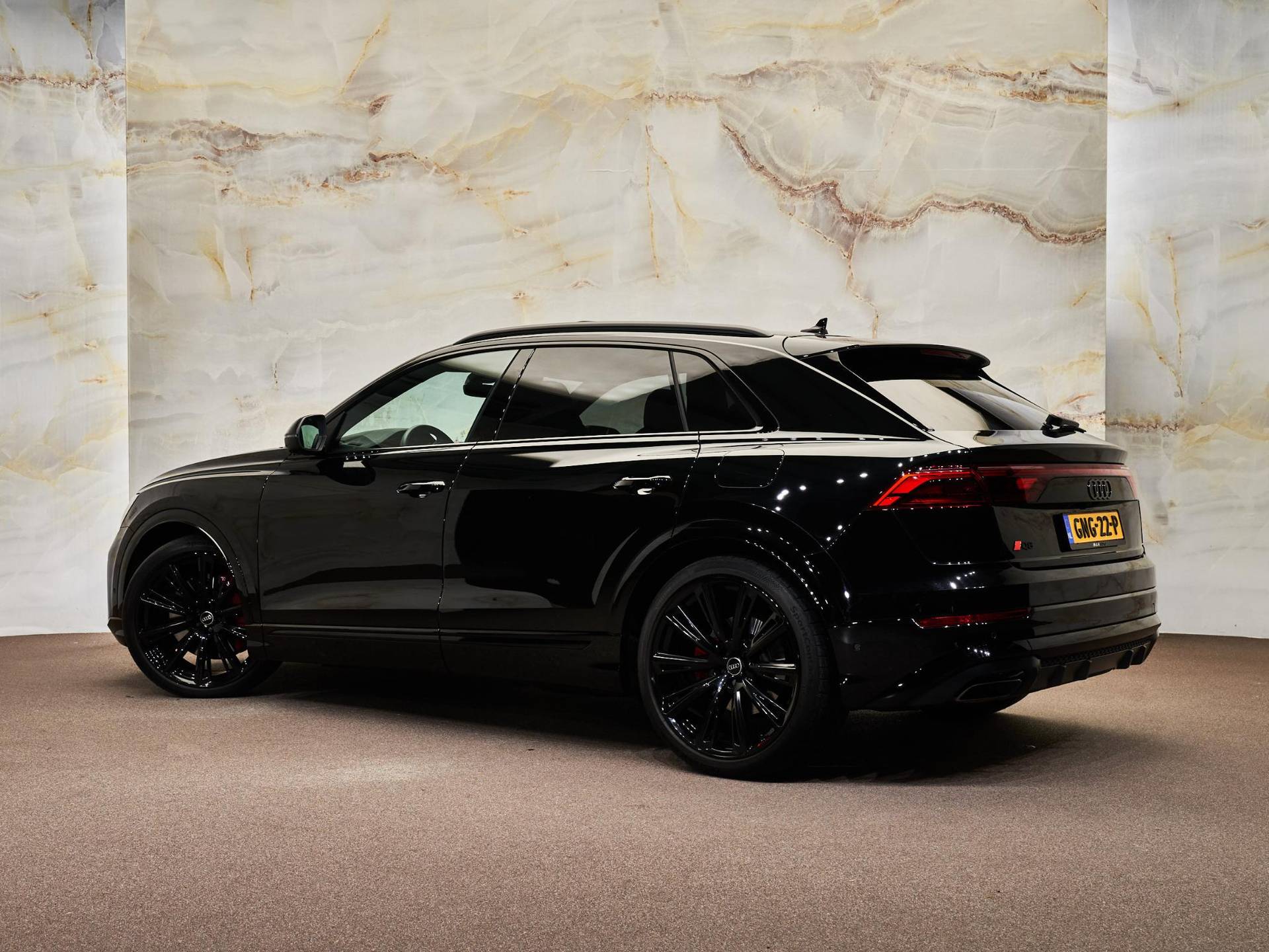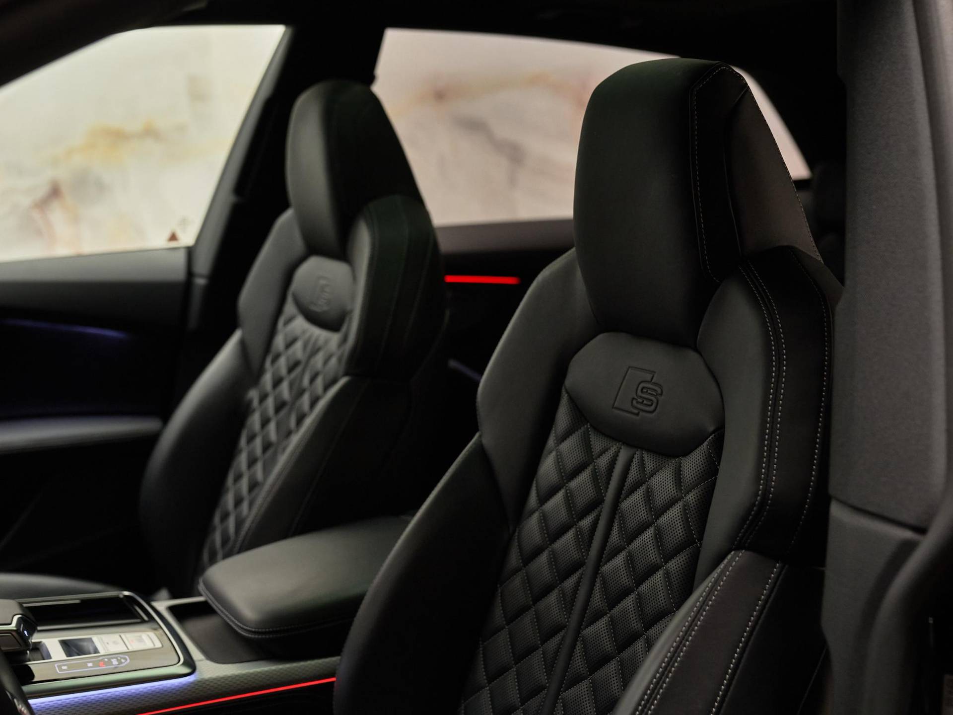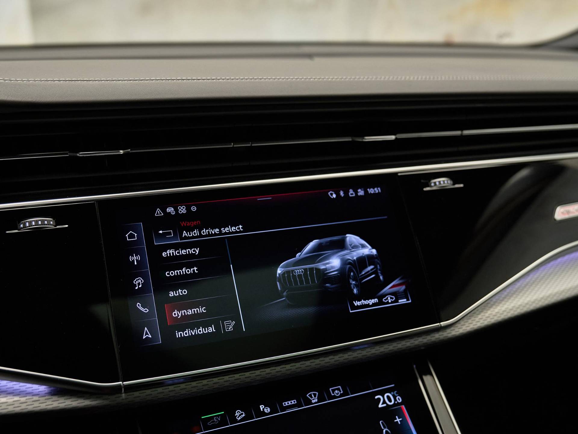 Het exterieur straalt kracht en verfijning uit met de Mythoszwart metallic lak (0E / Y9T), zwarte buitenspiegelhuizen (6FJ) en 23 inch Audi Sport lichtmetalen velgen (58U / FQ1). Binnenin vindt u een harmonie van design en kwaliteit, dankzij de leder Valcona bekleding met S-logo’s (N0Q), sfeervolle interieurverlichting plus (QQ2) en hoogwaardige decoratieve afwerkingen. De Q8 ademt pure premium klasse, tot in het kleinste detail.