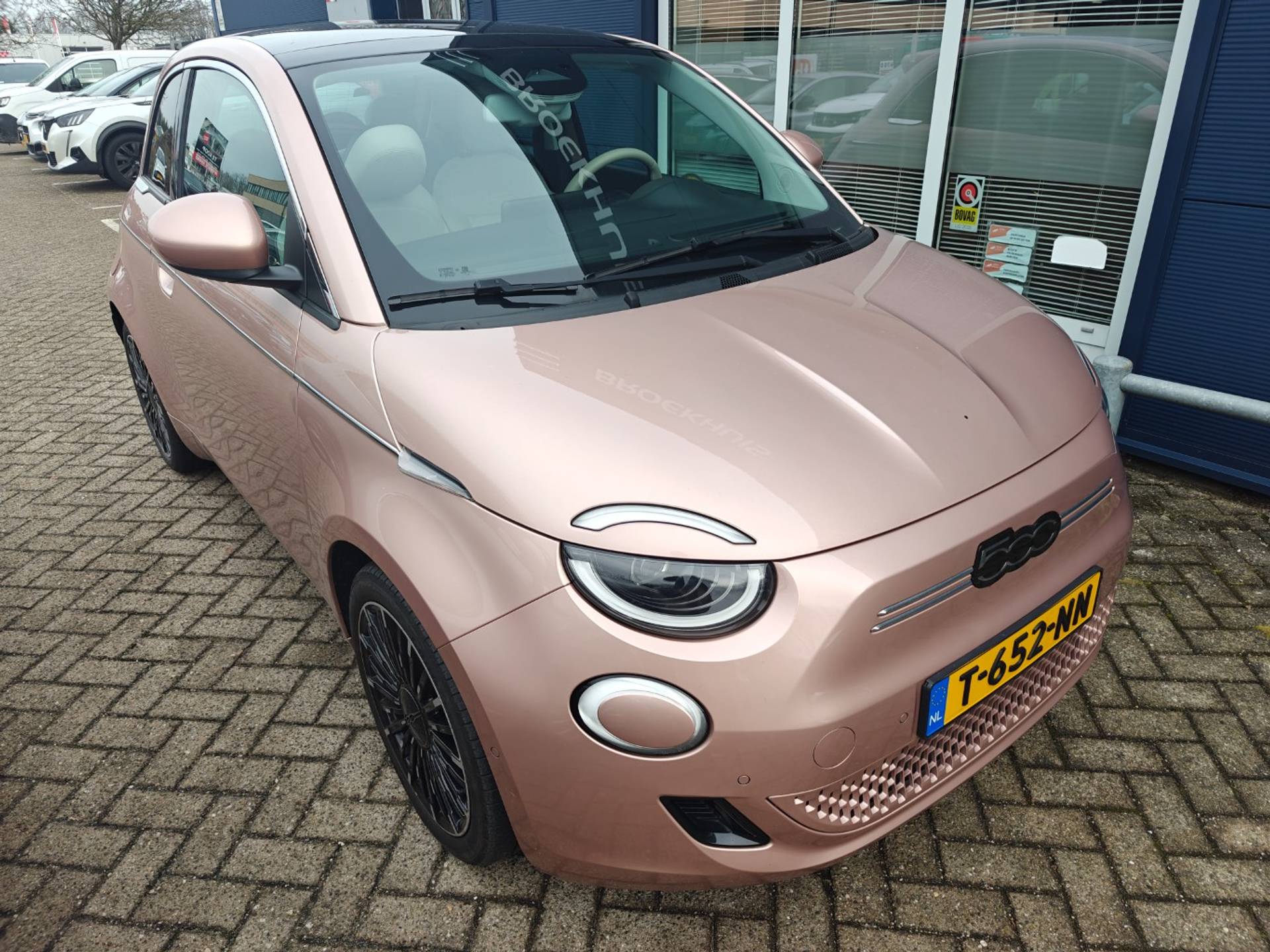 Met de Fiat 500 kiest u voor het rijplezier van de toekomst. De volledig elektrische aandrijflijn zorgt voor krachtige prestaties en een sensationeel acceleratievermogen. Met de elektromotor zoeft u fluisterzacht over de weg. Deze auto is bijna nieuw, ondanks dat hij uit 2023 komt; hij heeft slechts 12556 kilometer afgelegd. Het glazen panoramadak geeft u een ongekende rijsensatie: wat een licht en zicht! Tot de uitrusting van deze Fiat behoren ook 17 inch lichtmetalen velgen, Full LED koplampen, extra getint glas, in delen neerklapbare achterbank, LED-achterlichten en snelheidsafhankelijke stuurbekrachtiging. Voor het overzicht tijdens iedere rit is deze Fiat 500 voorzien van een gemakkelijk afleesbaar digitaal dashboard. Met behulp van de achteruitrijcamera kunt u zo strak inparkeren als u maar wilt! Adaptive cruise control is een comfortabele en veilige optie. Het systeem reguleert de snelheid en houdt automatisch afstand tot uw voorligger. Na een lange werkdag in de file: daar zit niemand op te wachten. Gelukkig helpt de file assistent een handje. Het radarsysteem meet de ruimte tot de voorligger en bewaakt de juiste afstand. Stilstaan? Dan remt en stopt de auto vanzelf. U weet altijd hoe de auto eraan toe is dankzij Connected Services. Ook handig voor de garage en de wegenwacht. Even de app uitlezen en klaar! Ook is de Fiat uitgerust met: premium audiosysteem, full map navigatiesysteem, automatische airconditioning, draadloos opladen, DAB ontvangst en regensensor. Het zal u verbazen hoe deze auto in staat is om voor u de omgeving en het verkeer om u heen in de gaten te houden. De camera van de verkeersborddetectie herkent verschillende soorten verkeersborden en toont deze op het dashboard. Met het Lane-keeping systeem gaat u nooit onbedoeld over de streep. Met de vermoeidheidsassistent bent u ook op lange ritten veilig op pad. Het systeem geeft een waarschuwing zodra het tijd is voor een pauze. Ook helpen het dodehoekdetectie, brake assist en bandenspanningcontrolesysteem, uw rit tot een veilige rit te maken. Deze elektrische auto staat klaar met een volle accu. Een proefrit maken is zo geregeld. Neem even contact op en we maken een afspraak!